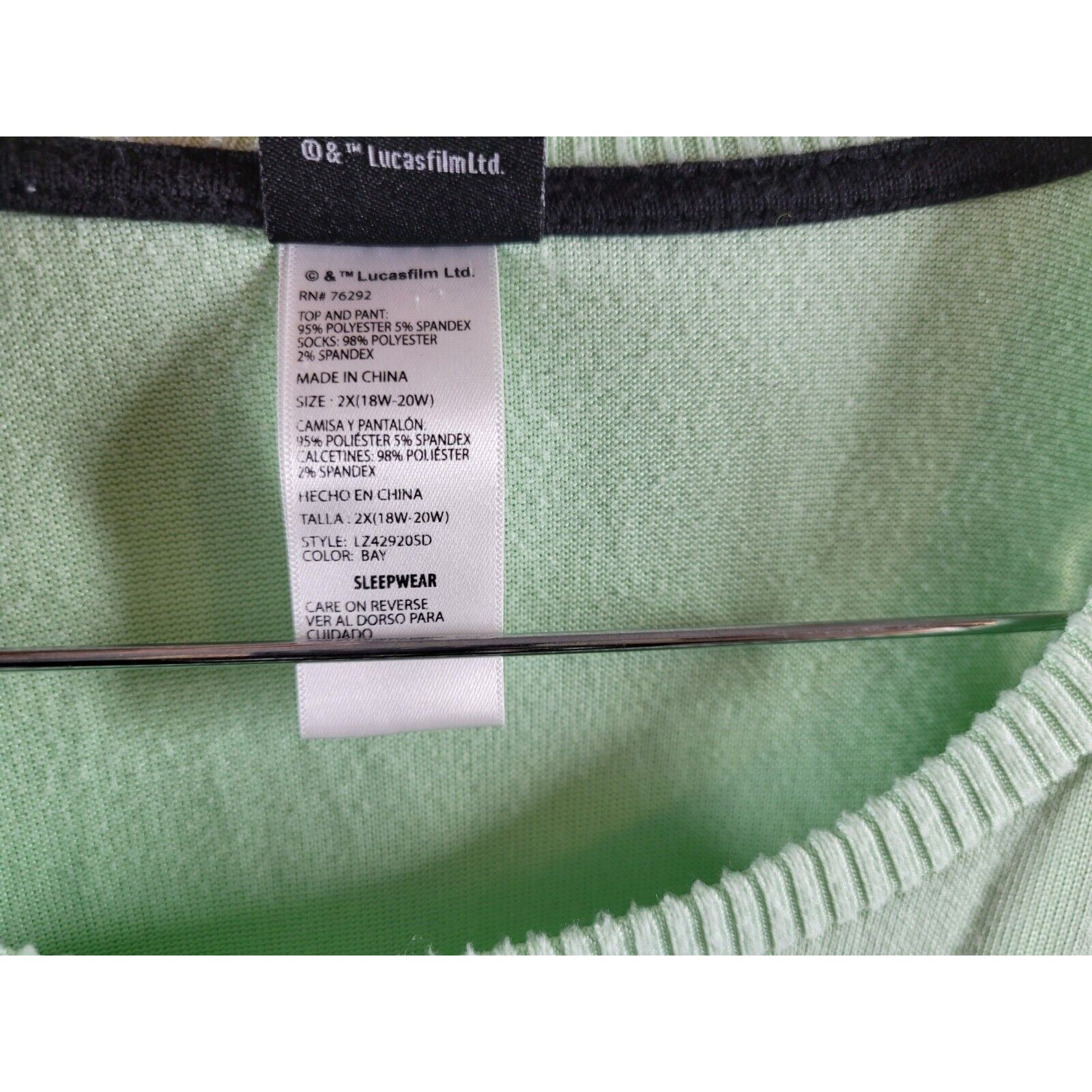 Star Wars Women Pajamas 2X Top Grogu Mandalorian Soft Green This is My Good Side