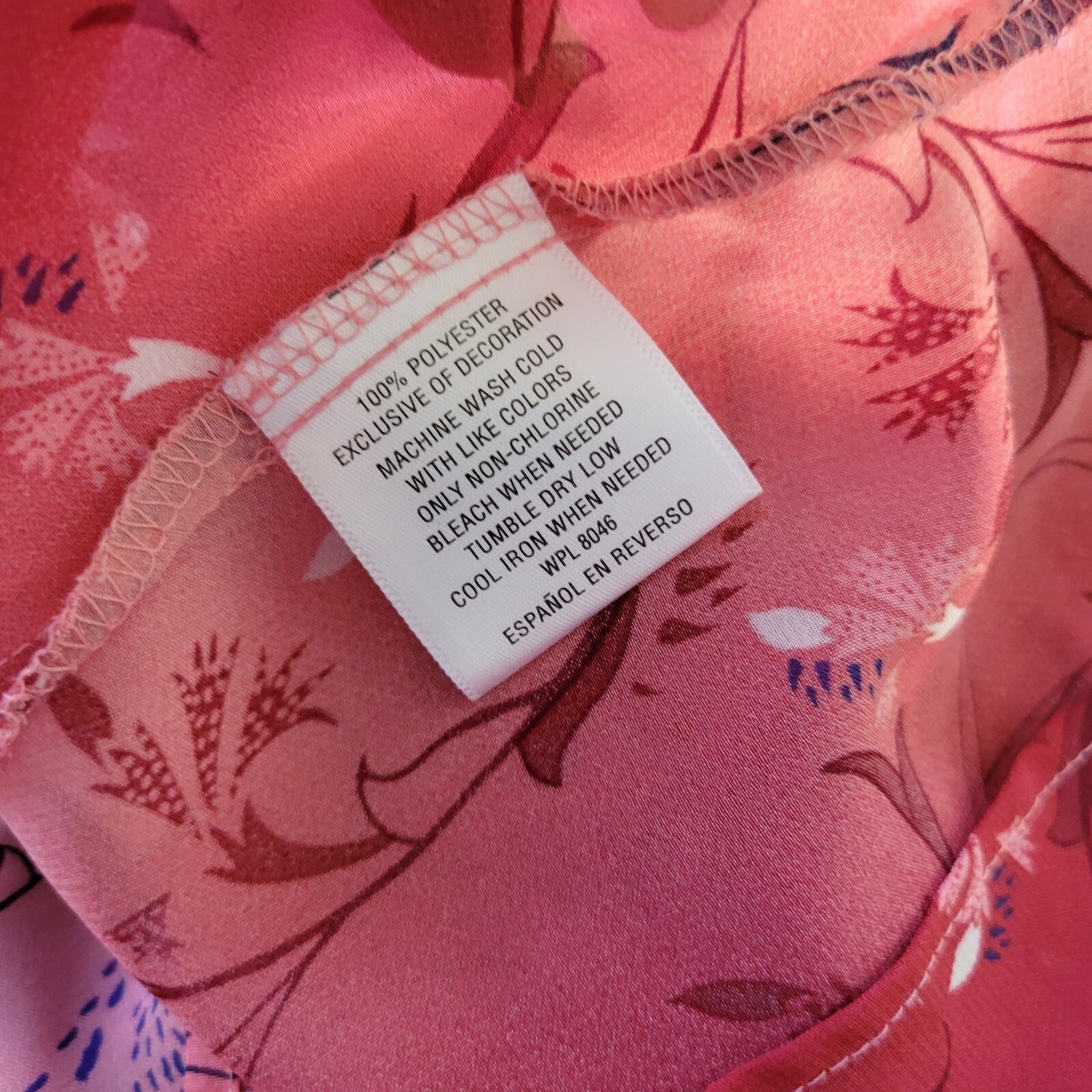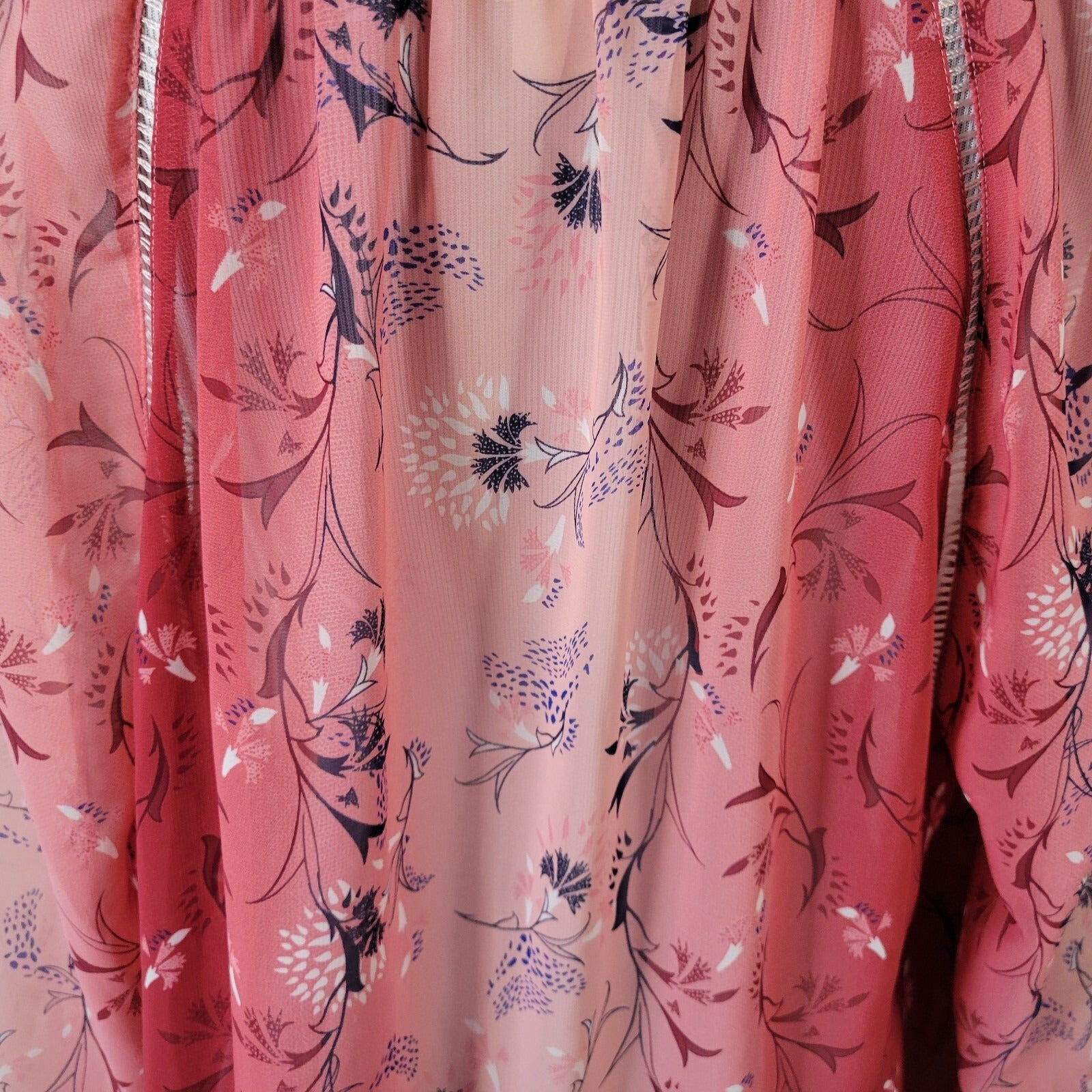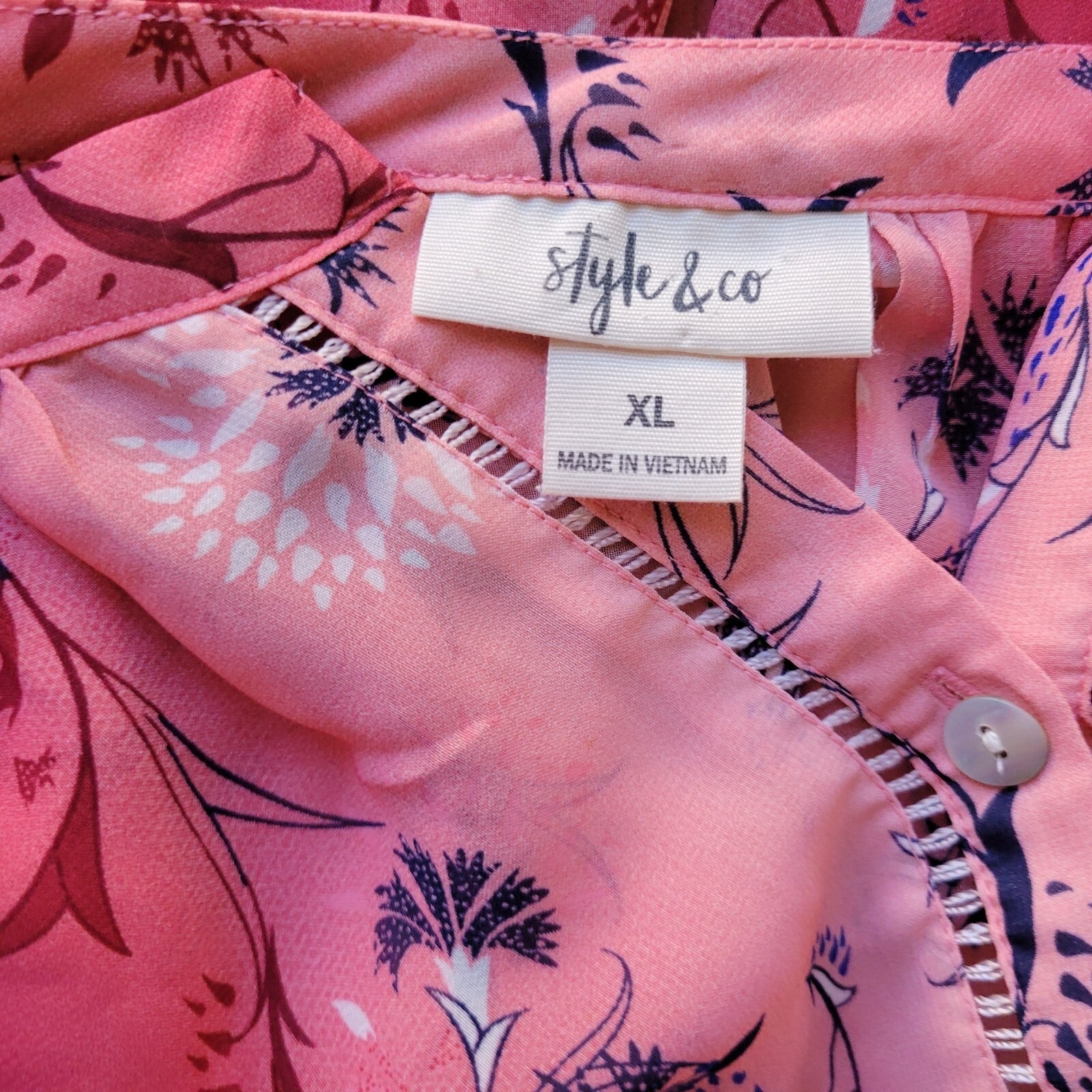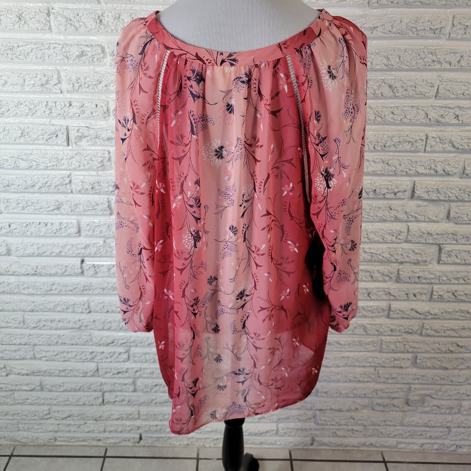 Style Co Women Top Extra Large XL Long Sleeve Red Pink Floral Crochet Trim Sheer