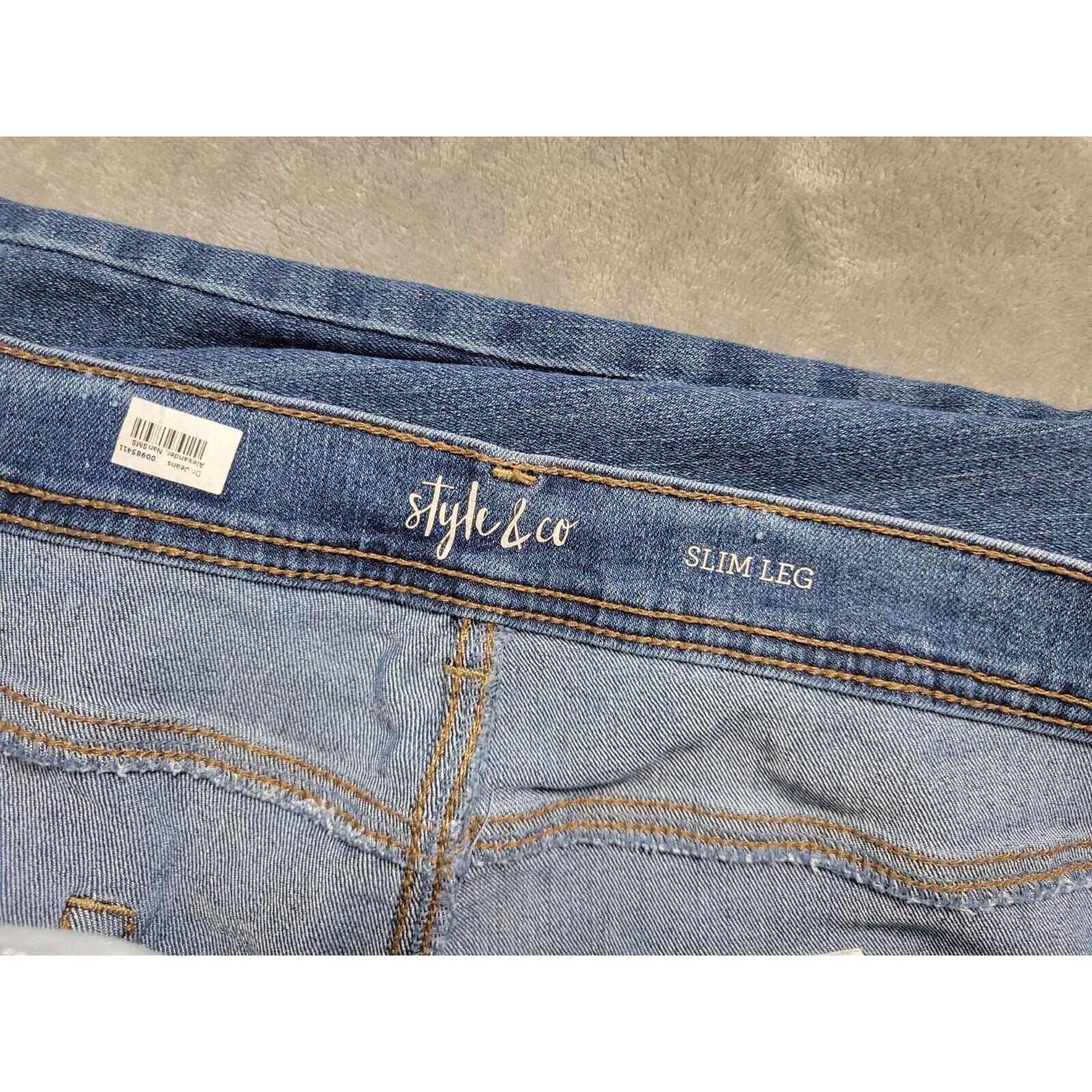 Style & Co Womens Jeans 18 Plus Long Slim Leg Tapered Zip Fly Medium Blue Denim