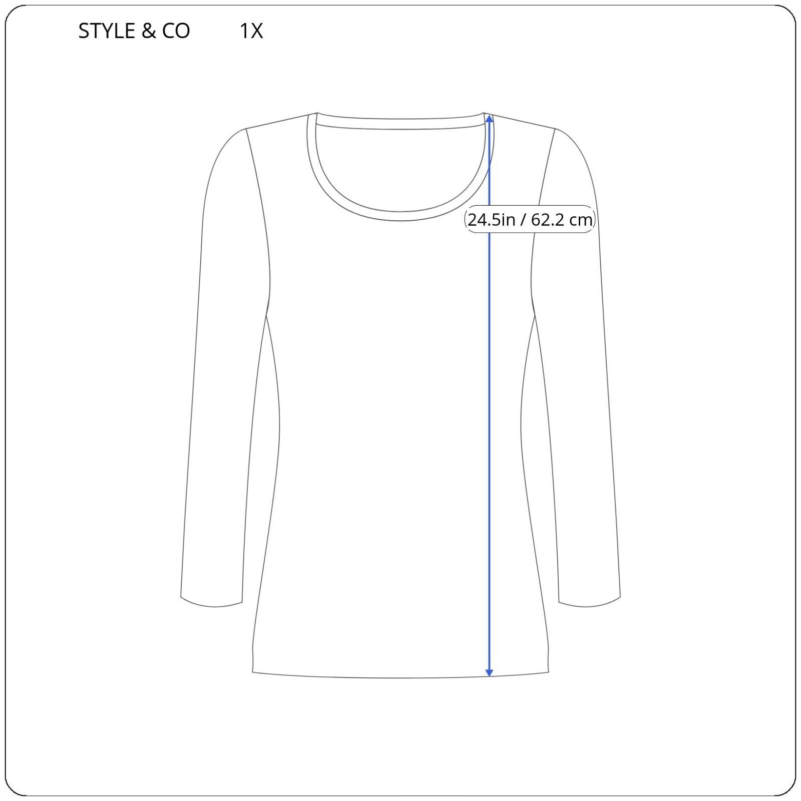 Add a touch of elegance to your casual wardrobe with this beautiful blue floral top from STYLE & CO. Featuring a round neckline and 3/4 sleeves, this blouse is perfect for any occasion whether it's a casual day out or a dinner date. The pullover closure and lightweight polyester blend material make this top easy to wear and comfortable all year round. This top is machine washable and has casual sleeves, making it the perfect addition to your wardrobe for any season. It comes in a plus size 1X, fitting regular and making you feel confident and stylish wherever you go. Don't miss out on this gorgeous blouse that will complement any outfit.