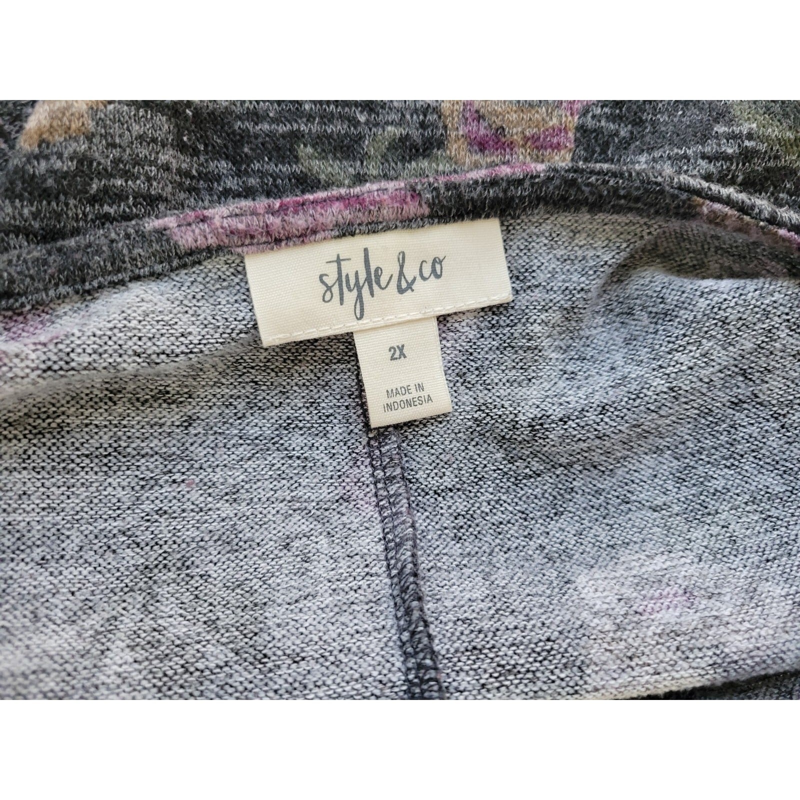Style & Co Womens Top 2X Plus Knit Bell Tied Sleeves Poly Blend Purple Floral