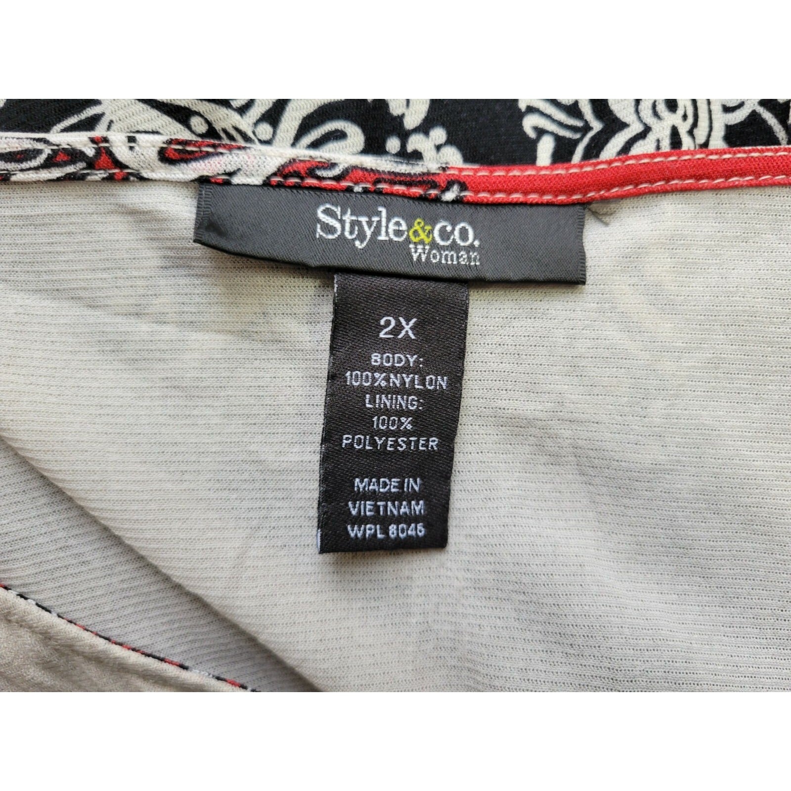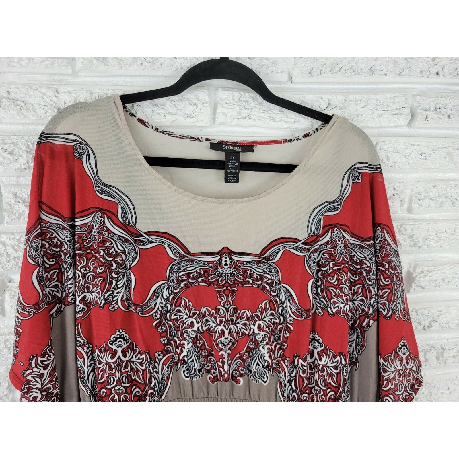 Style & Co Womens Top 2X Plus Tunic Angel Sleeves Red Floral Nylon Casual