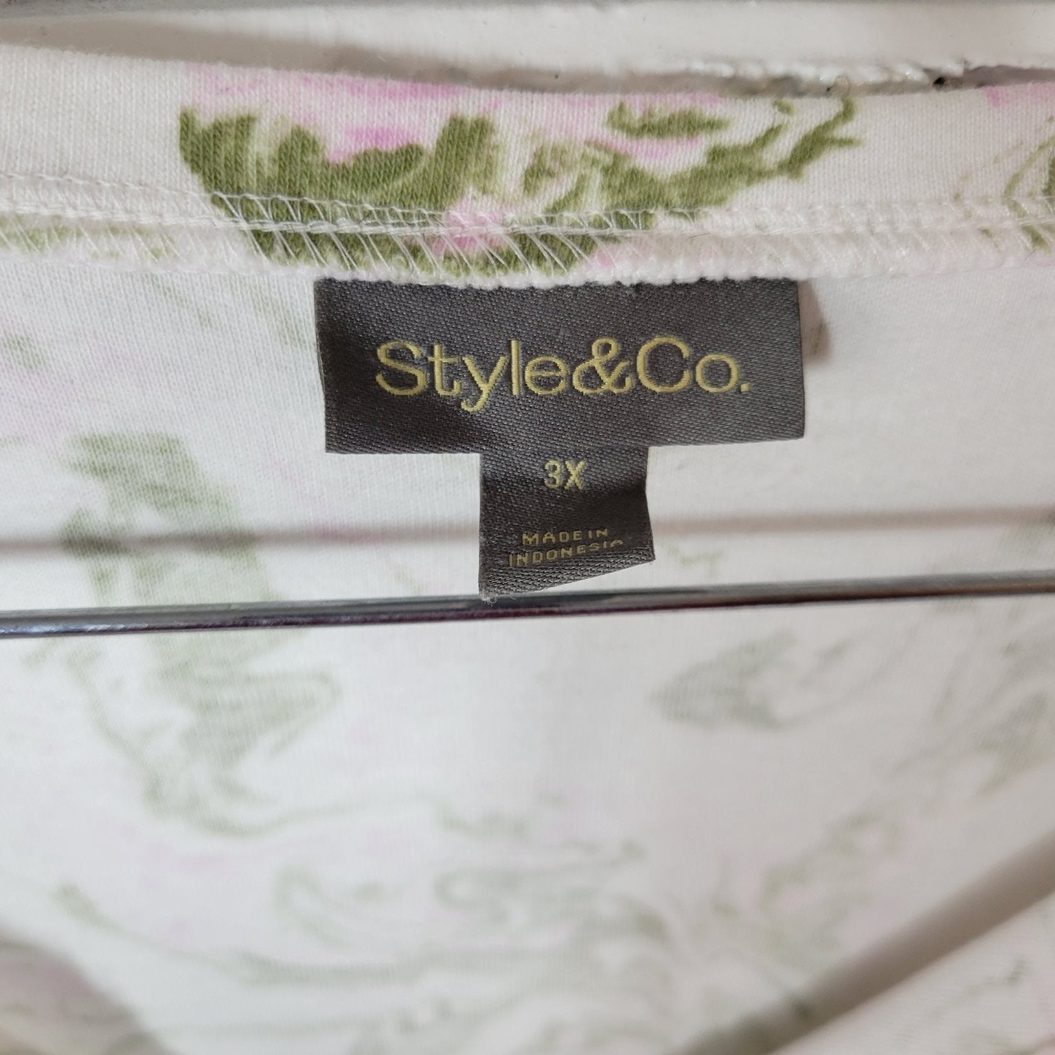 Elevate your casual wardrobe with this stylish Style&Co. women's top, designed in a flattering 3X size. Featuring a soft white base adorned with an artistic marbled pattern in pink and olive green, this top instantly adds a touch of modern flair to any outfit. The fabric blend of 60% cotton and 40% polyester ensures a comfortable fit that breathes well and maintains its shape throughout the day.
