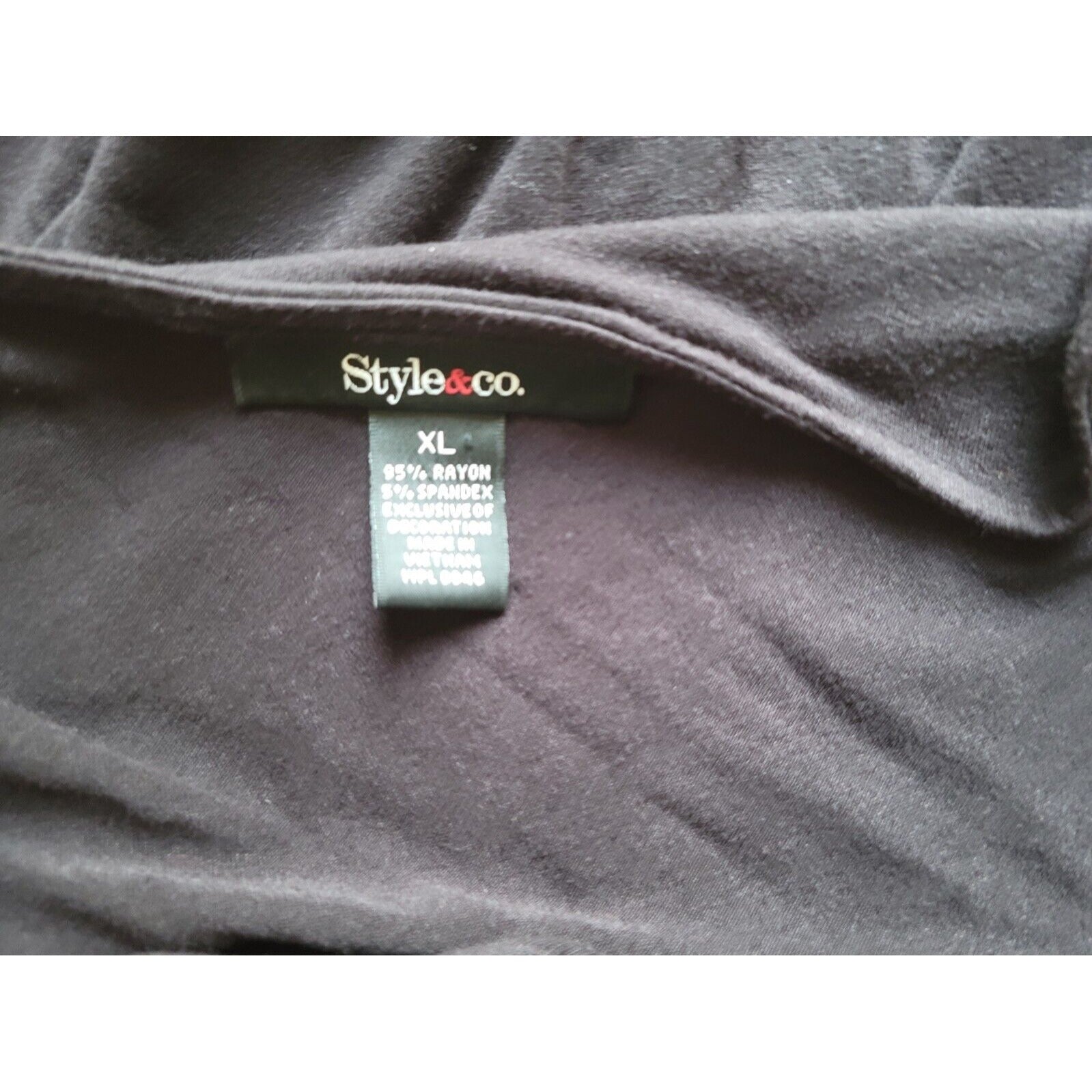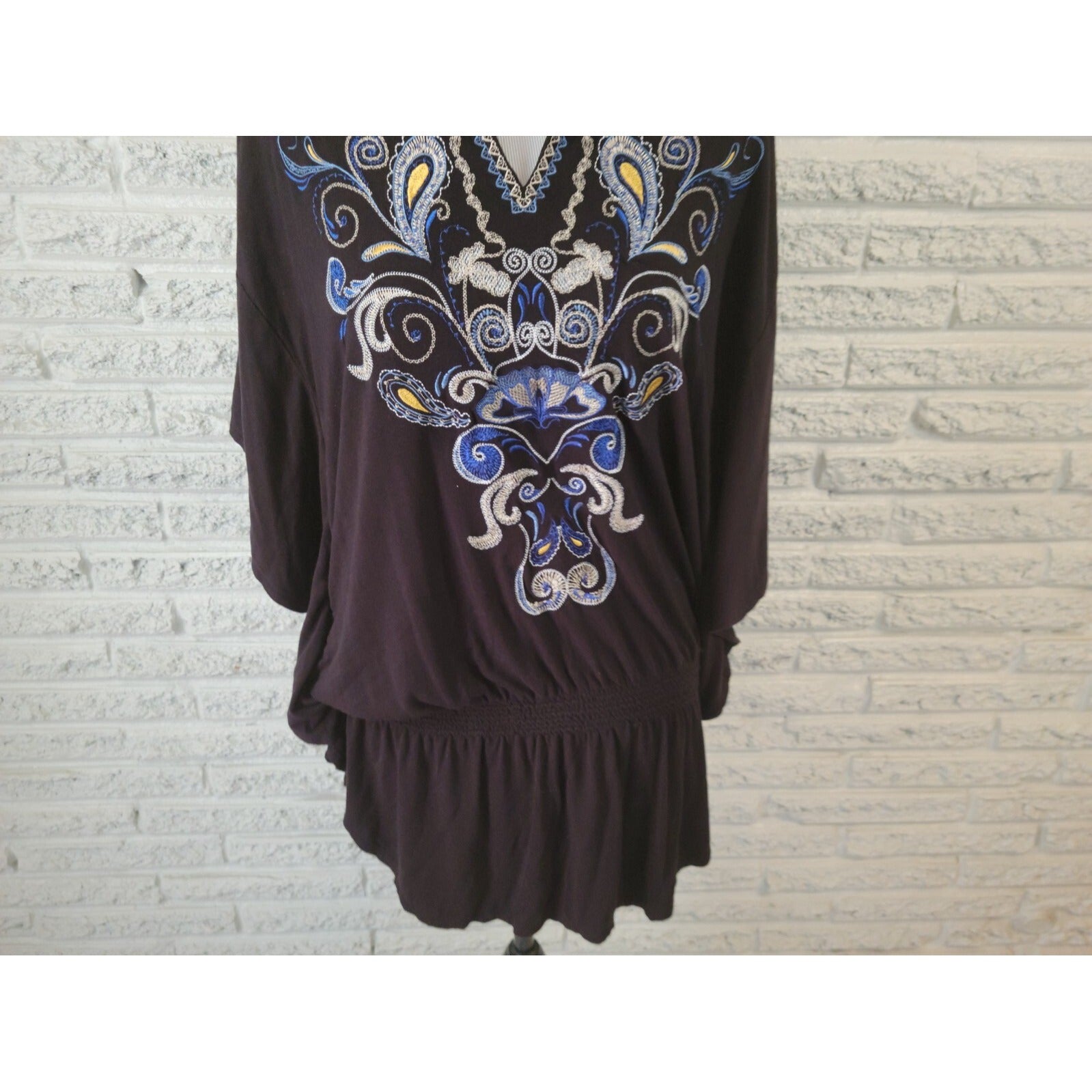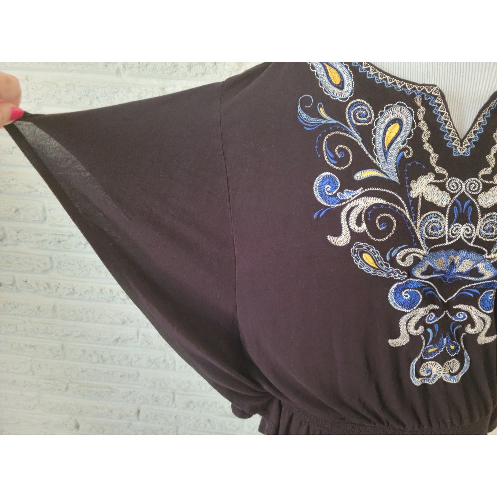 Style & Co Womens Top Extra Large Batwing Sleeve Black Paisley Embroider Casual