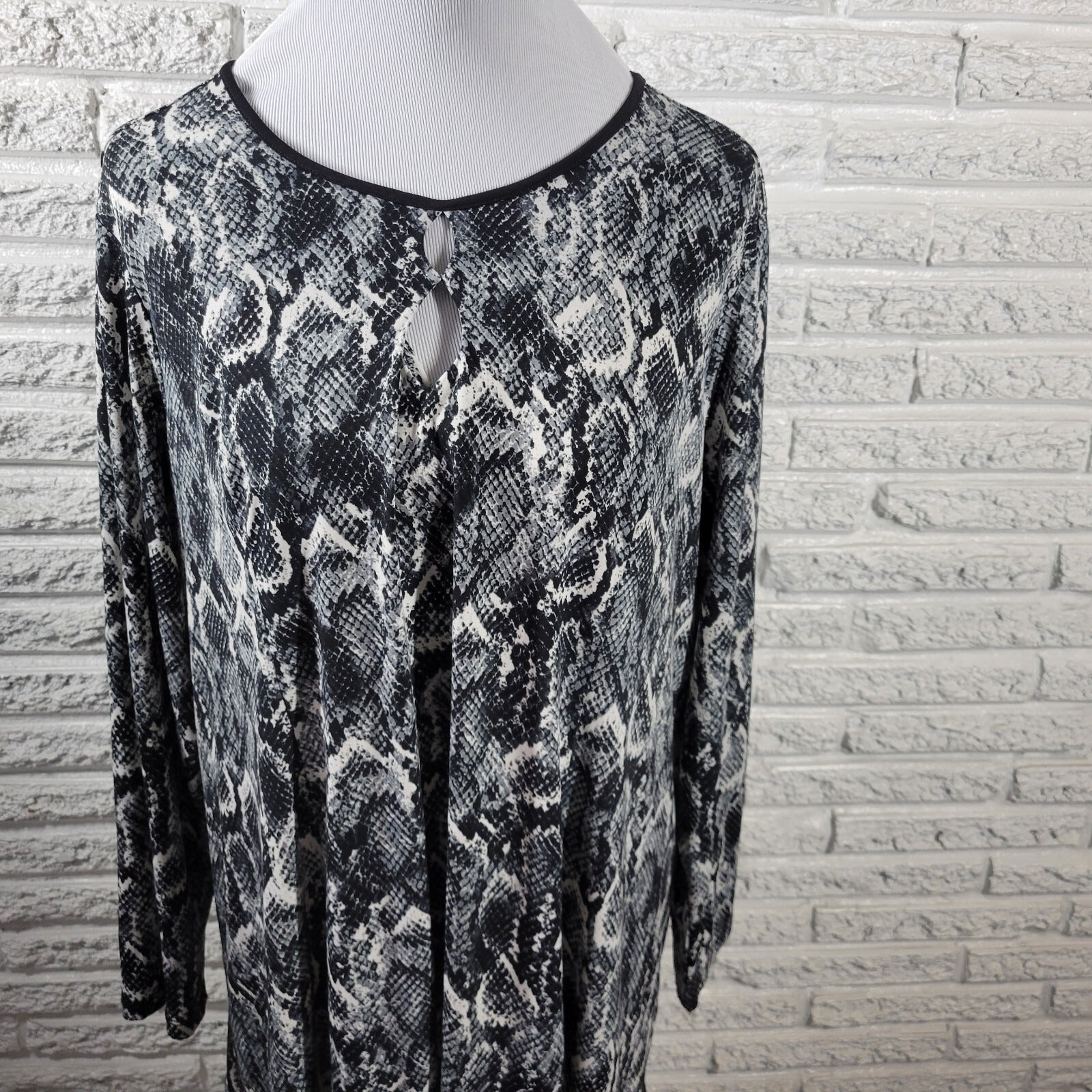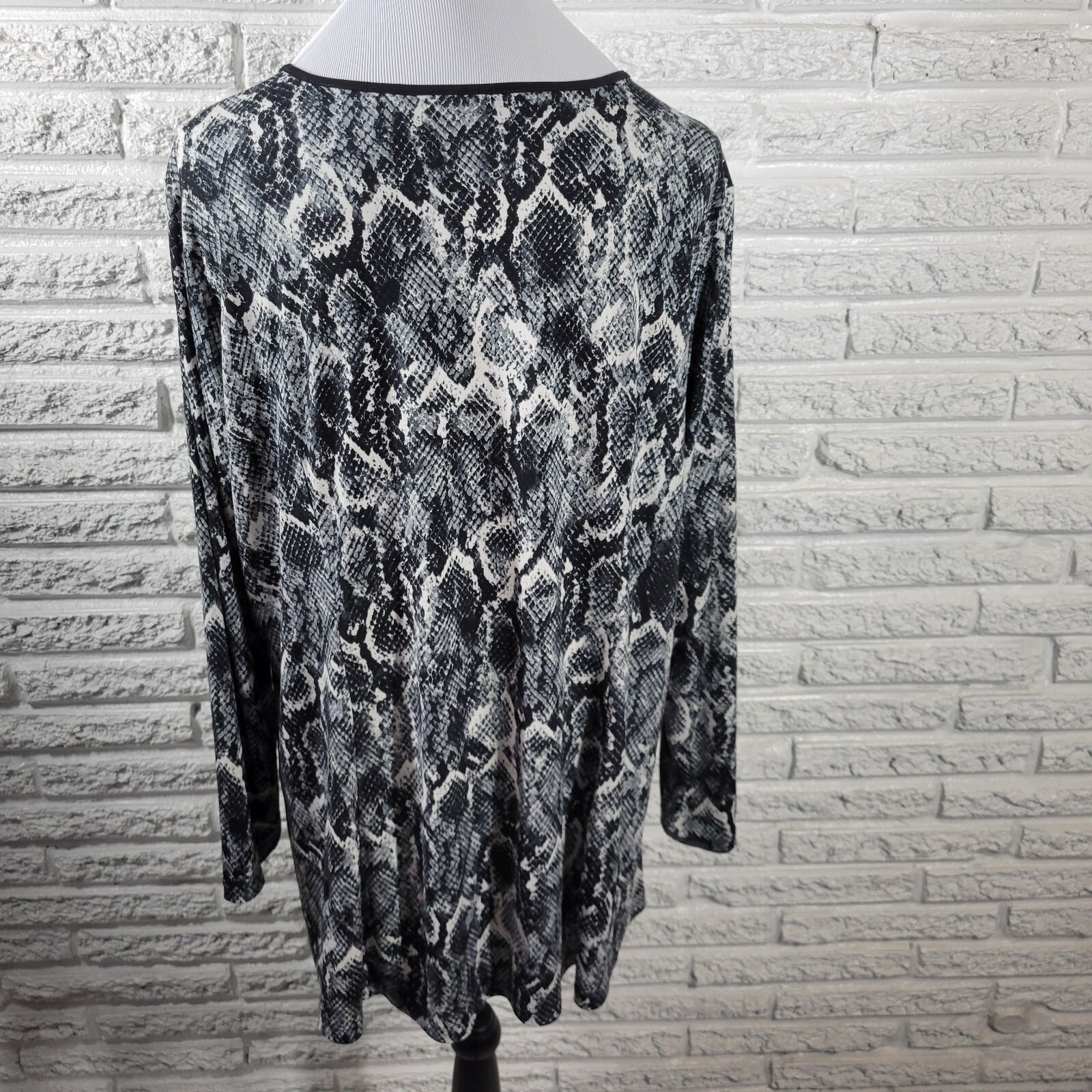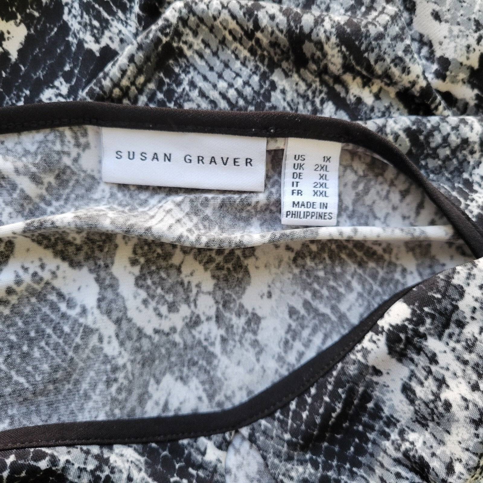 Susan Graver QVC Womens Top 1X Plus Tunic Keyhole Neck Black Animal Print Career