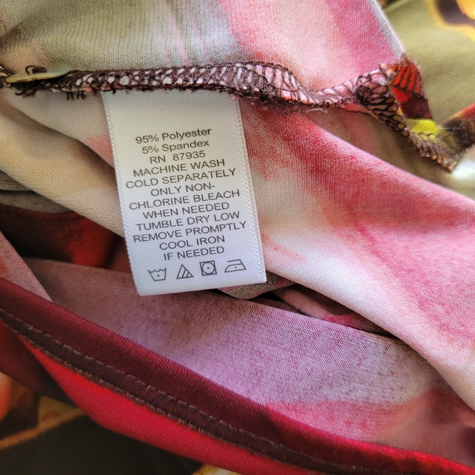 Susan Graver QVC Womens Top 2X Plus Ruched Sleeve Red Watercolor Poly Blend