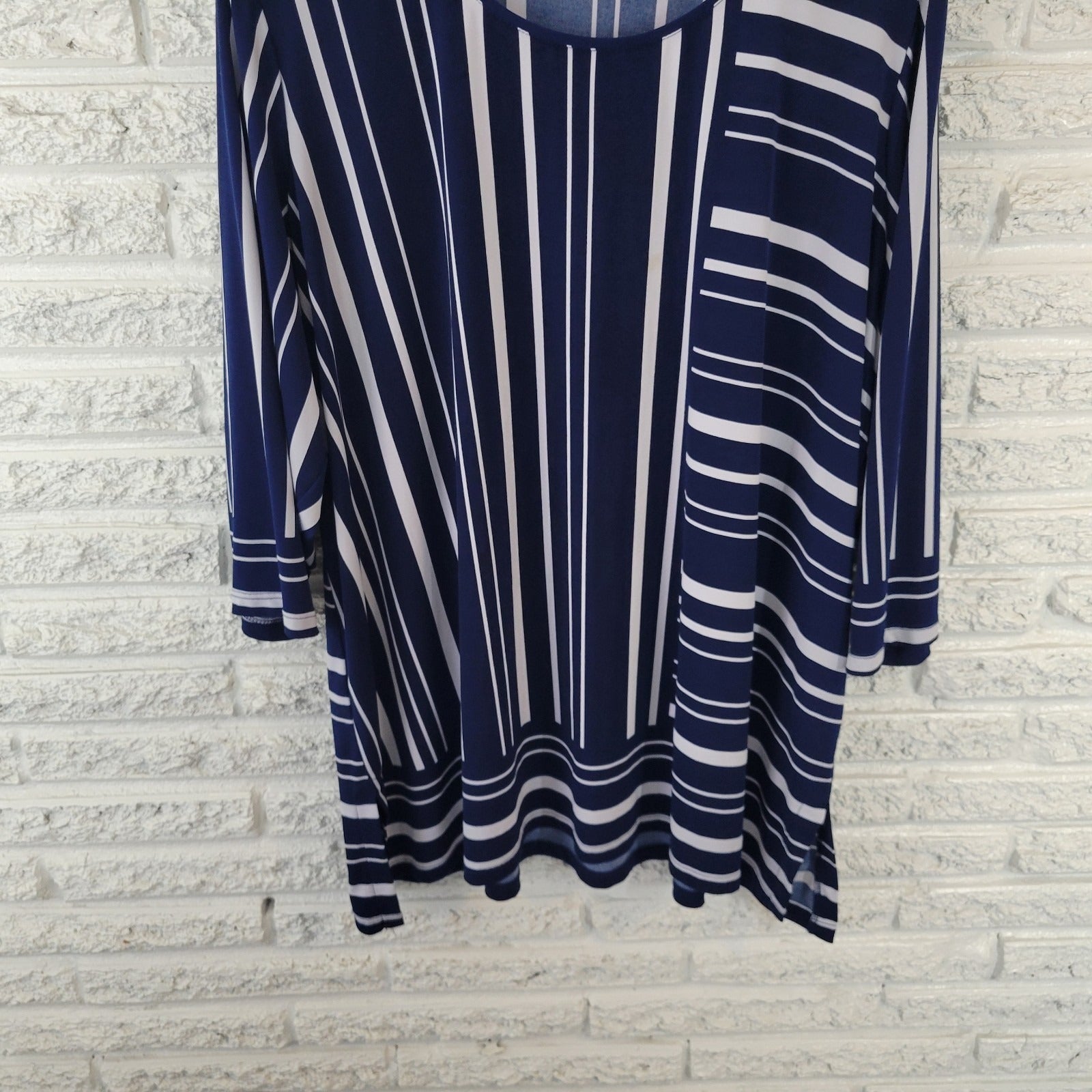 Susan Graver QVC Womens Top 3X Plus Tunic 3/4 Sleeve Poly Blend Blue Stripe