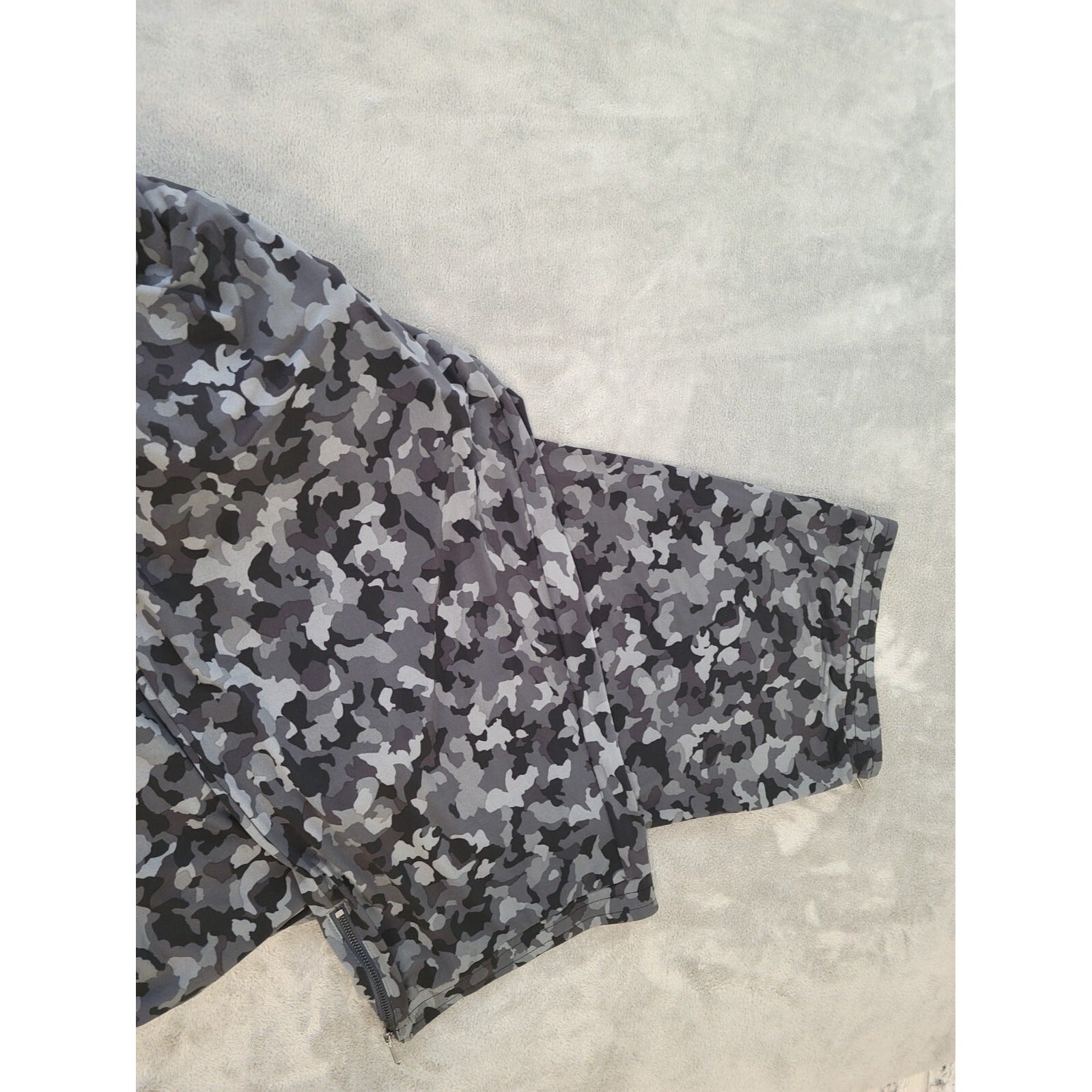 Elevate your casual style with these black camouflage patterned pants from Susan Graver. These pants feature a zip closure and elastic waist for maximum comfort. The polyester blend material is machine washable and has pockets for added convenience. The ankle zip and stretchy knit fabric make these pants perfect for any season. Ideal for plus-sized women, these jogger style pants have a high rise waist and a 27.5 inch inseam.