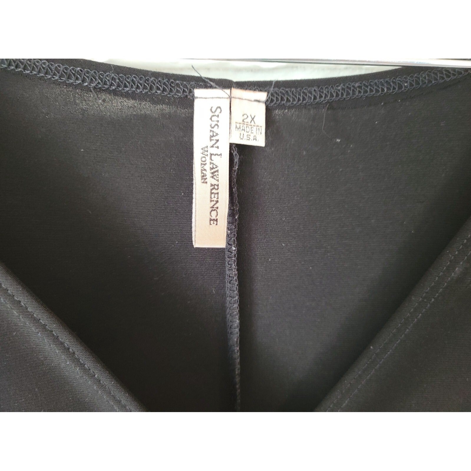 Susan Lawrence Womens Dress 2X Plus Shift Short Sleeve Black Asymmetric Casual