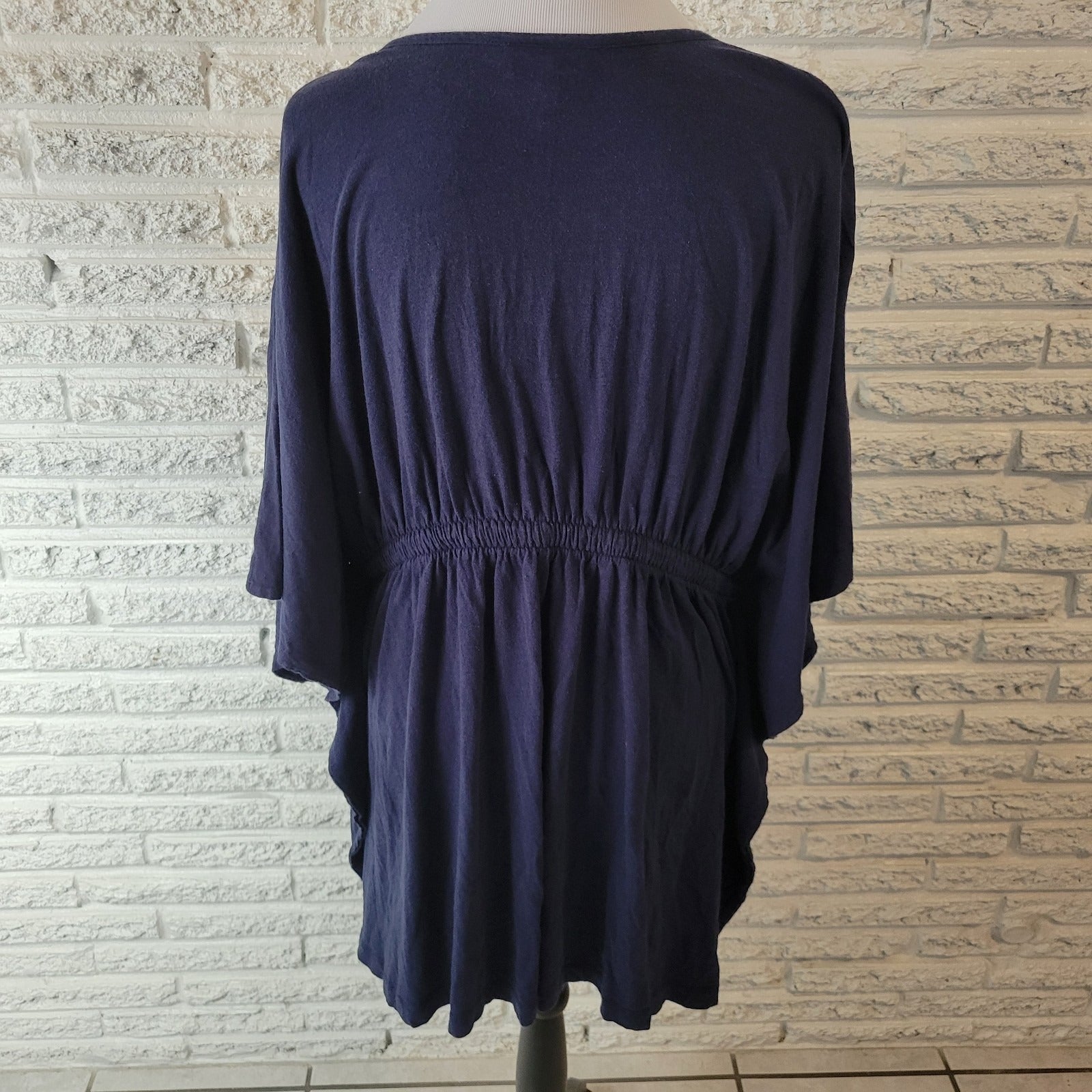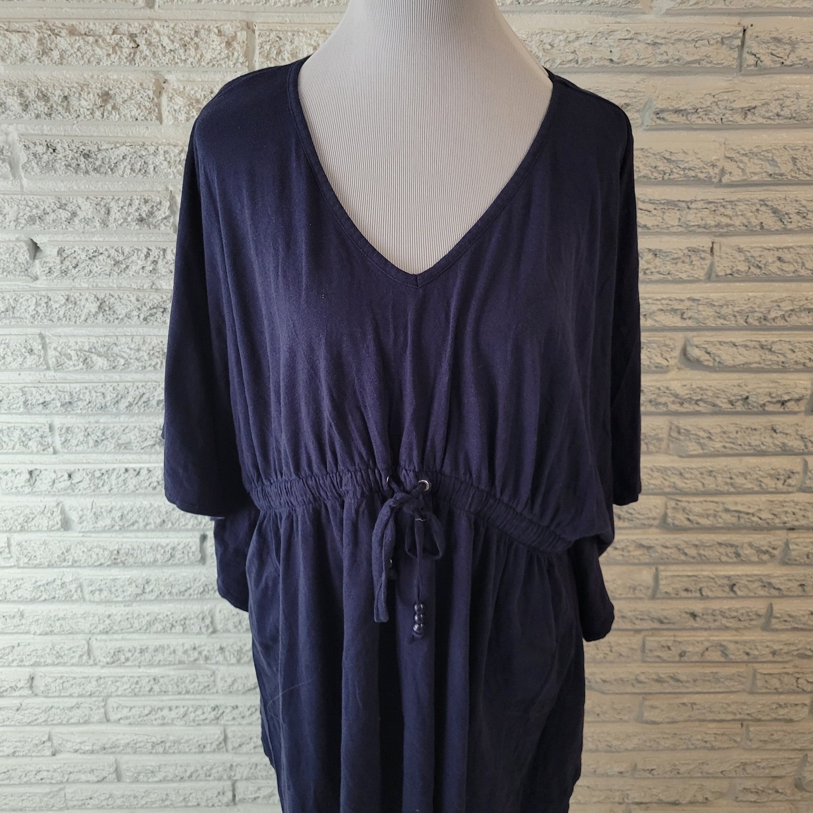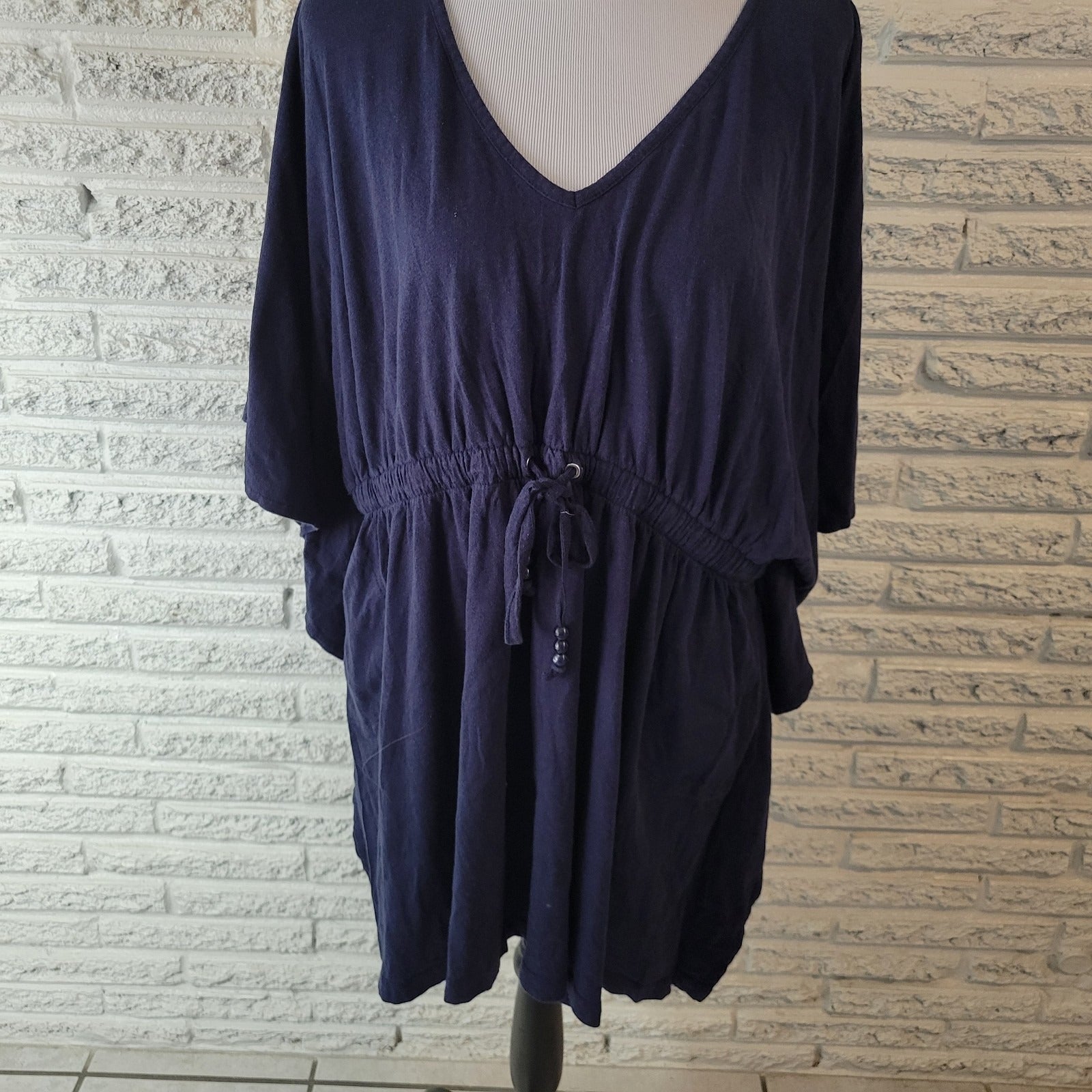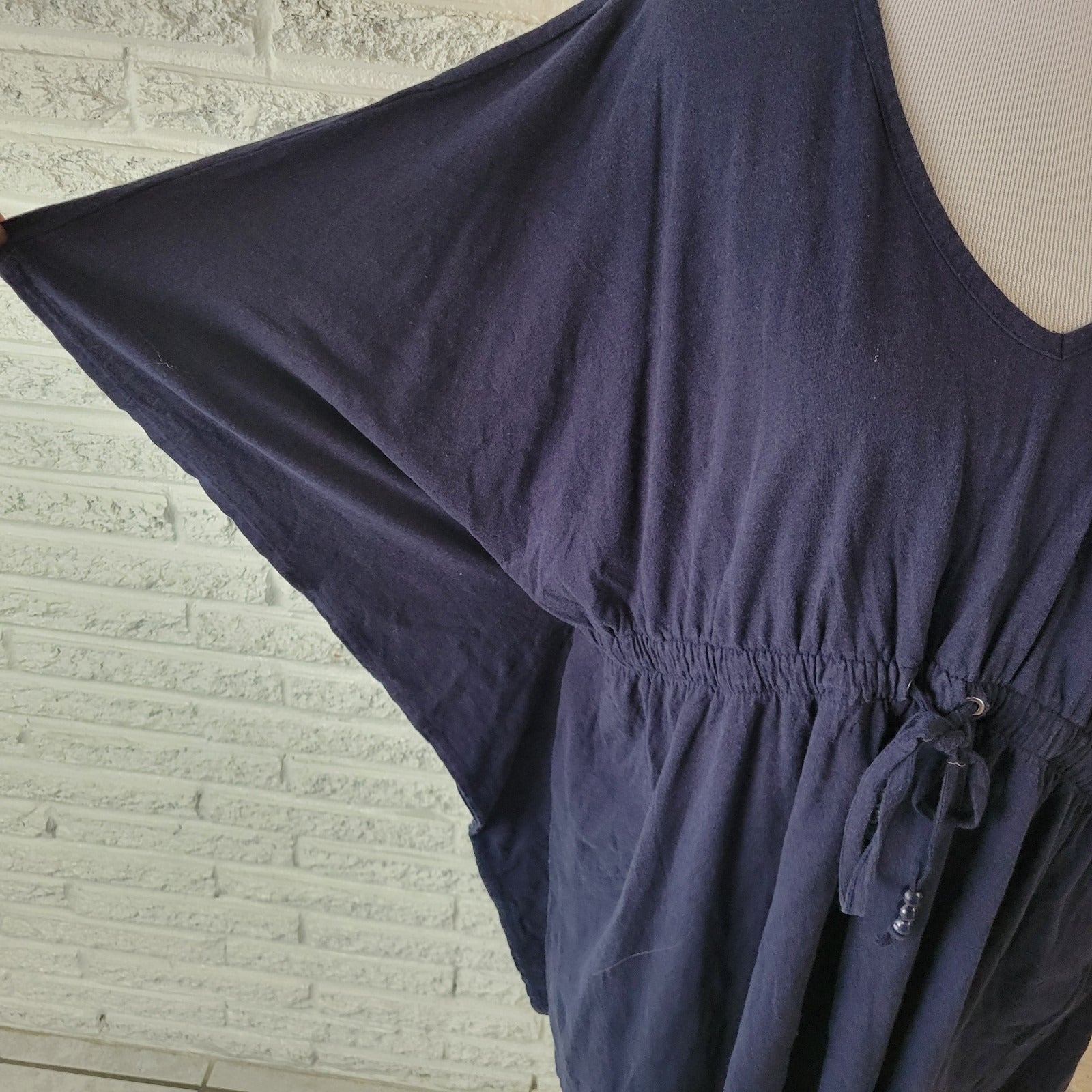 Swim 365 Womens Cover Up 1X Plus Batwing Sleeve Blue Cotton Blend Drawstring