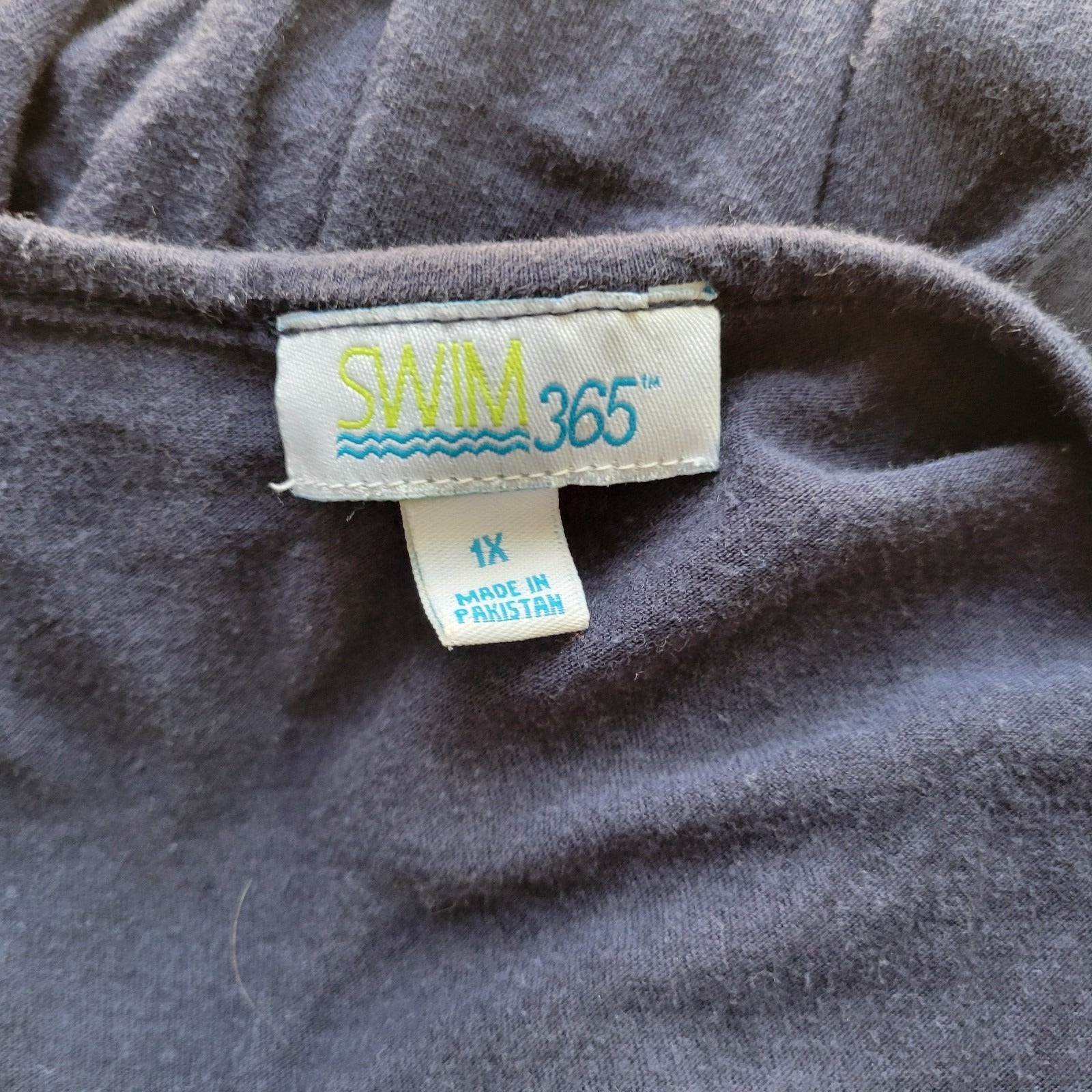 The Swim 365 Women's Cover Up in size 1X Plus is a stylish and comfortable addition to any woman's wardrobe. Made from a cotton blend material, this solid blue cover up features a batwing sleeve and a drawstring waist for a customizable fit. Easy to care for with machine washable instructions, this cover up offers both style and convenience. Perfect for beach days or lounging by the pool, this cover up from Swim 365 is a versatile piece that combines fashion and functionality.