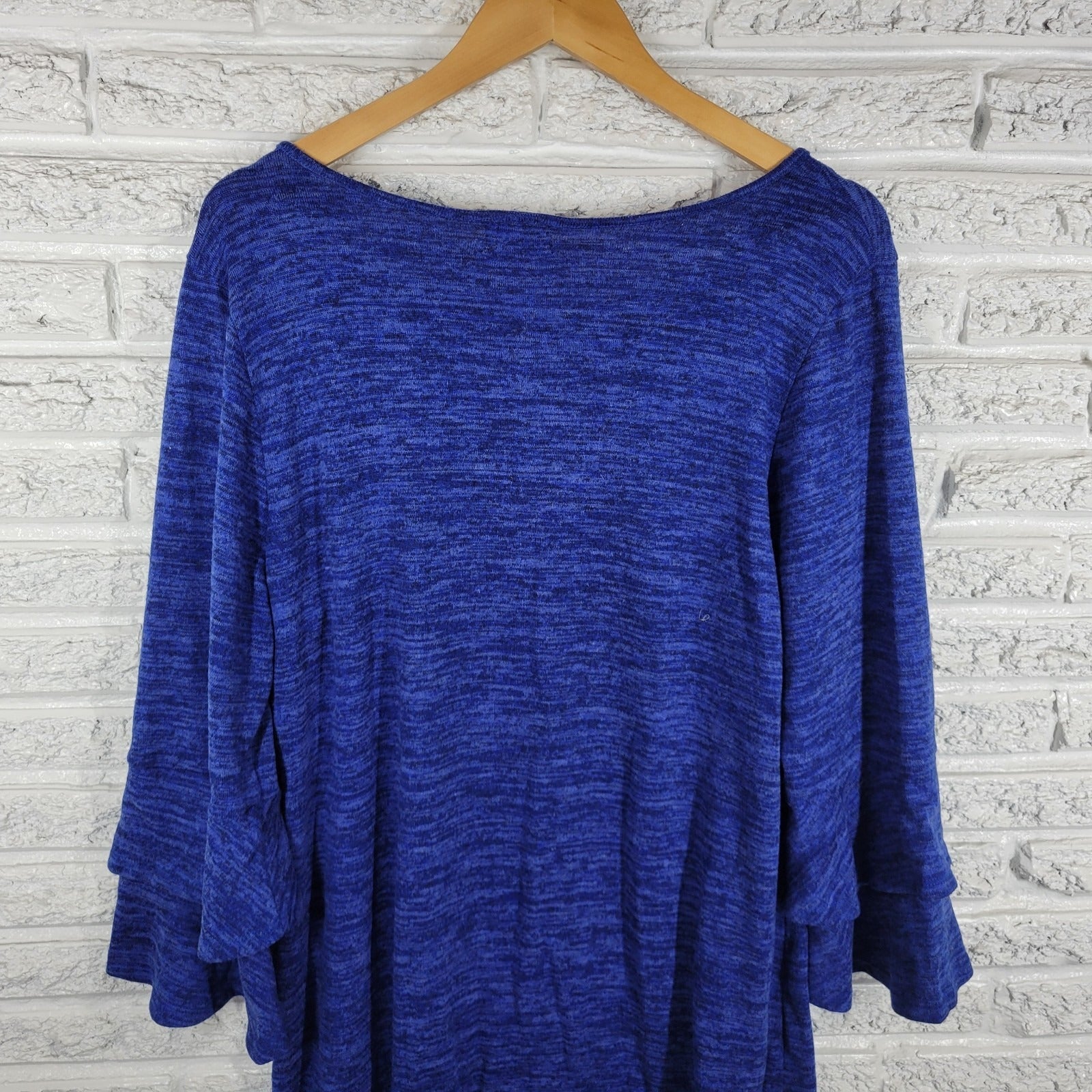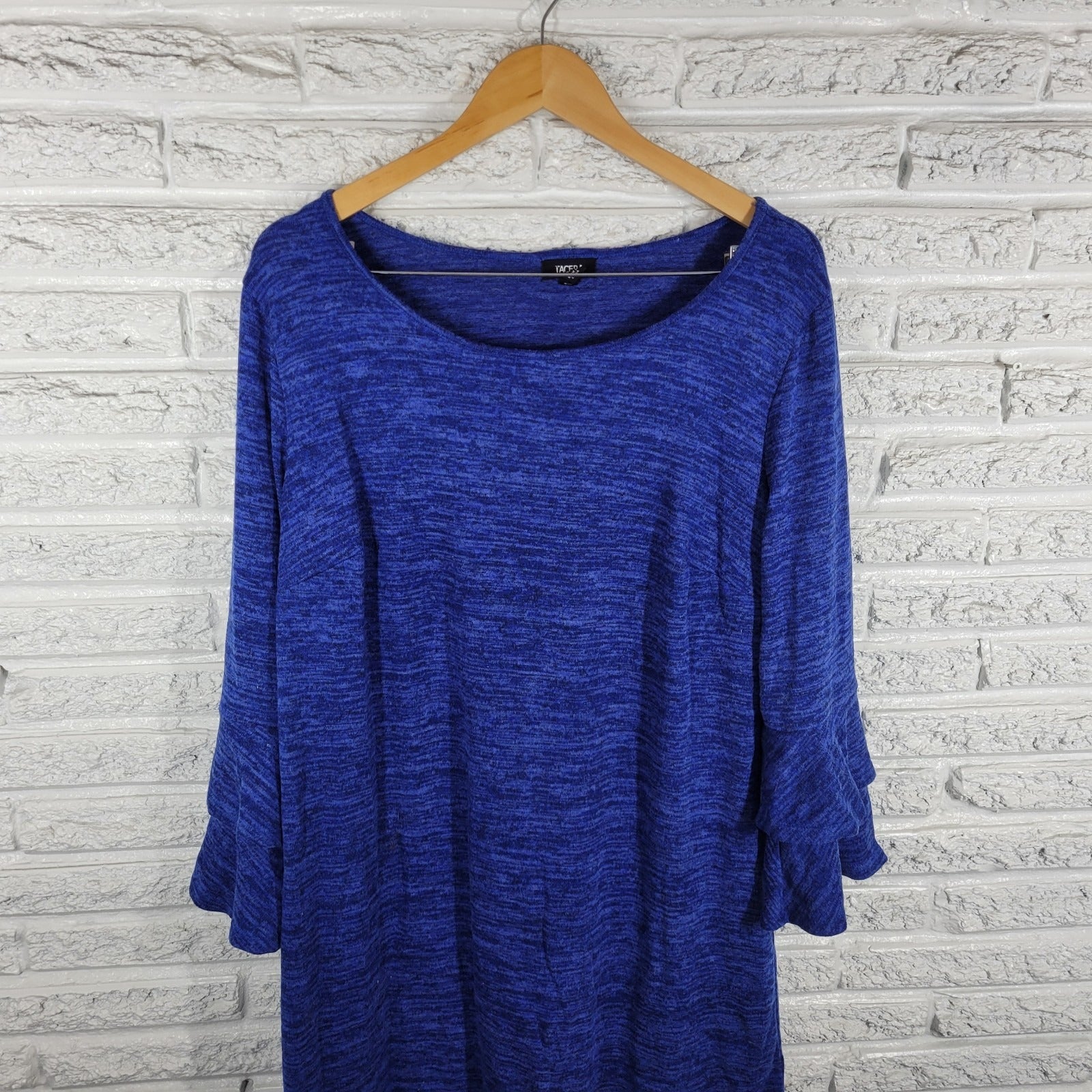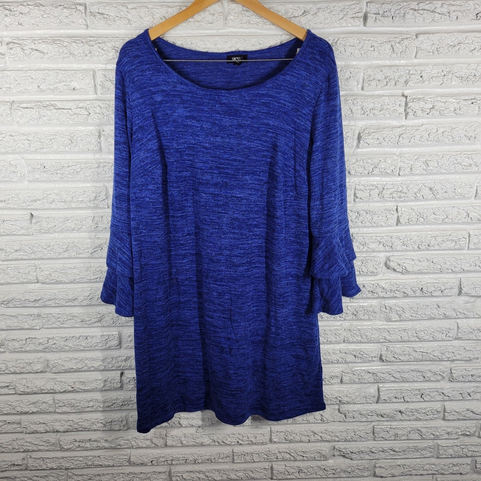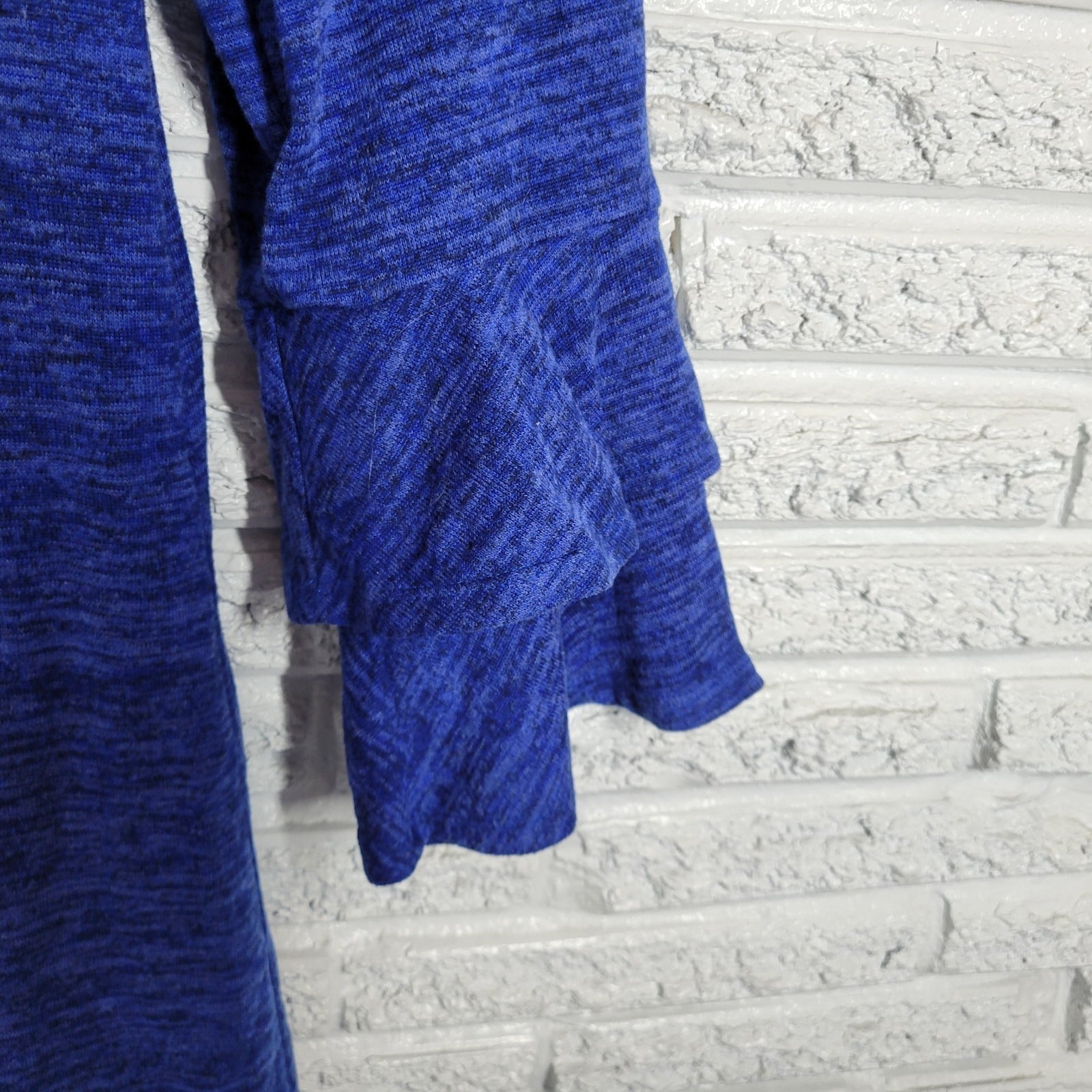 Tacera Womens Dress 1X Plus Mini Double Bell Sleeve Blue Heather Poly Blend