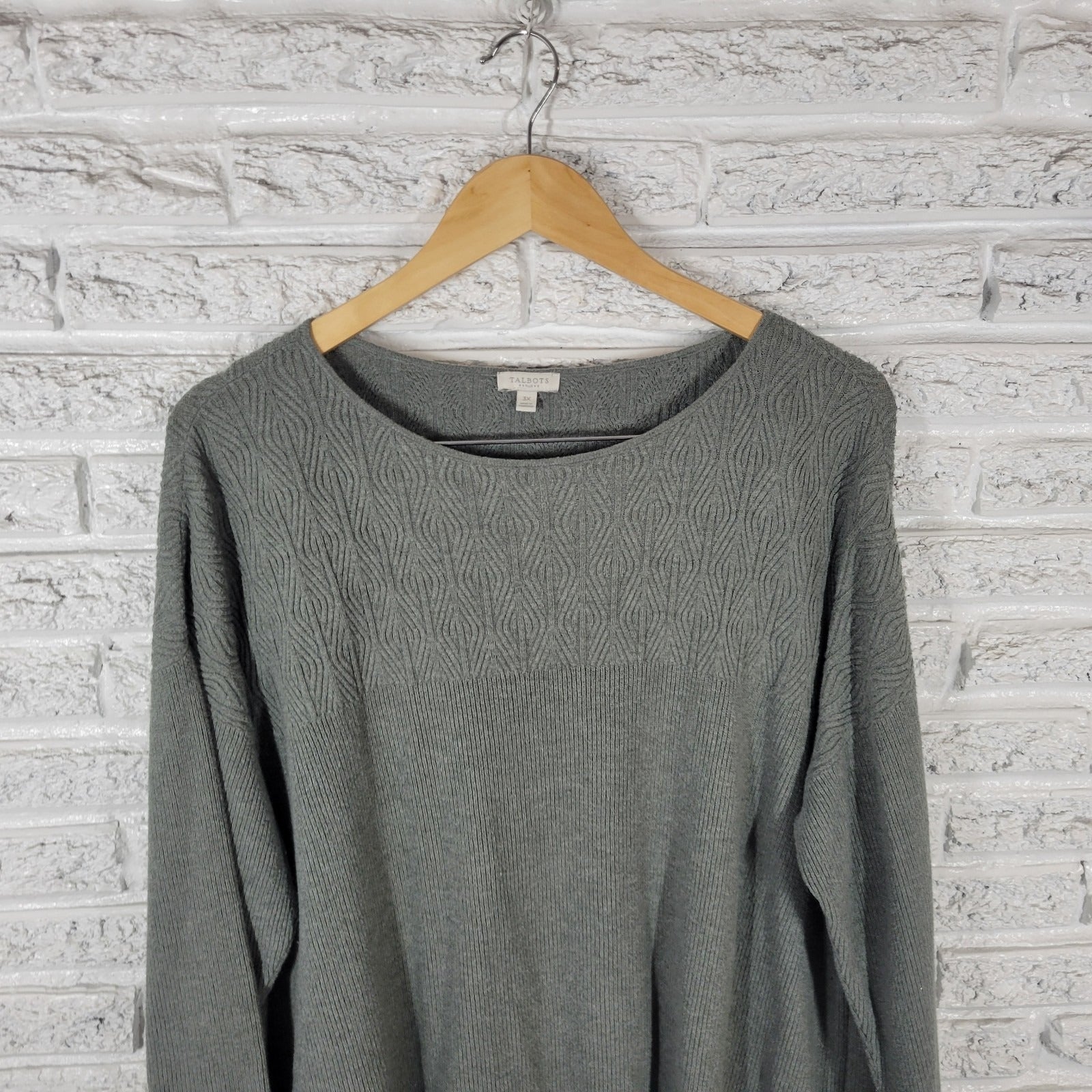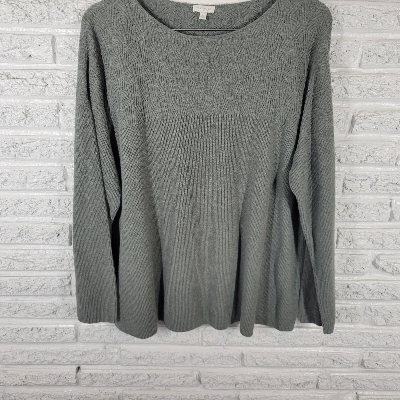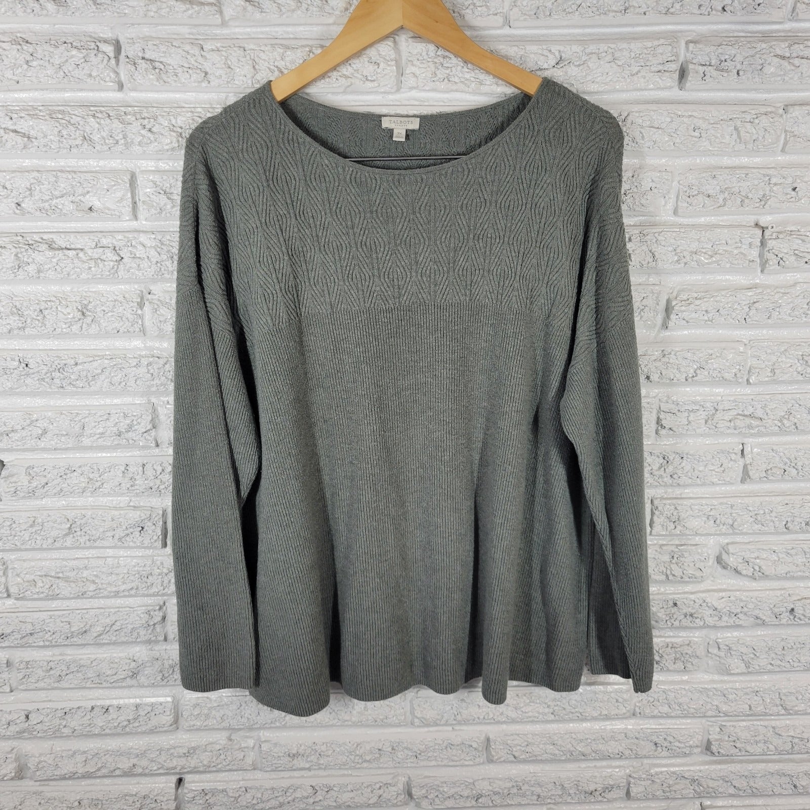 Talbots Womens Sweater 3X Plus Long Sleeve Gray Cotton Blend Casual Pullover