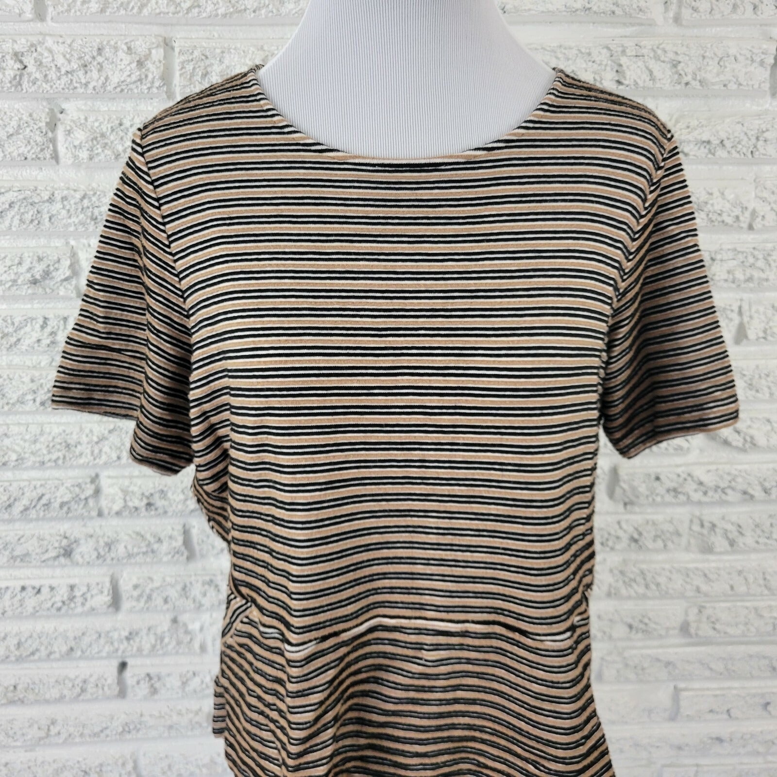 Talbots Womens Top 2XP Plus Pullover Tee Knit Black Raised Stripe Career Casual