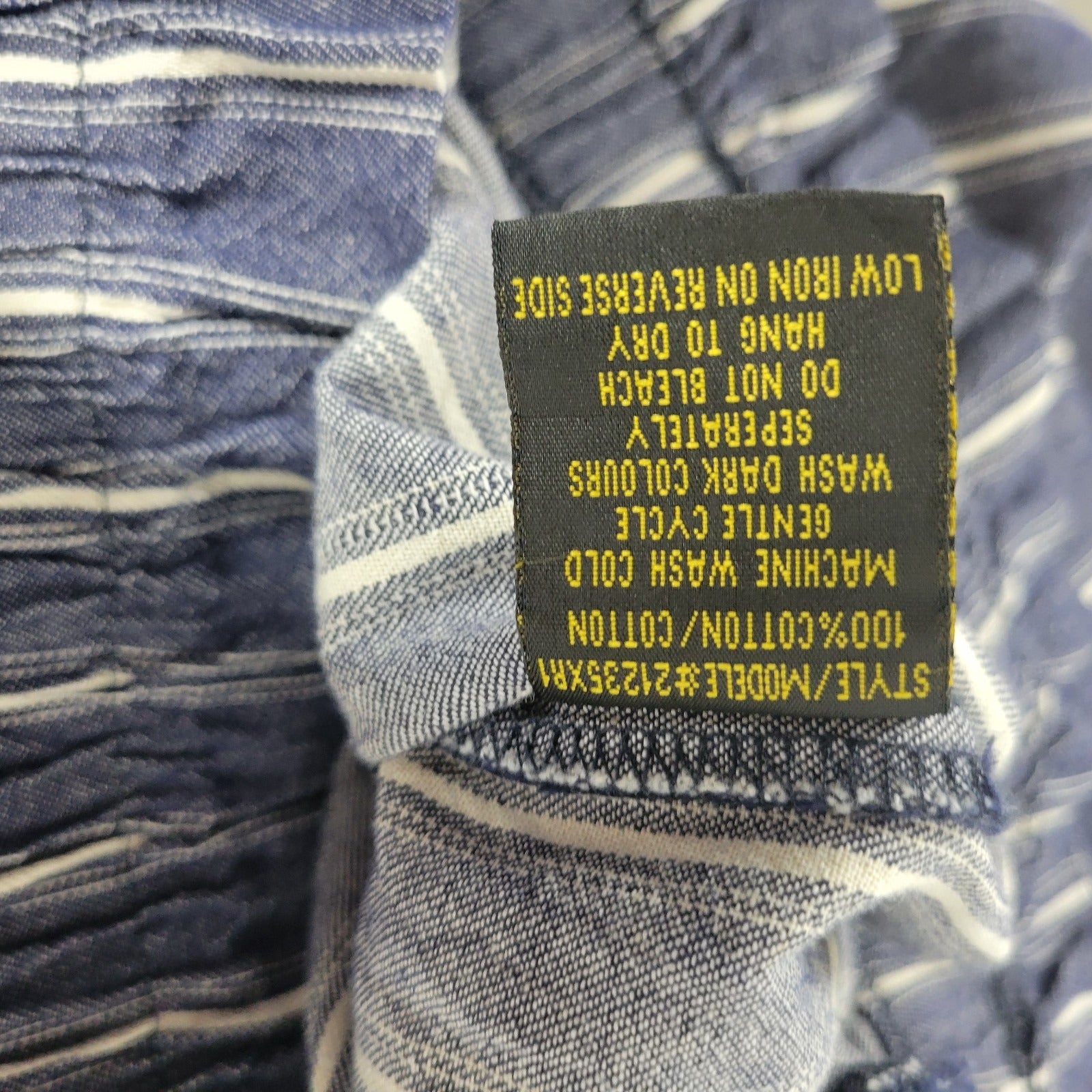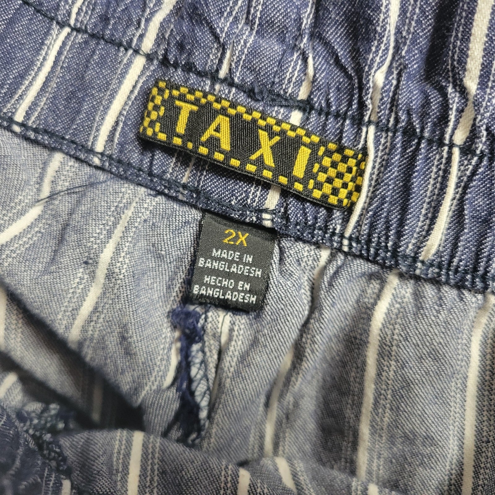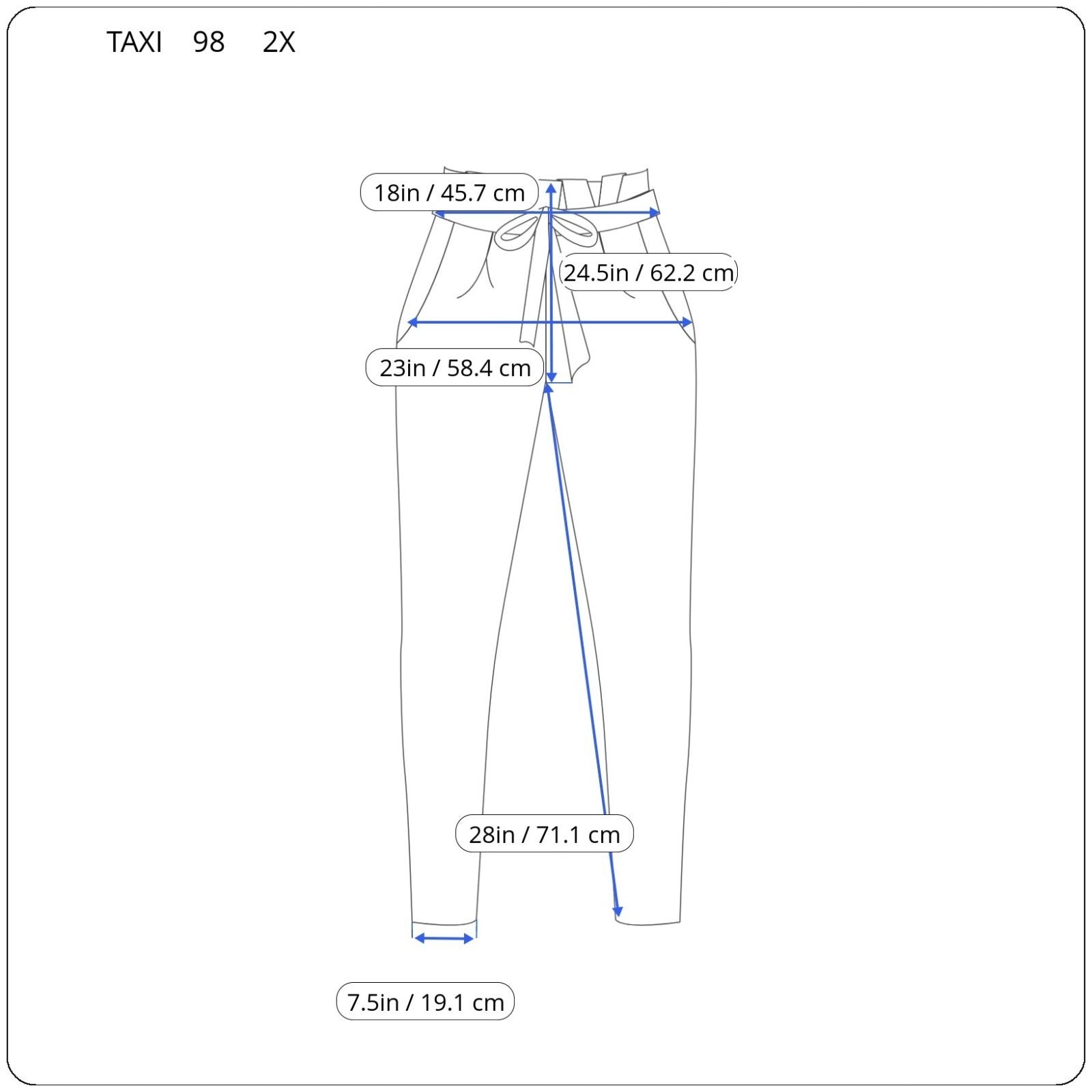 These Taxi Women's Plus Size 2X Pants in blue and white stripes are perfect for a casual or travel occasion. Made of comfortable cotton material, these pants feature a paper bag style with a cuffed hem, elastic waist, and convenient pockets. The pull-on closure and belted design add a stylish touch to these regular-fit pants, making them a versatile choice for any season. With a waist size of 36 inches and an inseam of 28 inches, these pants offer a comfortable and fashionable option for women.