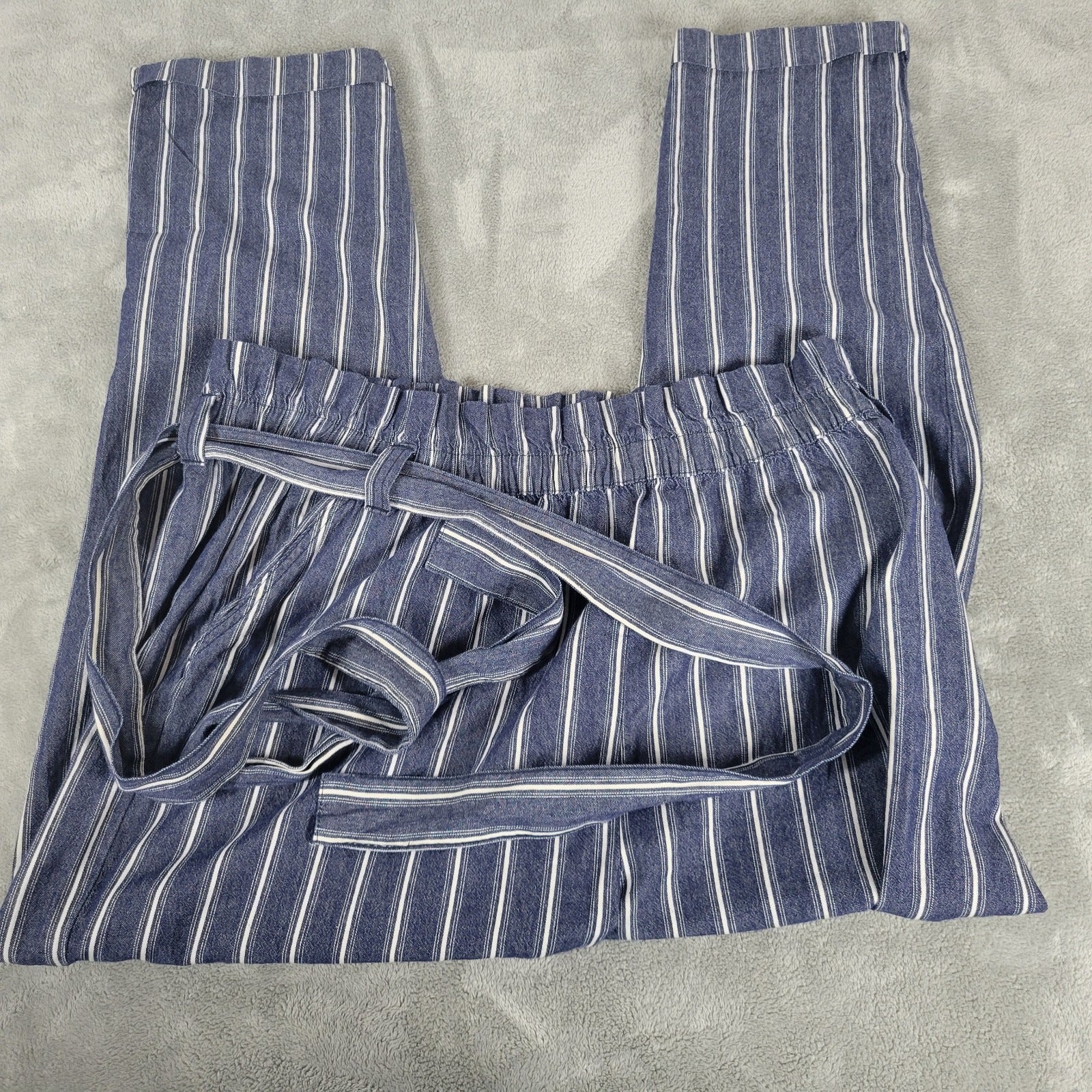 Taxi Womens Pants 2X Plus Paper Bag Blue White Stripe Cotton Belt Cuffed Comfy