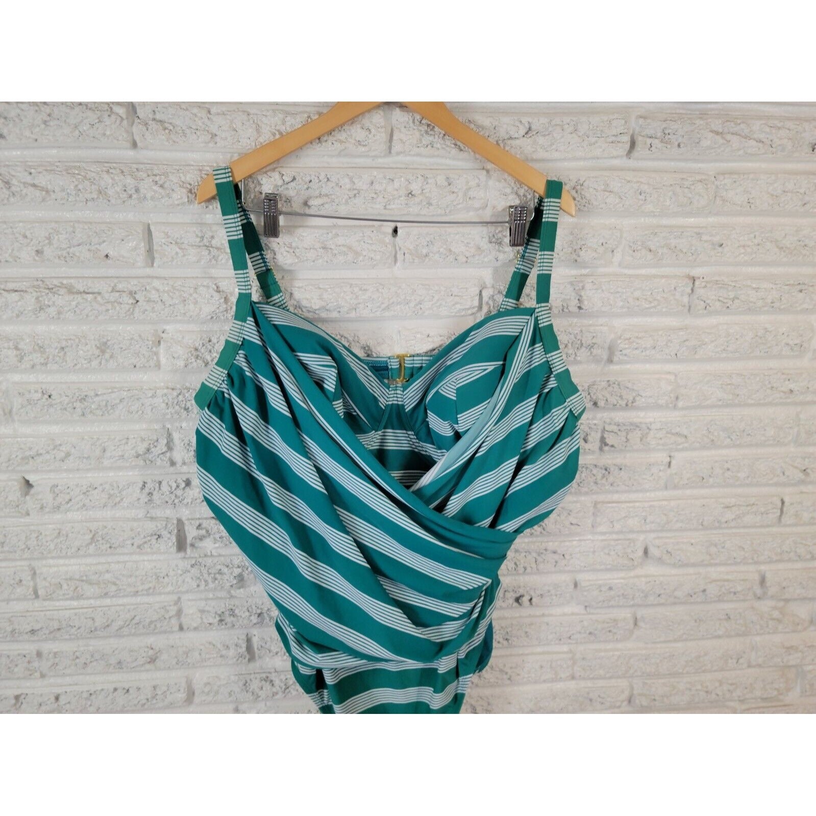 Terra Sky Women Swimsuit 4X 28W 30W One Piece Bra Clip Back Blue Green Stripe