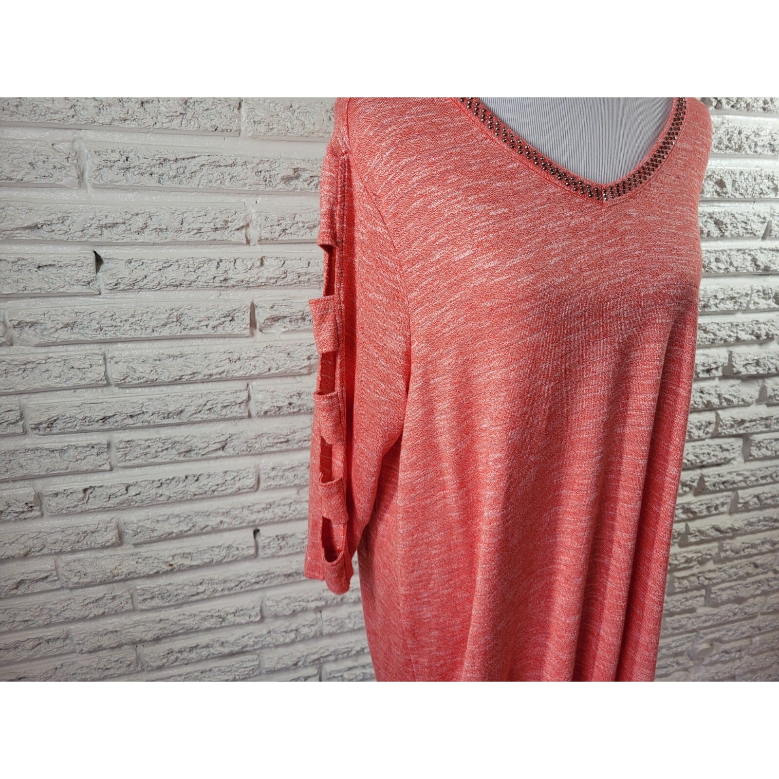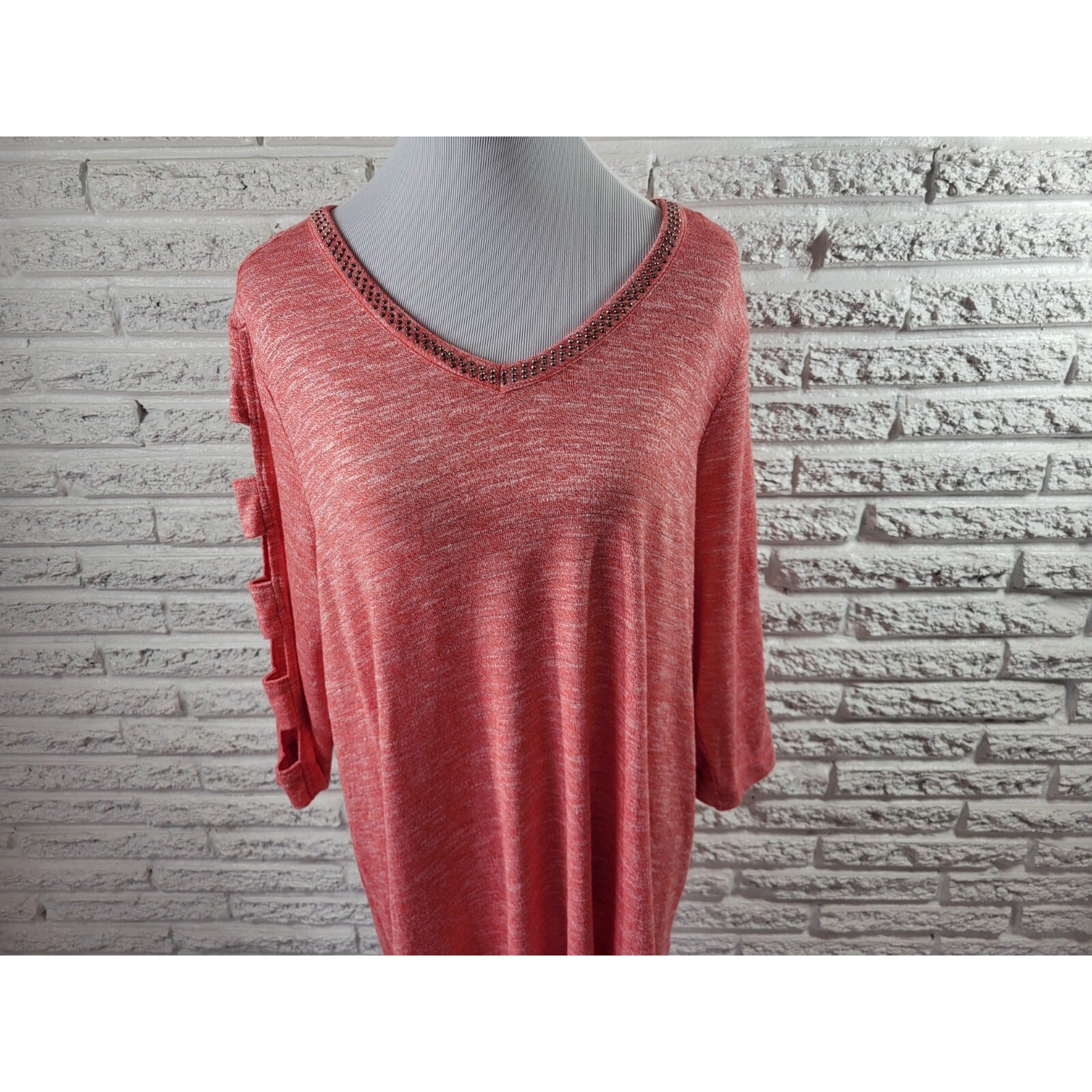 Terra Sky Women Top 1X Plus Tunic Cut Out Sleeves Pink Studded Metallic Thread
