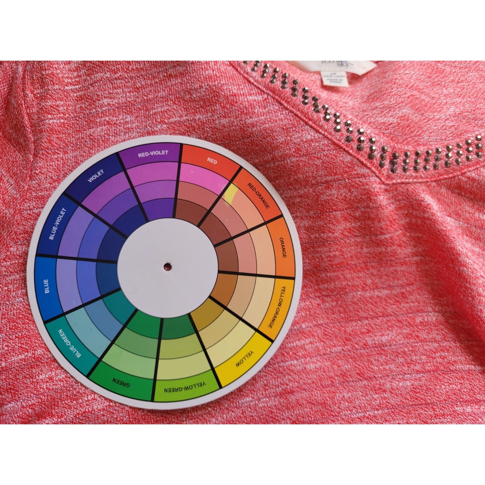 This women's top by TERRA & SKY is a stylish addition to your wardrobe. The pink blouse features a V-neckline and 3/4 sleeves with cut-out details, accented with studs and metallic thread for a casual yet chic look. The blouse has a regular fit and is made of a comfortable and stretchy blend of polyester, spandex, and rayon, making it perfect for all seasons. The blouse is machine washable and easy to care for. It is a great choice for casual occasions and can be paired with jeans or leggings for a complete look.