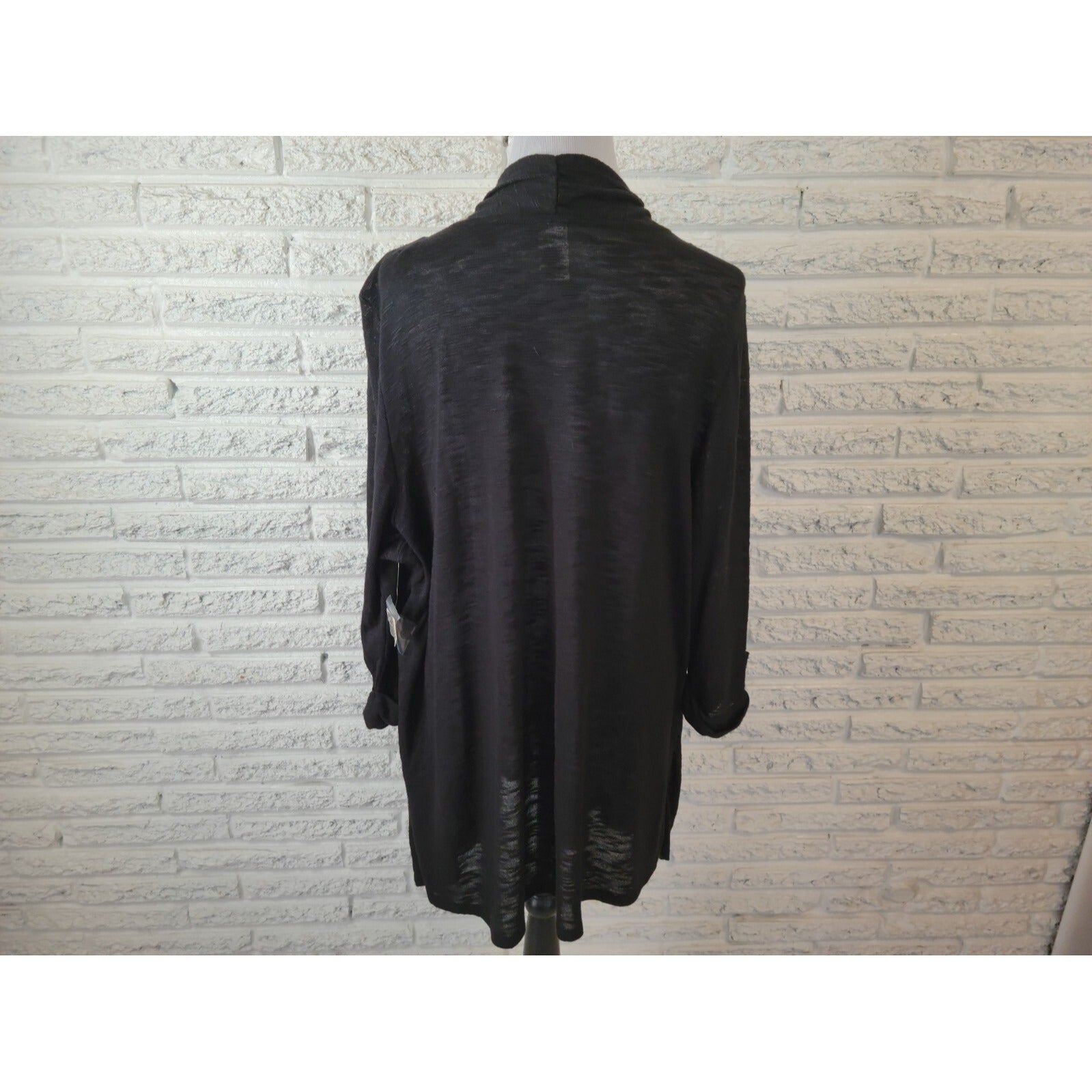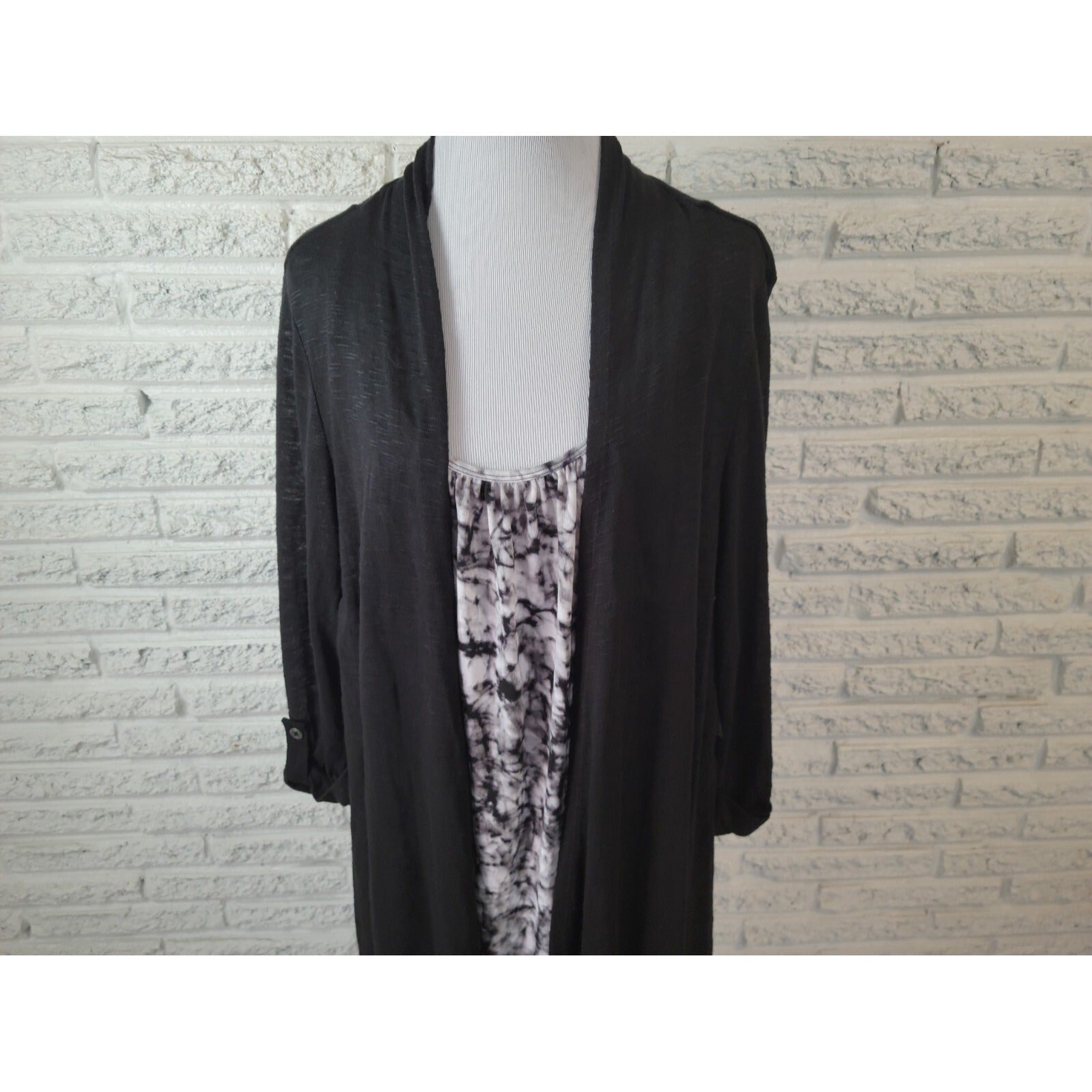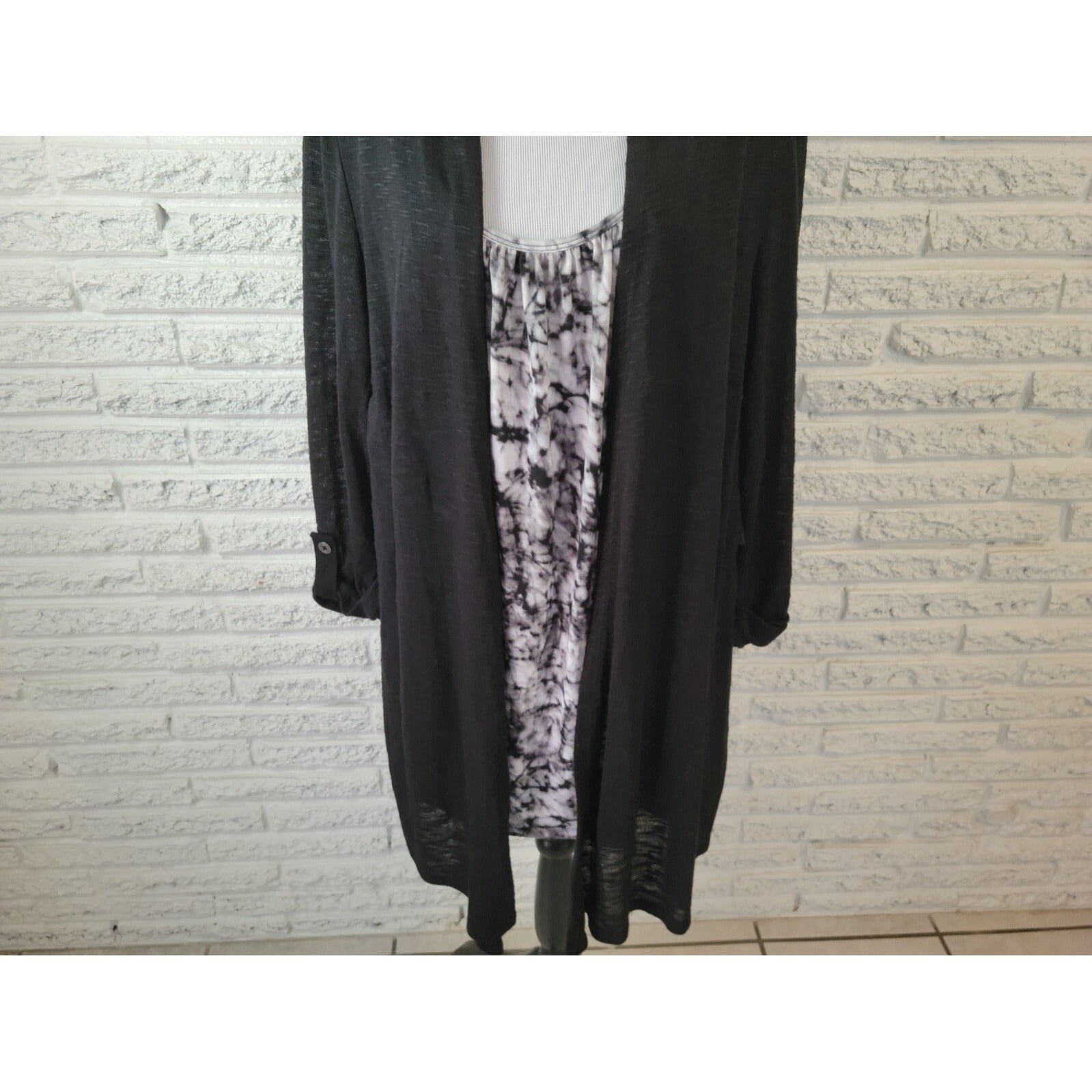 Terra Sky Women Top 2X Plus Pullover Roll Tab Sleeve Black Tie Dye Asymmetric
