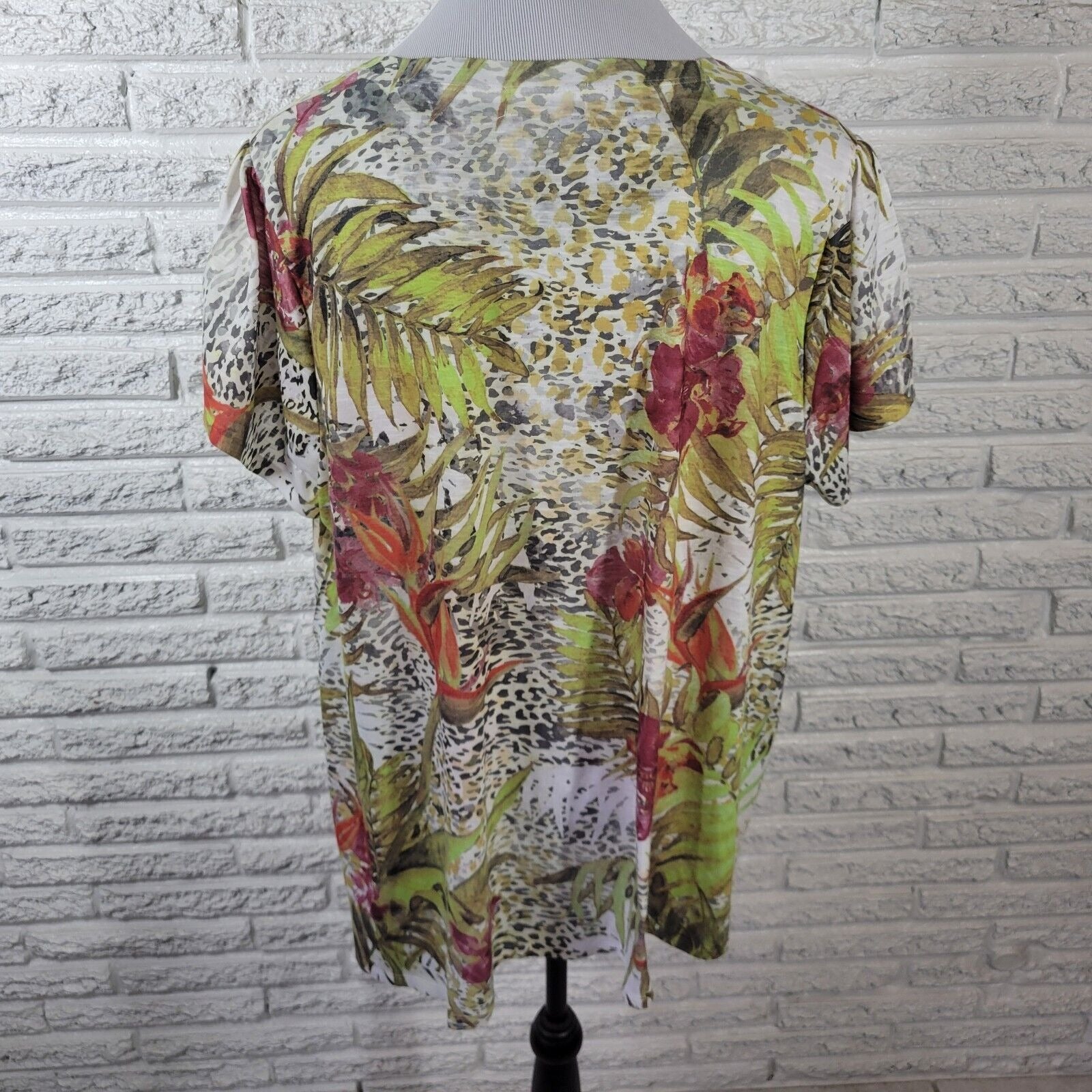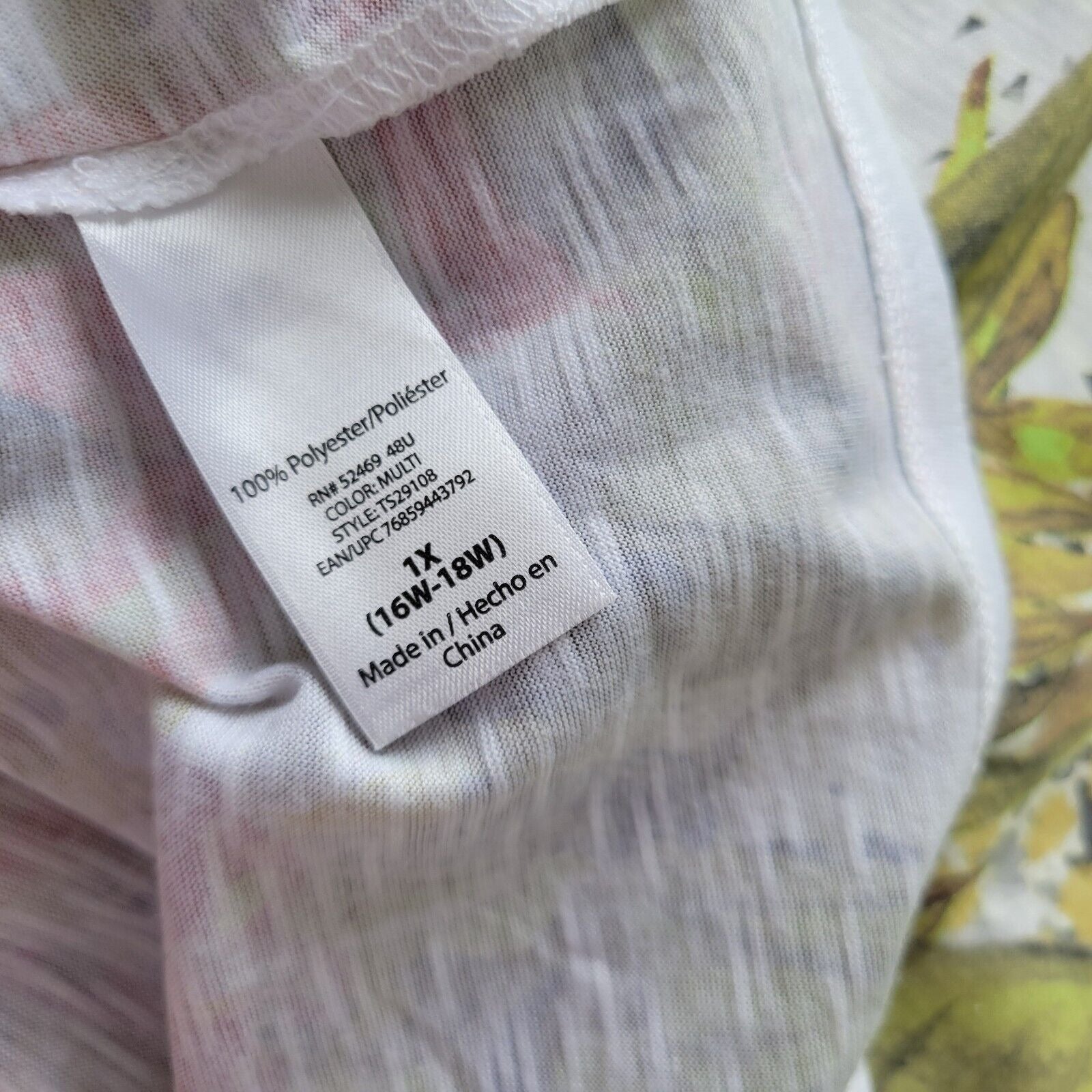 Terra Sky Womens 1X 16W 18W Plus Tee Green Floral Studded Split Hem Lightweight