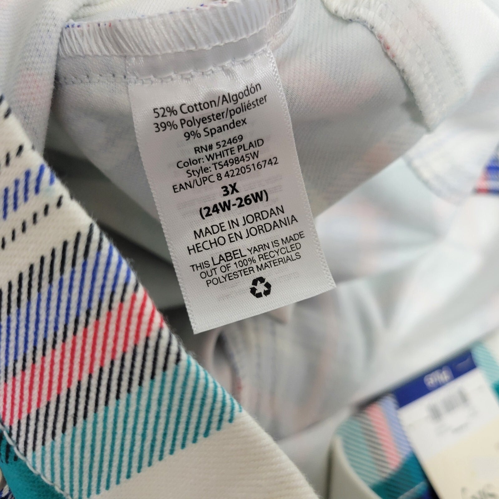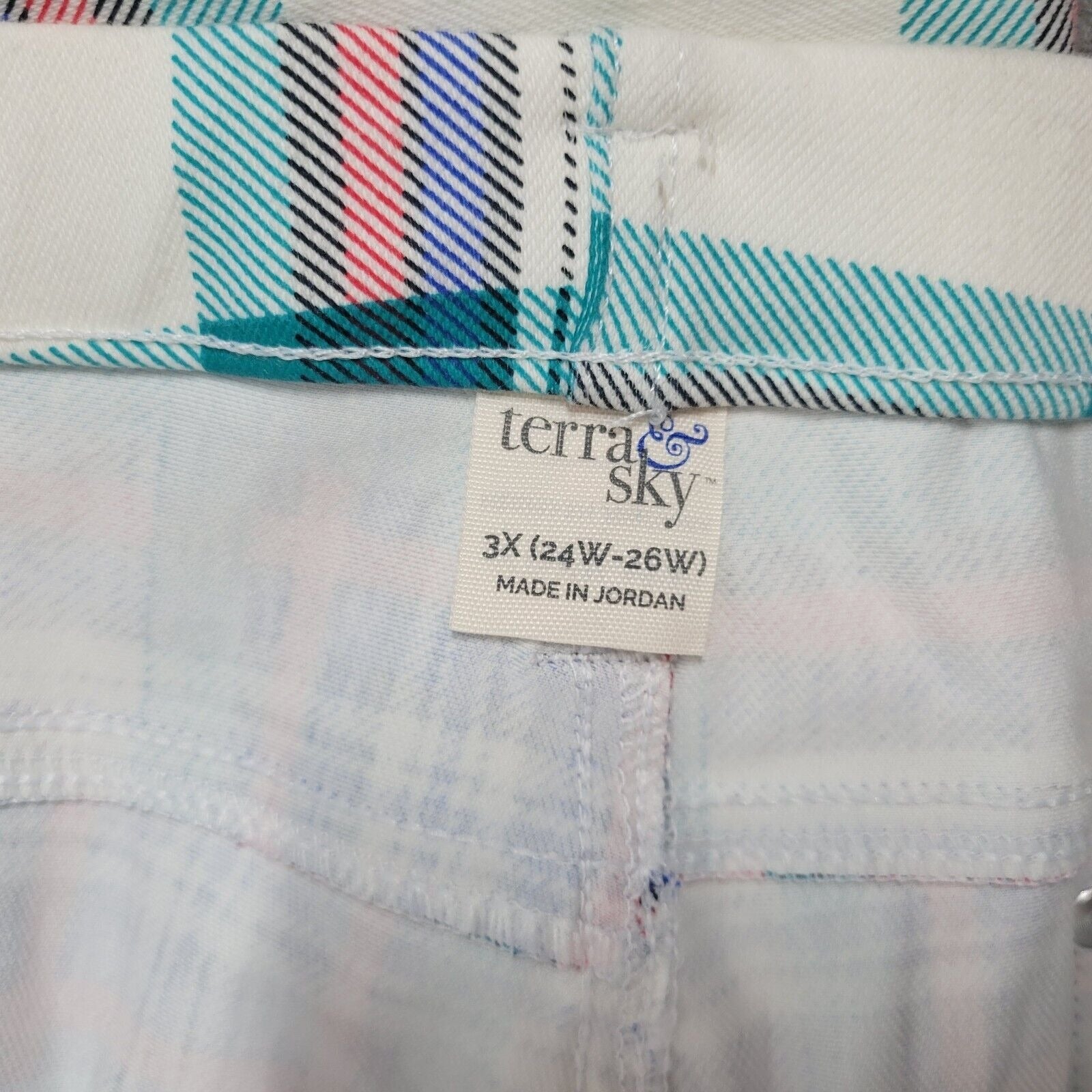 Terra Sky Womens Pants 3X 24W 26W Plus Pull On Cropped Red Plaid Cotton Blend