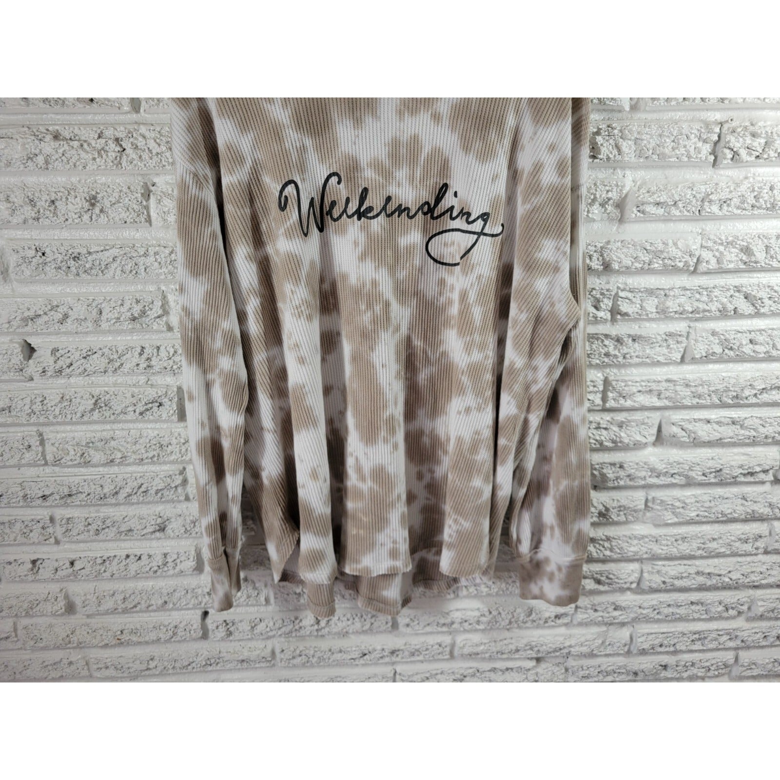 Terra Sky Womens Sweater 1X Weekending Tan Watercolor Lightweight Waffle Knit