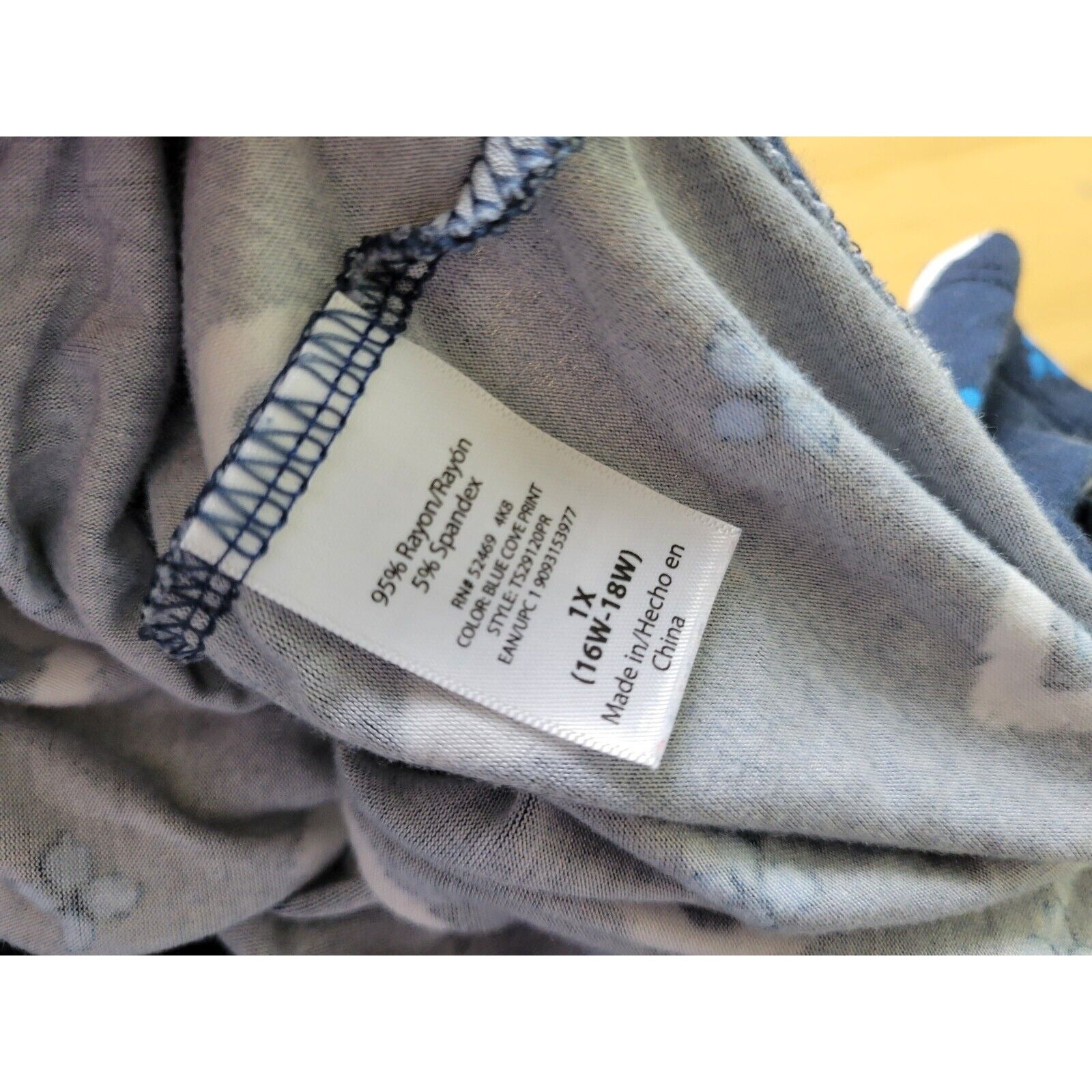 Terra Sky Womens Top 1X 16W 18W Plus Cap Sleeve Blue Diamond Rayon Spandex