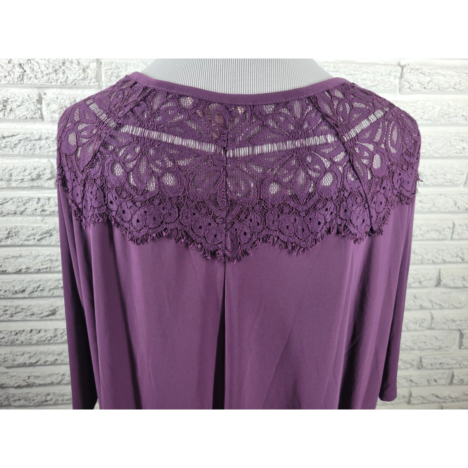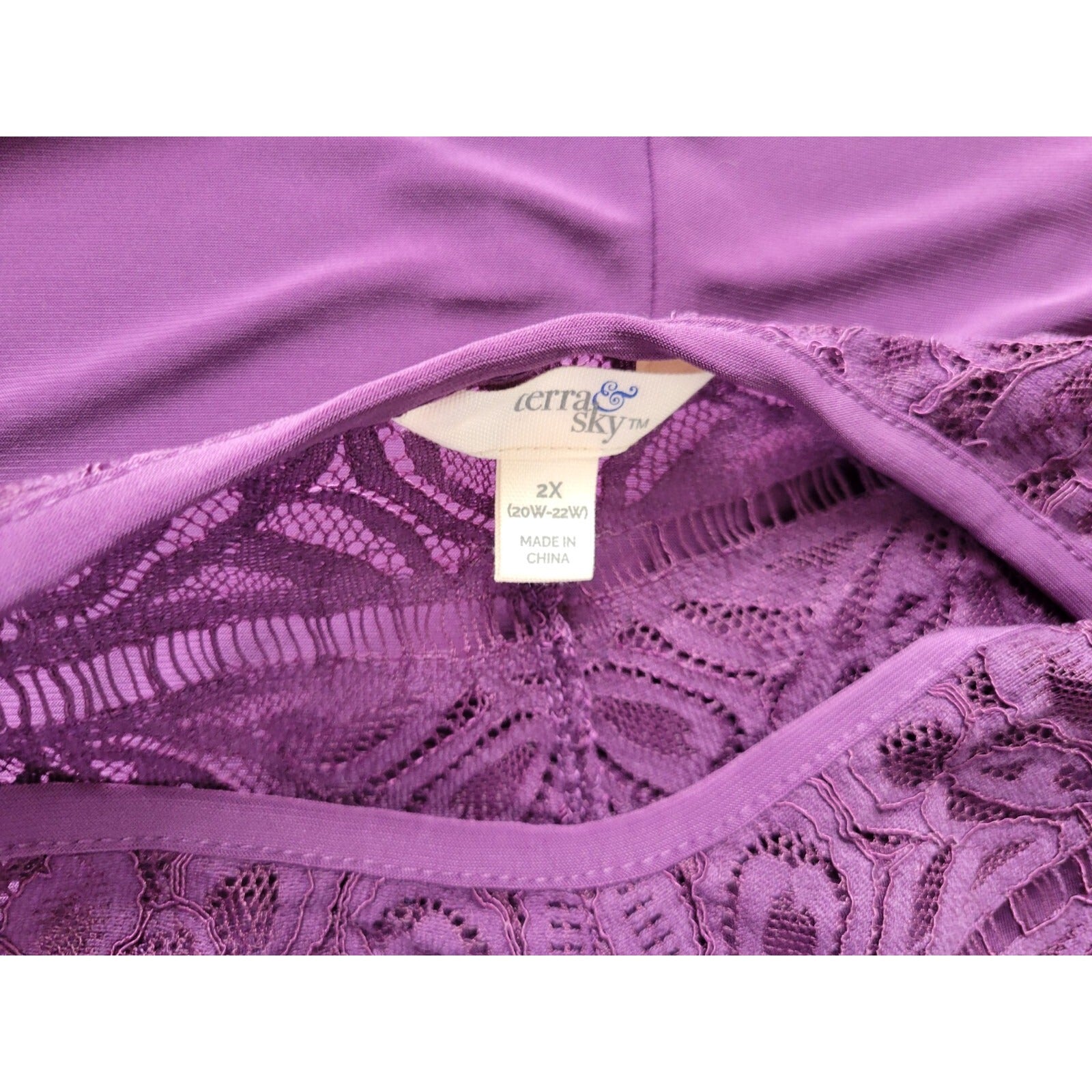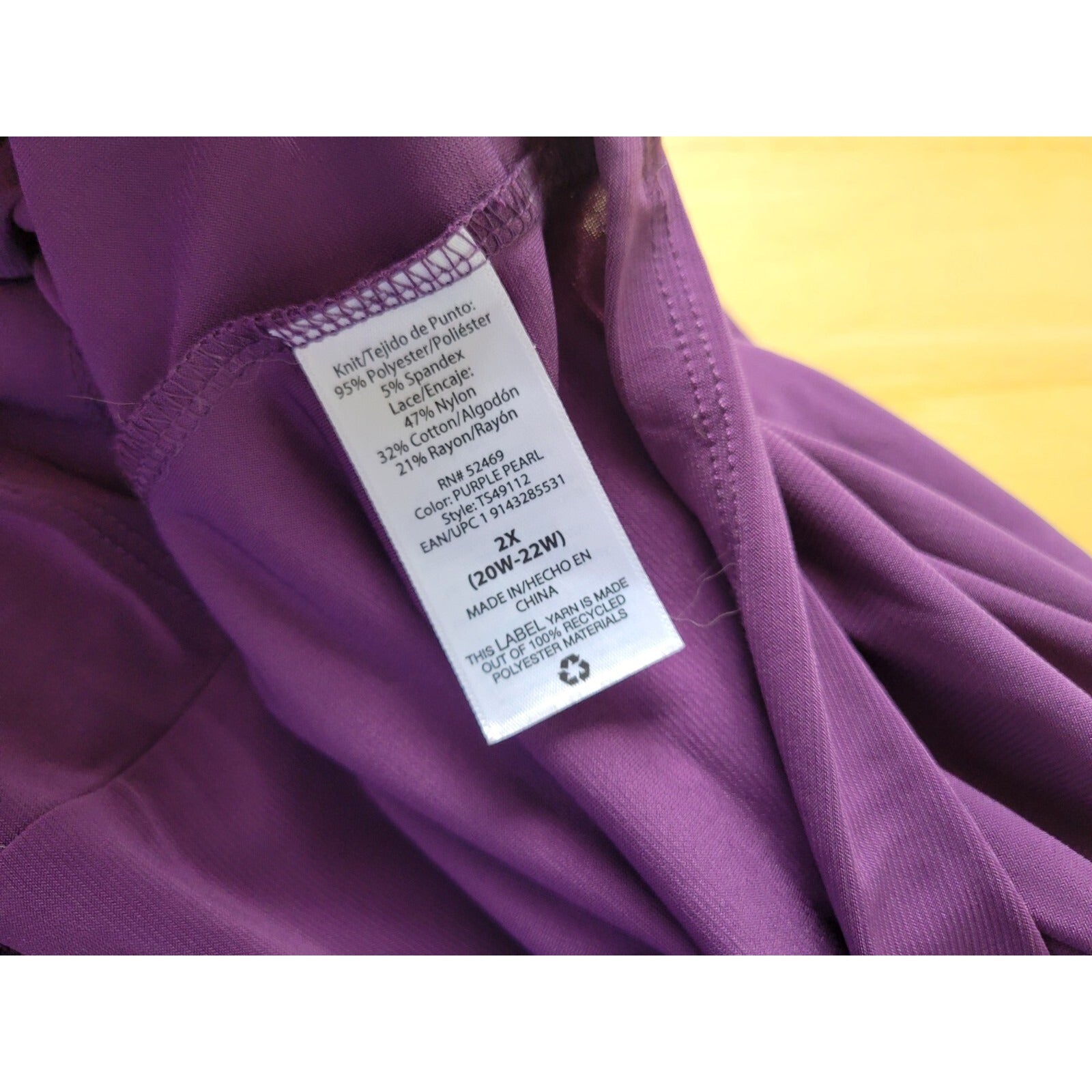 Terra Sky Womens Top 2X Plus Short Sleeve Purple Lace Poly Blend Stretchy Casual
