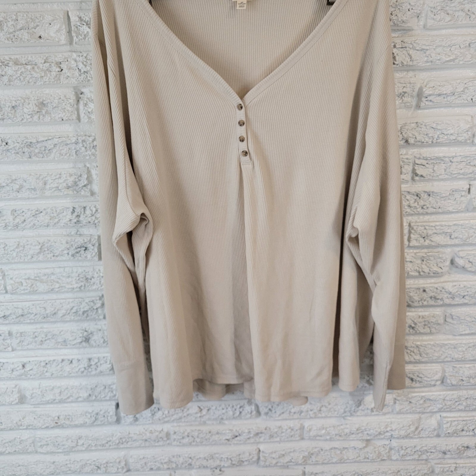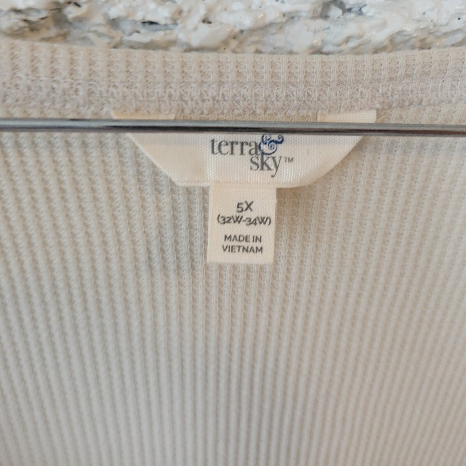 Terra Sky Womens Top 5X 32W 34W Plus Long Sleeve Off White Button Waffle Knit