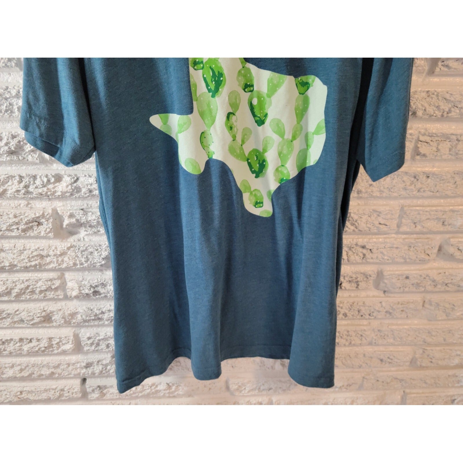 Texas Cactus Womens Top 2XL Plus Tee Short Sleeve Blue Polyester Blend Casual