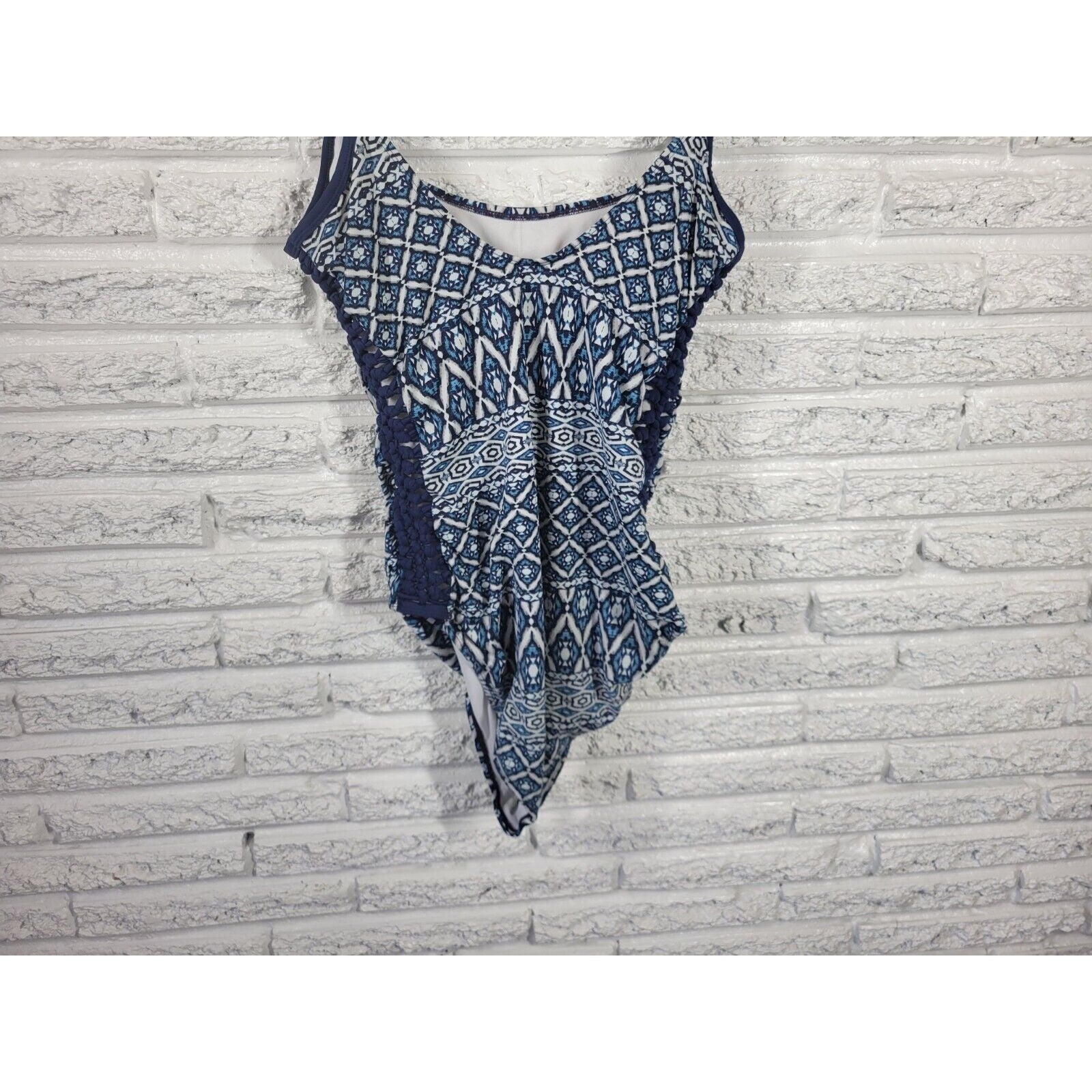 Time Tru Women Swimsuit Extra Large One Piece Blue Geometric Knotted Sides