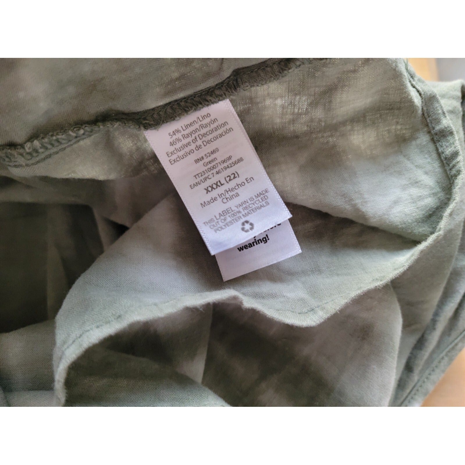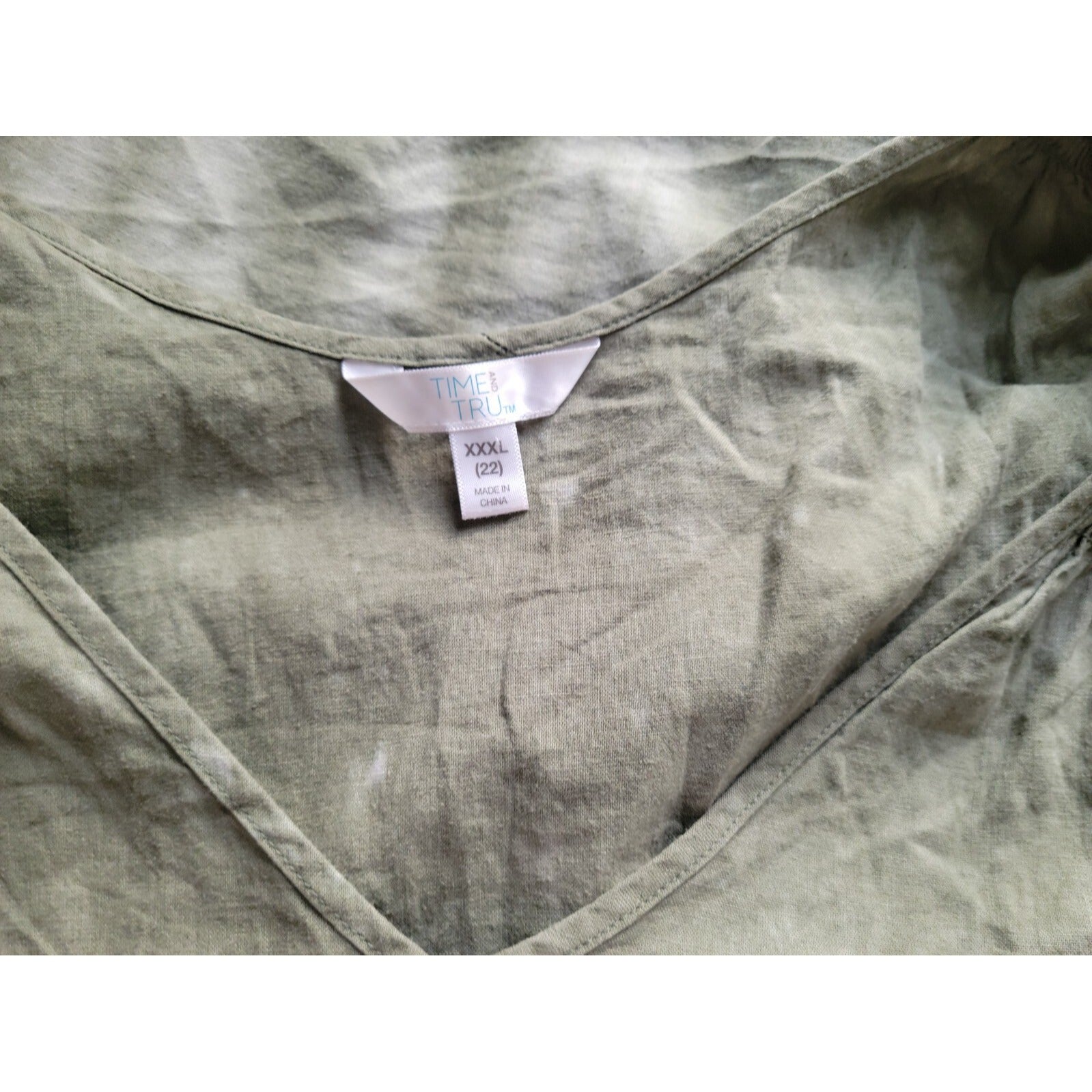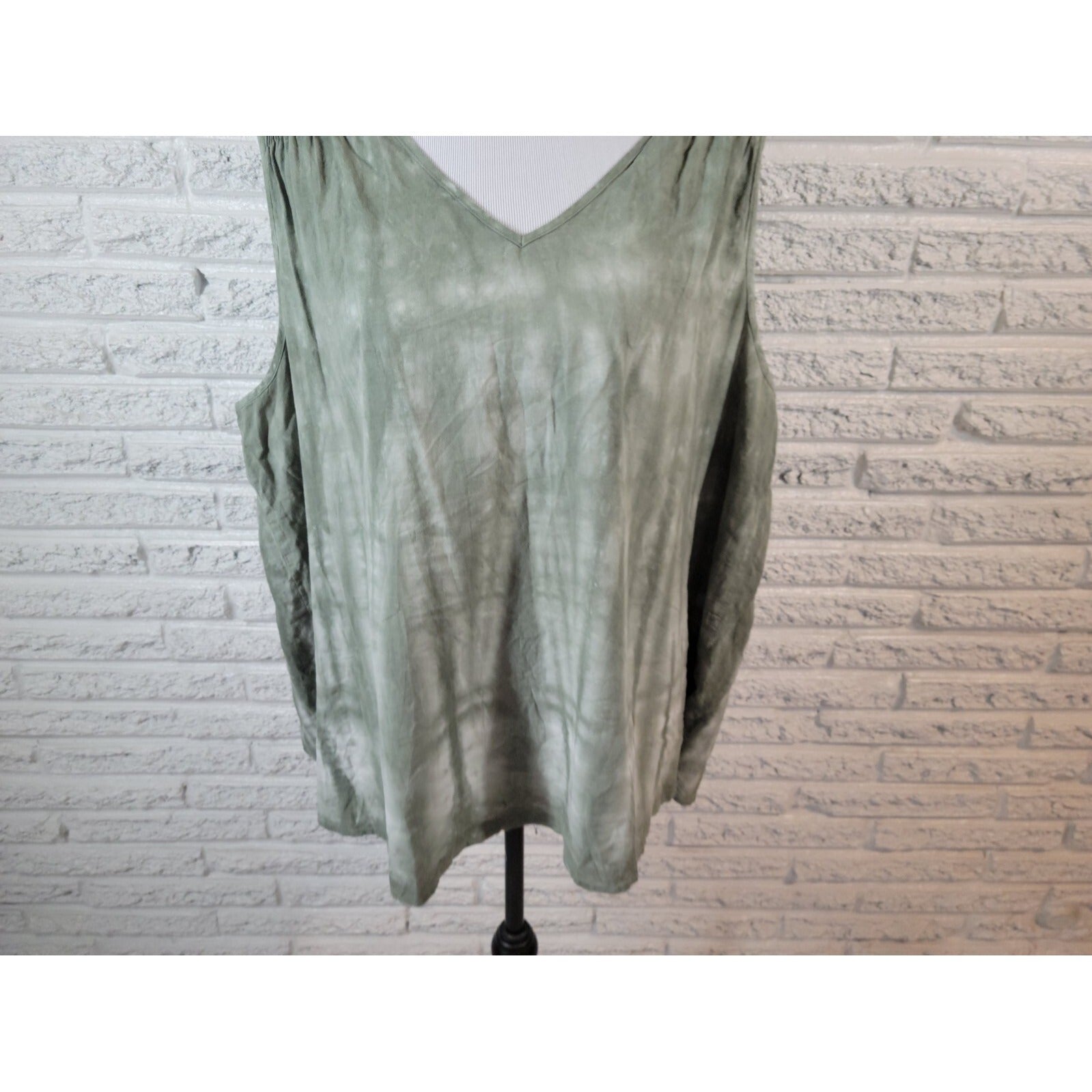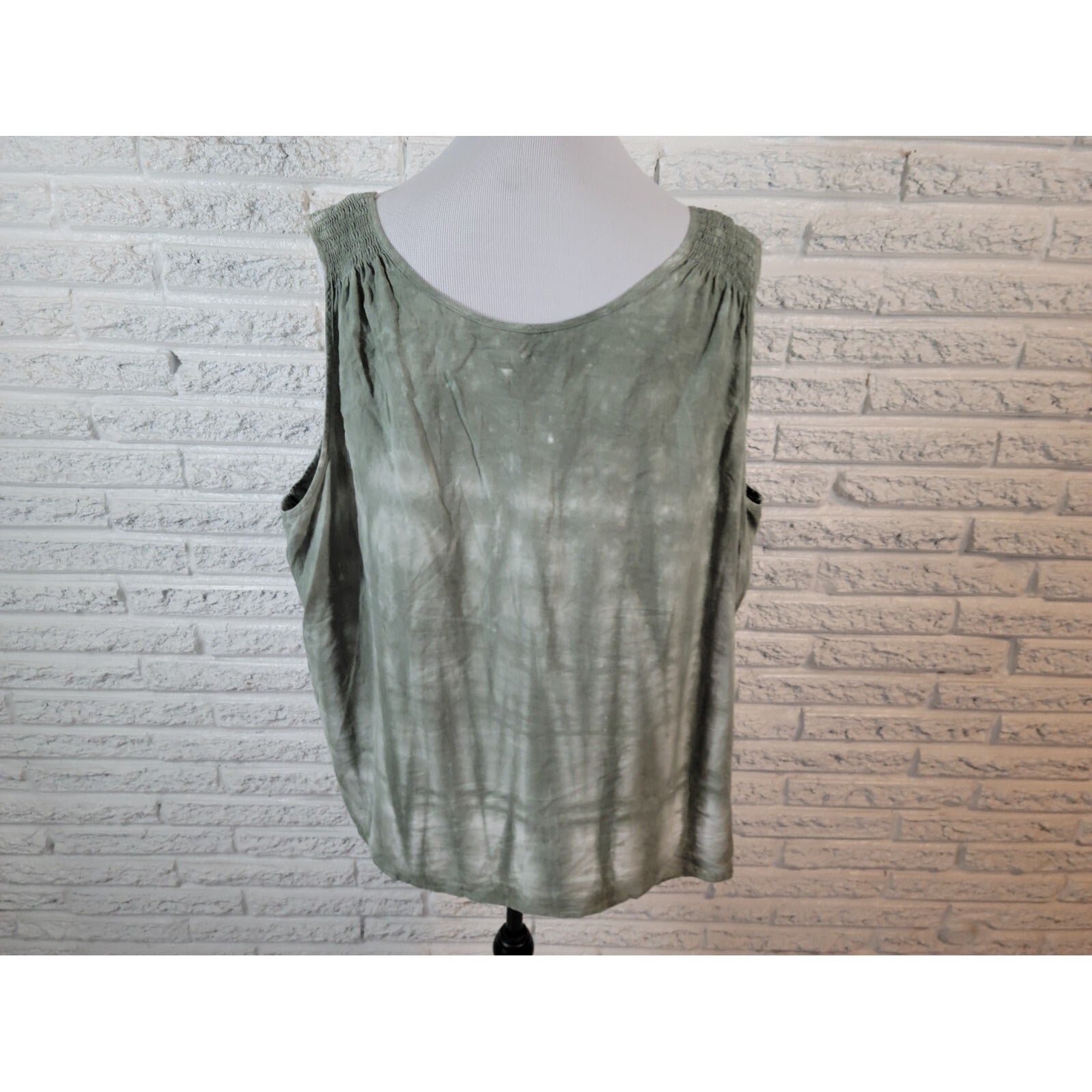 Time Tru Women Top XXXL 22 Plus Tank Green Tie Dye Linen Rayon Smocked Shoulder