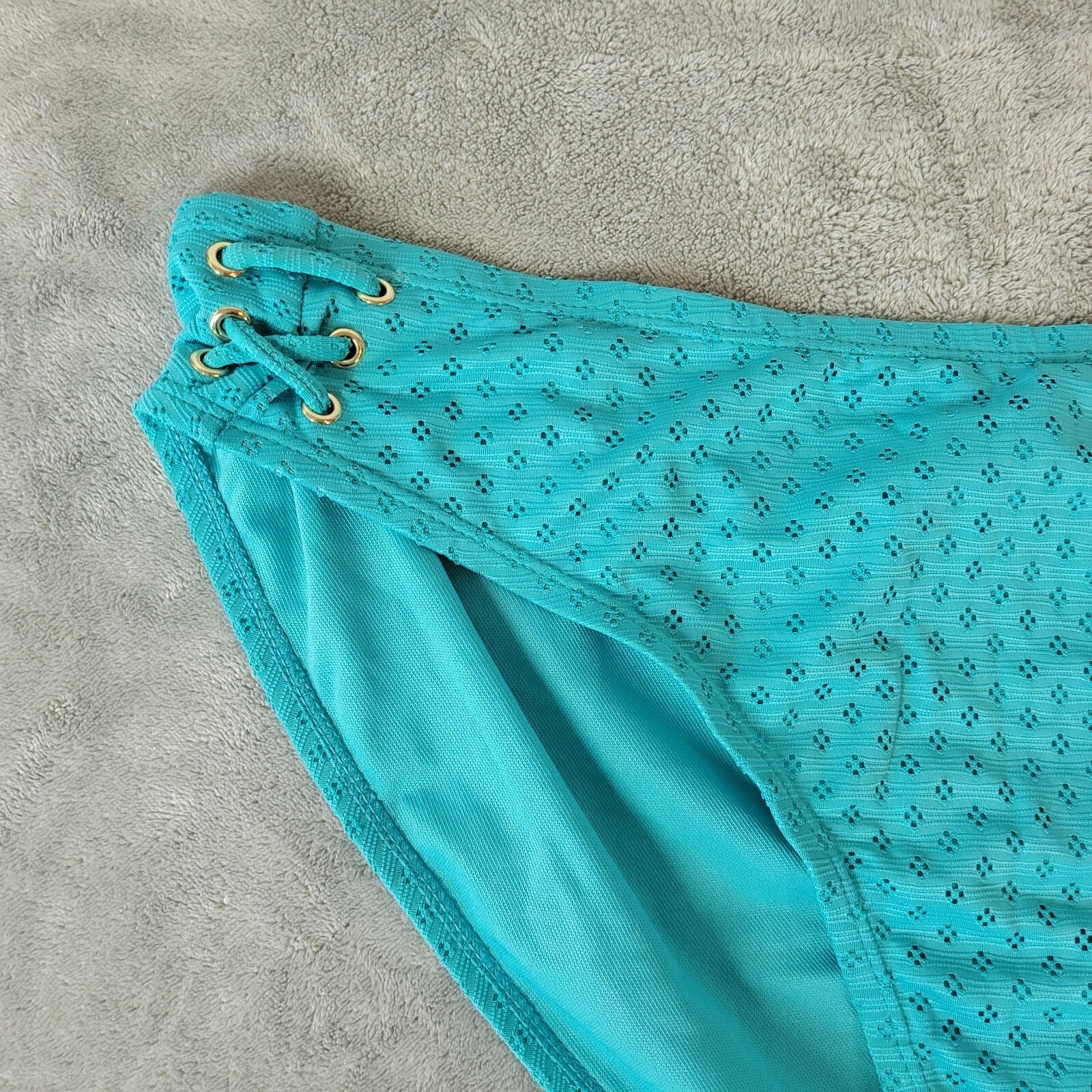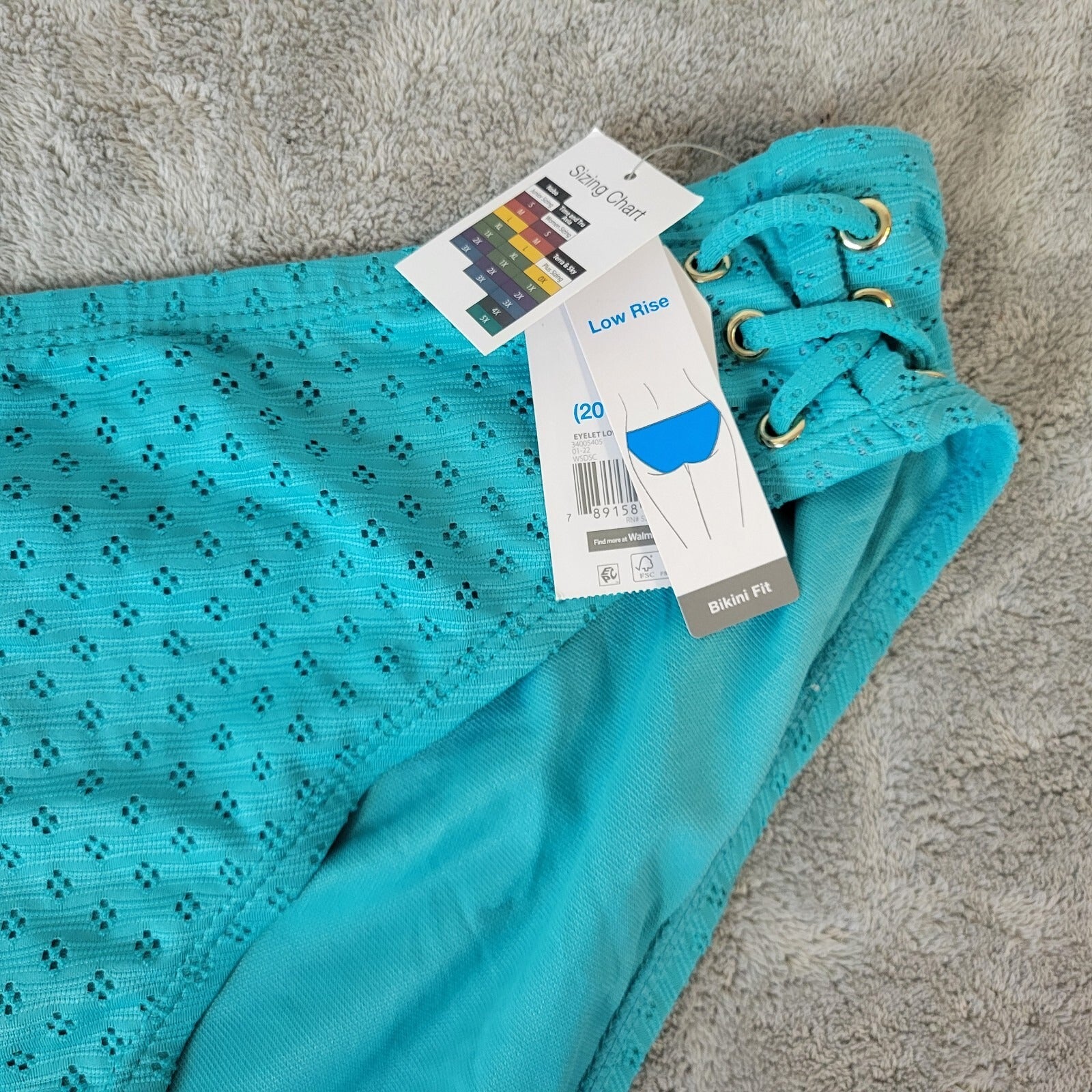 Time Tru Womens Bikini Bottom 2X 20W 22W Plus Blue Eyelet Lined Swimwear