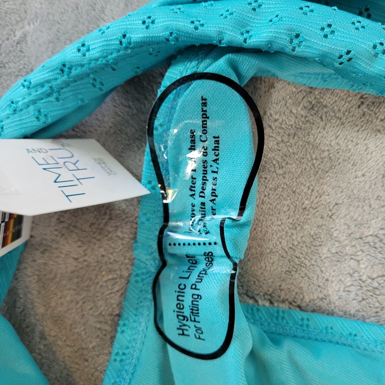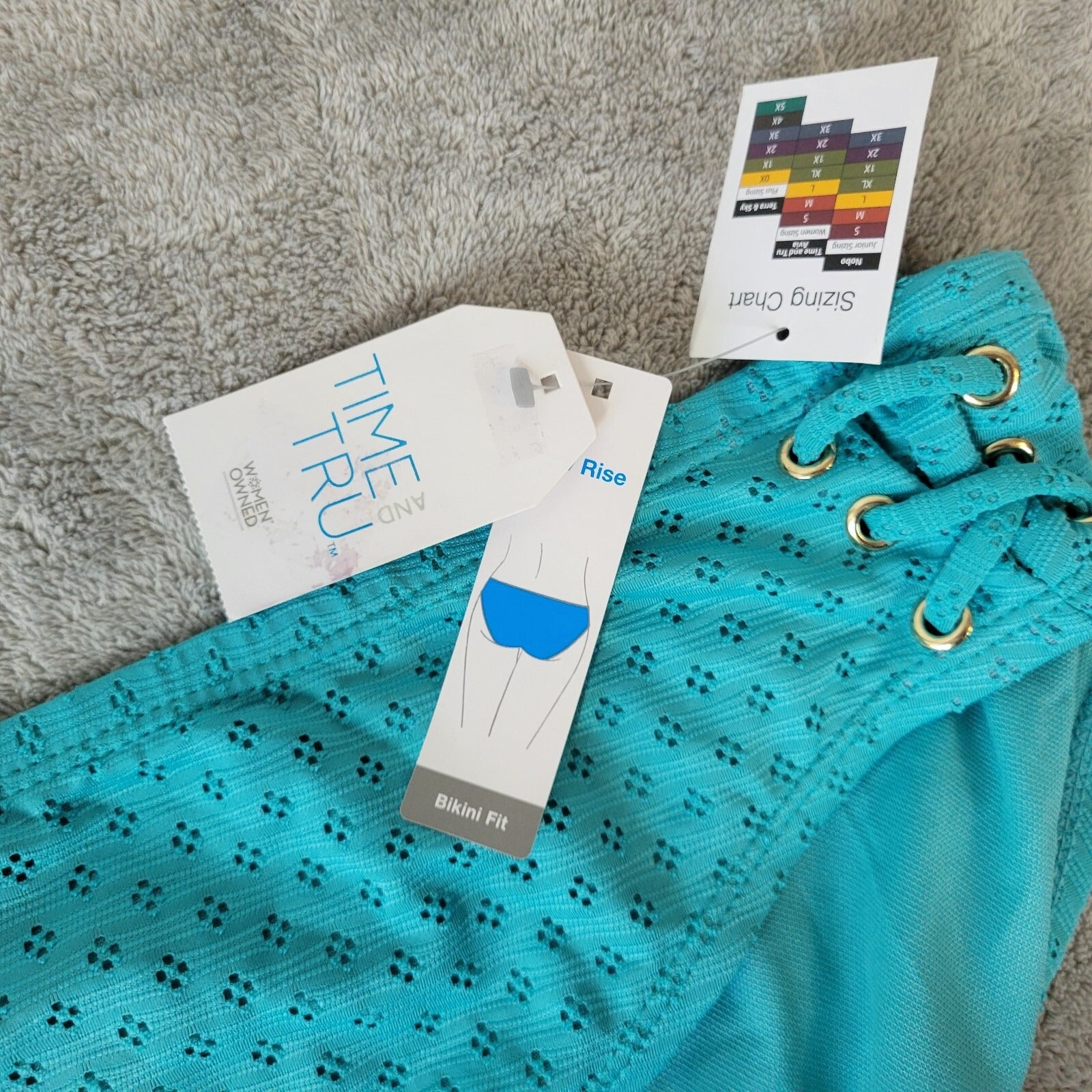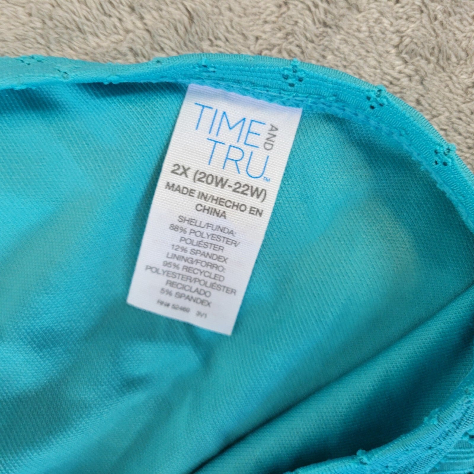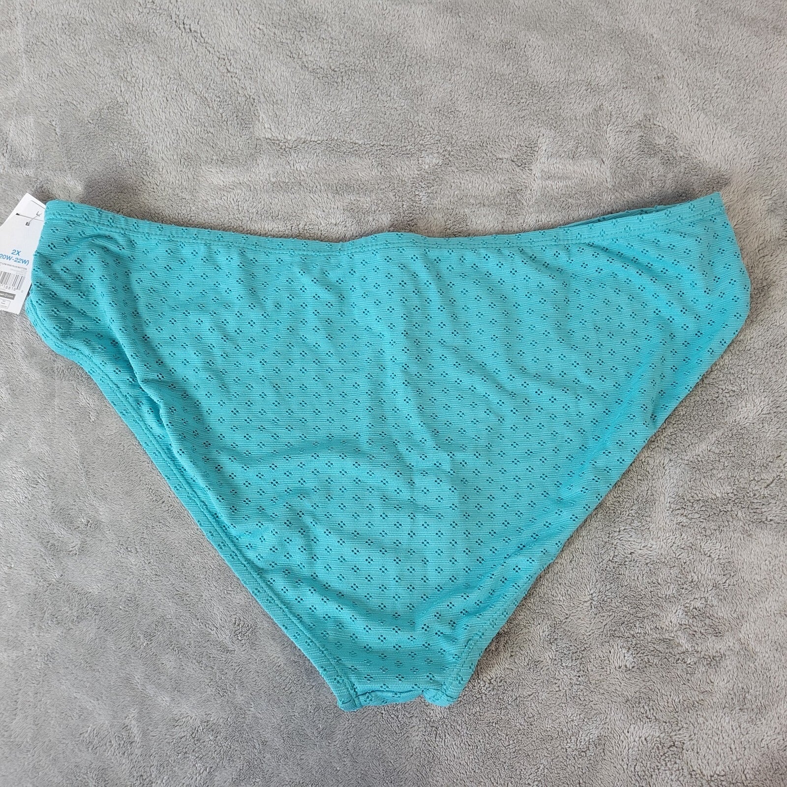 Dive into summer with the Time And Tru Women's Bikini Bottom in a serene blue hue, designed to complement your swimwear collection. Crafted for plus-size comfort in a generous 2X, this bikini bottom offers a flattering fit for a size range of 20W to 22W. The eyelet accents add a touch of elegance, ensuring you look chic whether you're lounging by the pool or enjoying a beachside getaway.  The poly blend construction promises durability, while the lined interior provides added coverage and comfort. Machine washable for easy care, this swimwear essential is a practical addition to your wardrobe. Embrace the sun-soaked days with confidence in this classic bikini bottom that balances style and function.