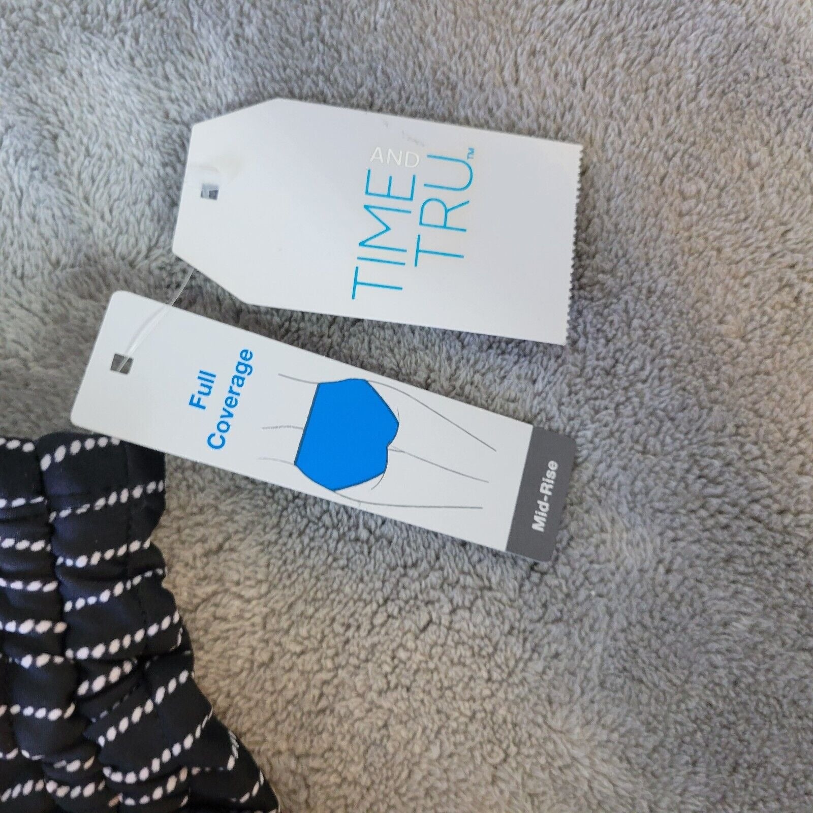 Time Tru Womens Bikini Bottom 2X 20W 22W Plus Swimwear Black Stripe Poly Blend