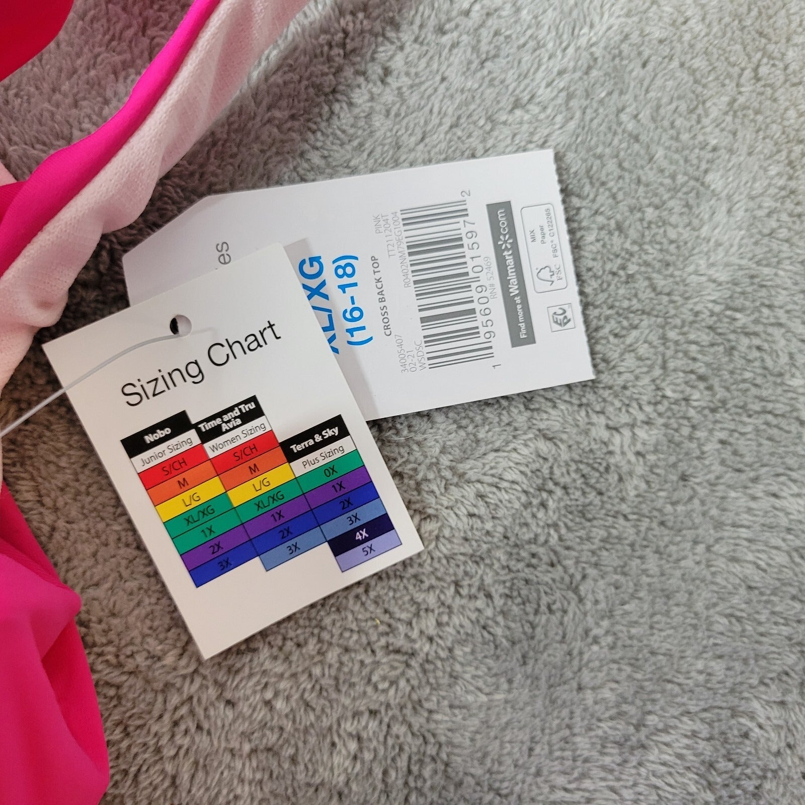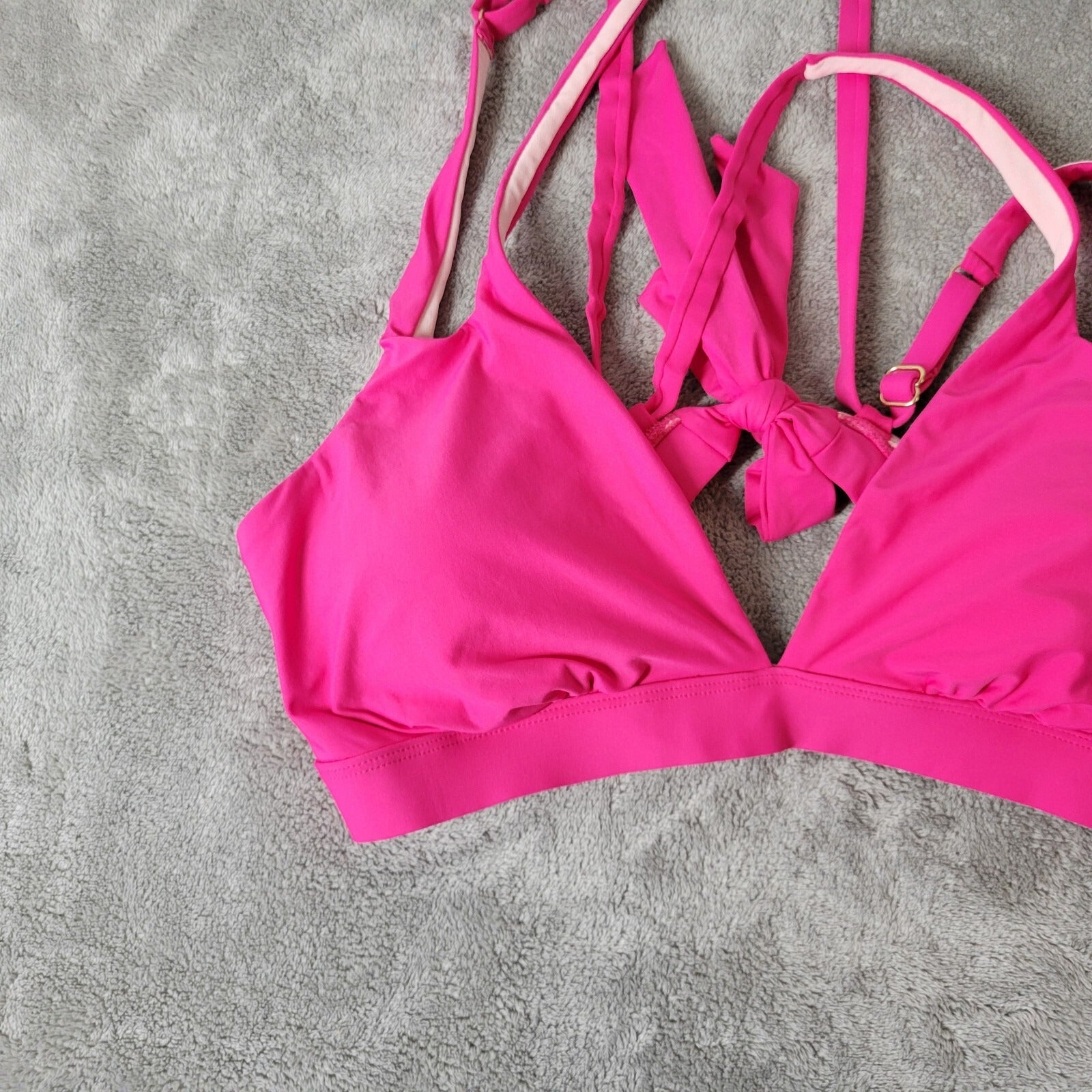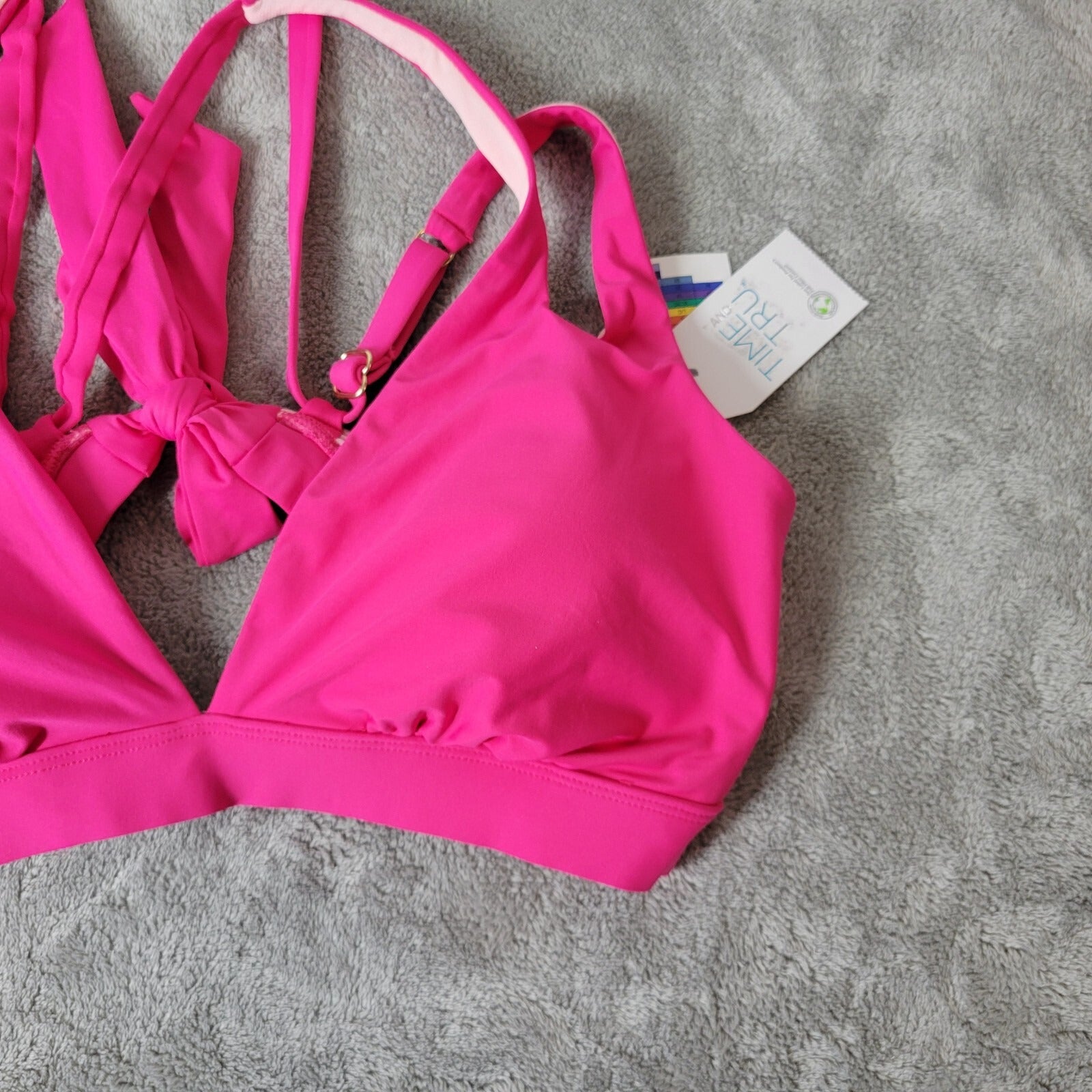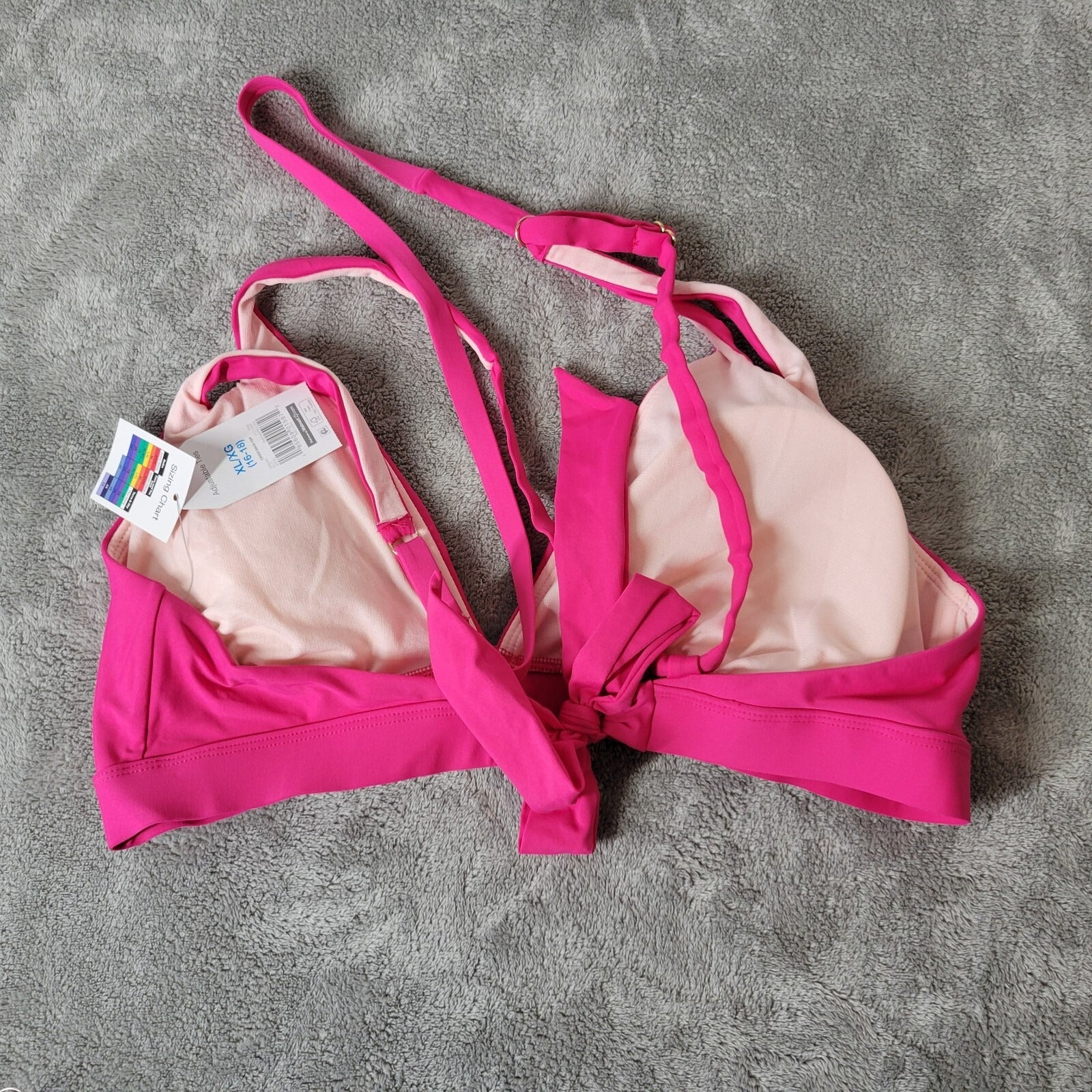 Time Tru Womens Bikini Top XL 16 18 Pink Adjustable Spaghetti Lightweight Bra