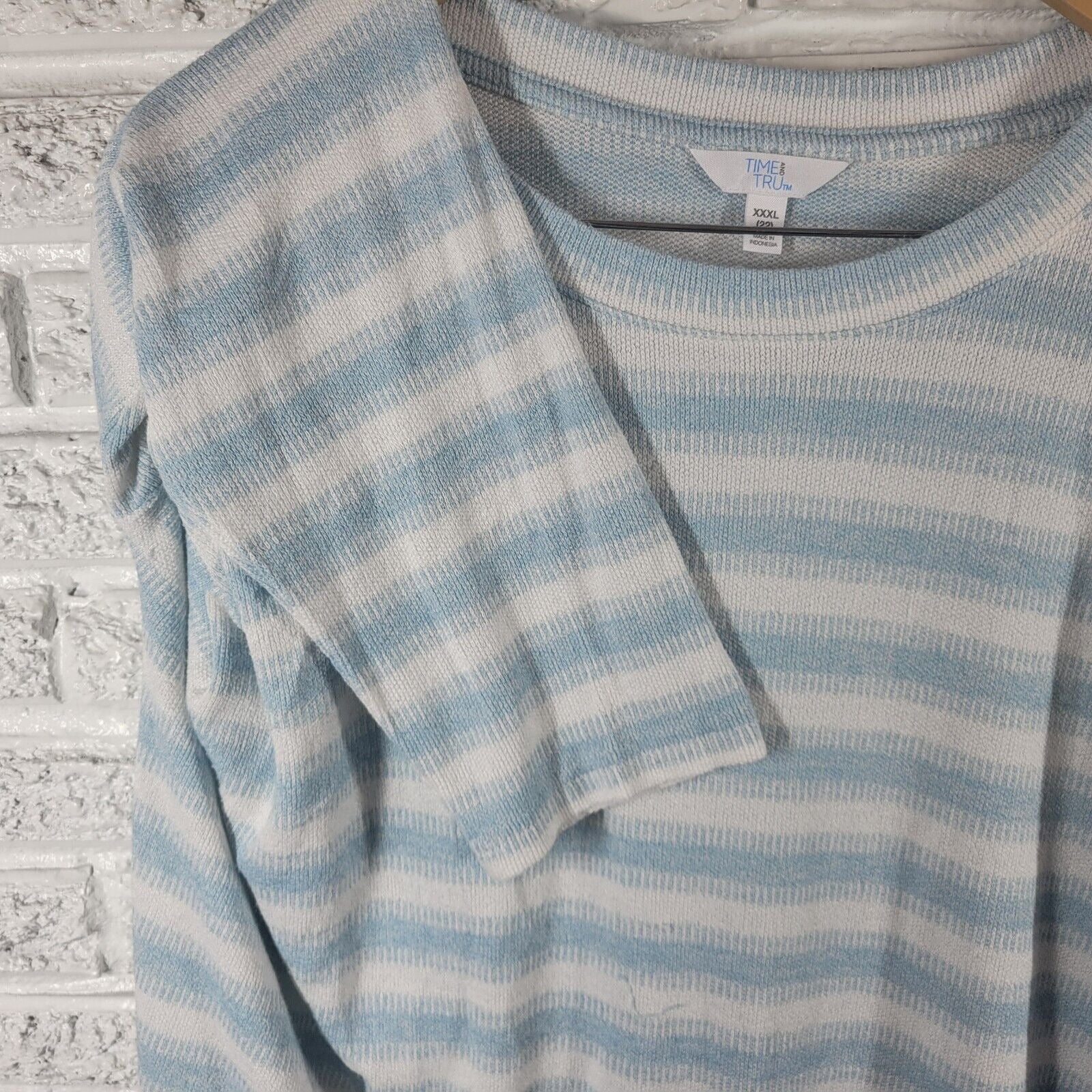 Time Tru Womens Sweater XXXL 22 Plus Long Sleeve Blue Stripe Comfy Lightweight
