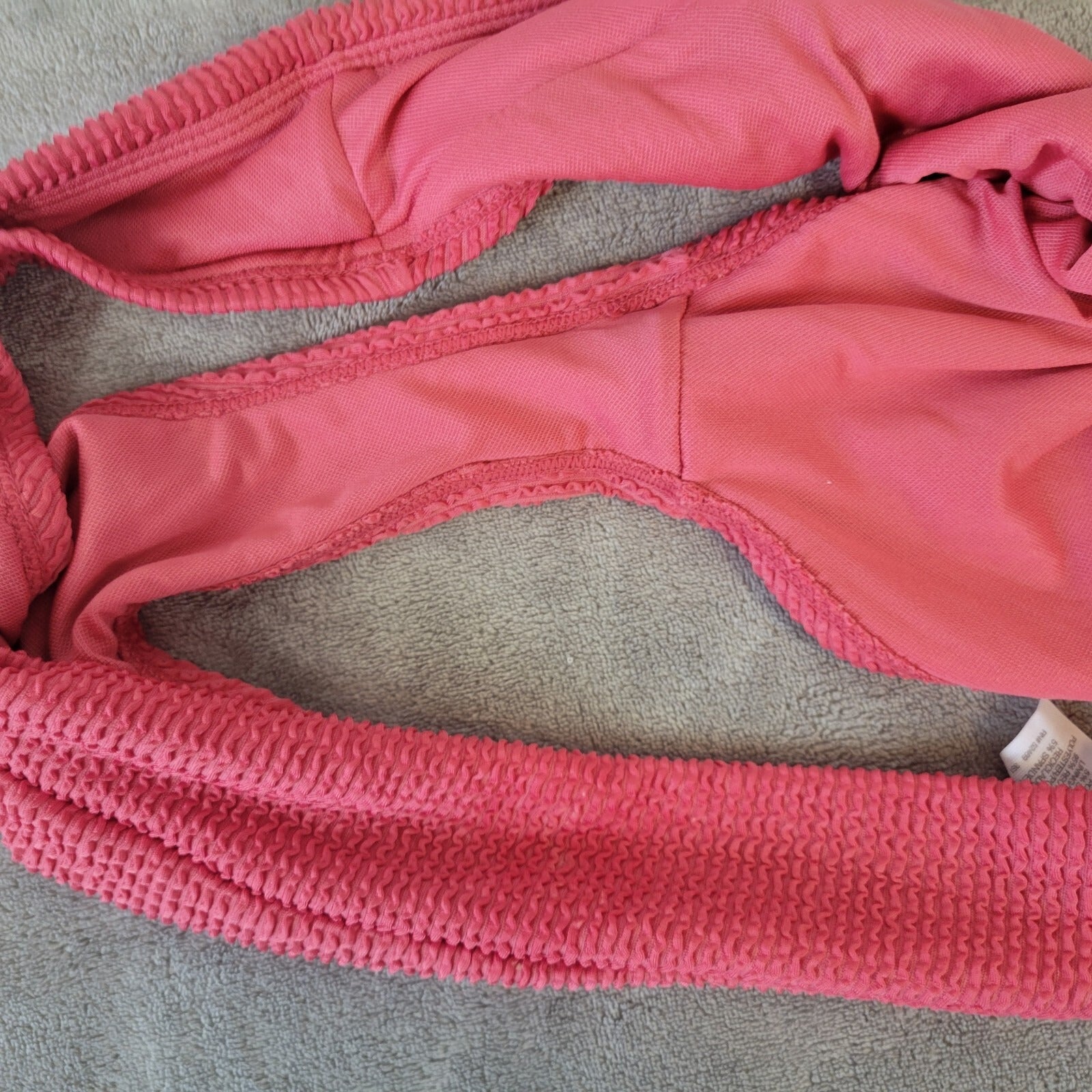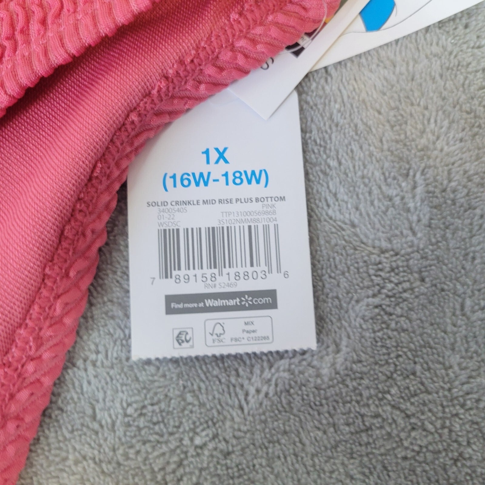 Embrace the beach vibes with the Time And Tru Women's Swim Bikini Bottom, designed to provide both comfort and style. Available in a vibrant pink shade, this bikini bottom is crafted from a soft, crinkle textured fabric that loves water as much as you do. The plus-size 1X piece ensures a comfortable fit for sizes 16W and 18W, offering a flattering look without compromising on ease.  The solid-colored bikini bottom features a stretch fabric that moves with you, ensuring a seamless fit for various beach activities or poolside lounging. It's machine washable for easy care, so you can look forward to many sunny seasons of wear. Whether paired with a matching bikini top or a playful cover-up, this swimwear essential is a wardrobe must-have for the warm days ahead.