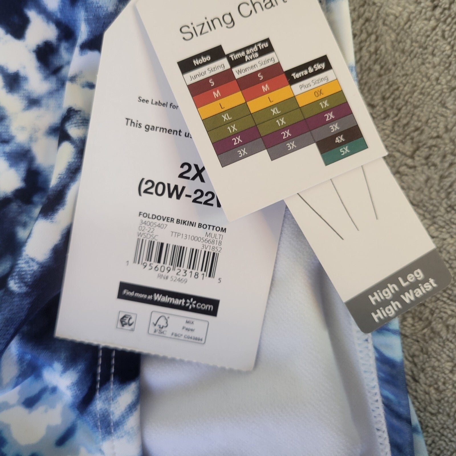 Time Tru Womens Swim Bikini Bottom 2X 20W 22W Plus Blue Tie Dye Comfy New
