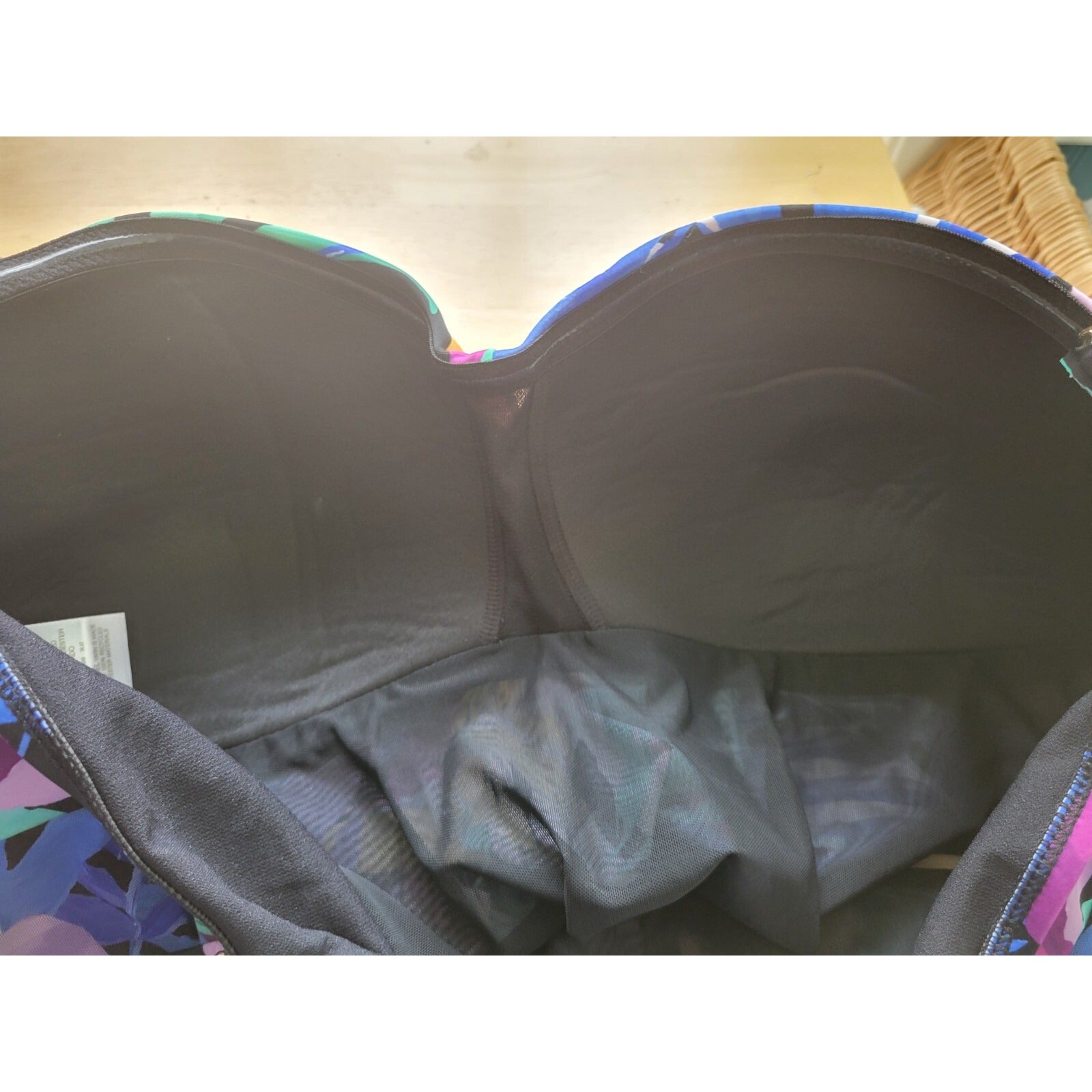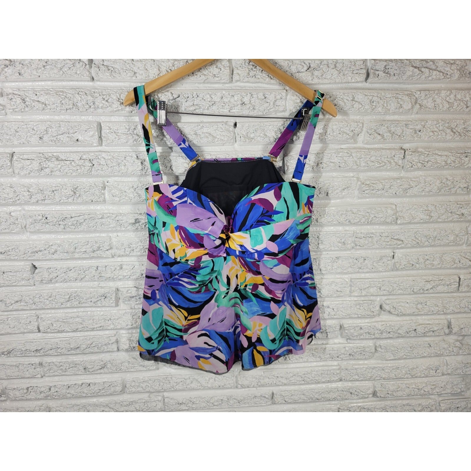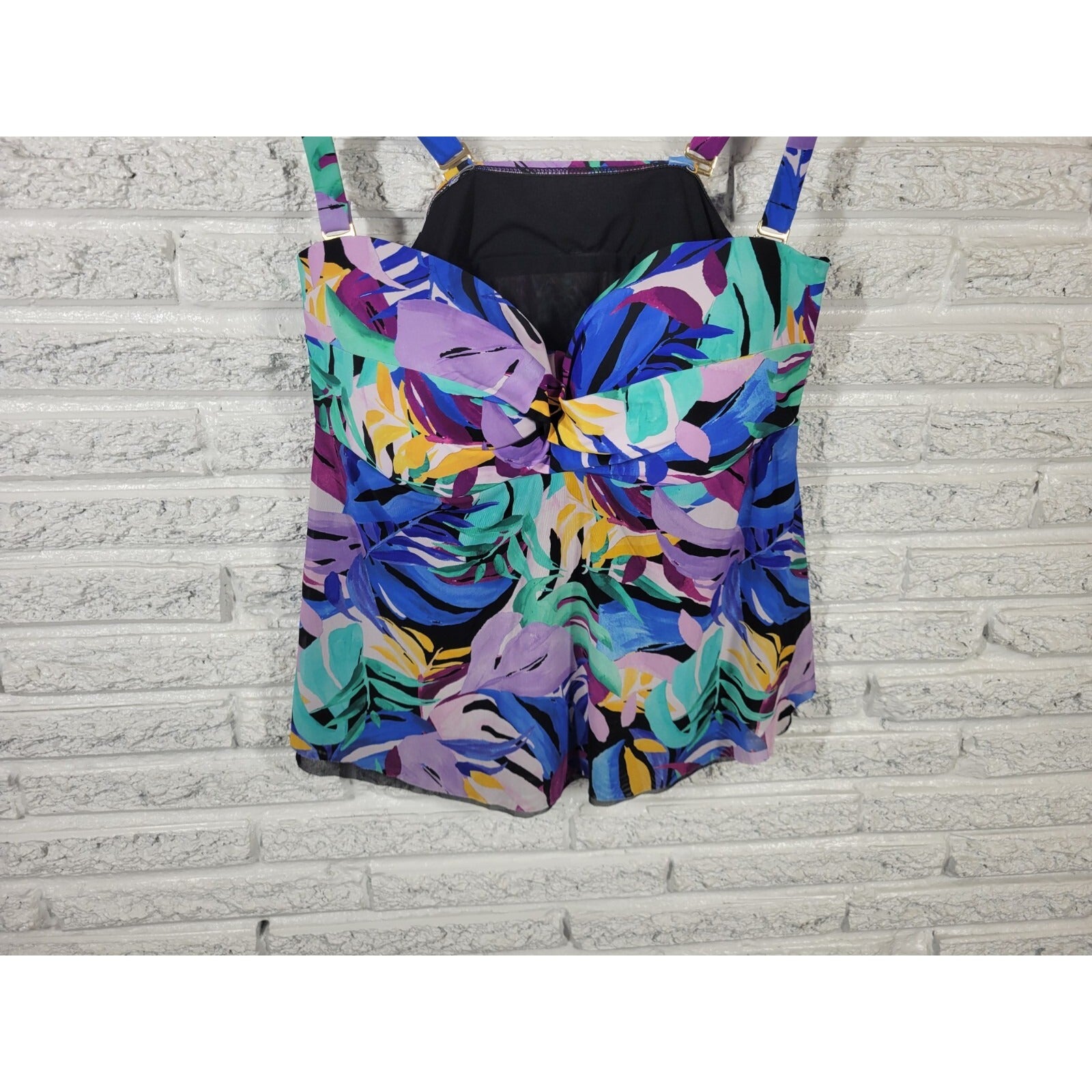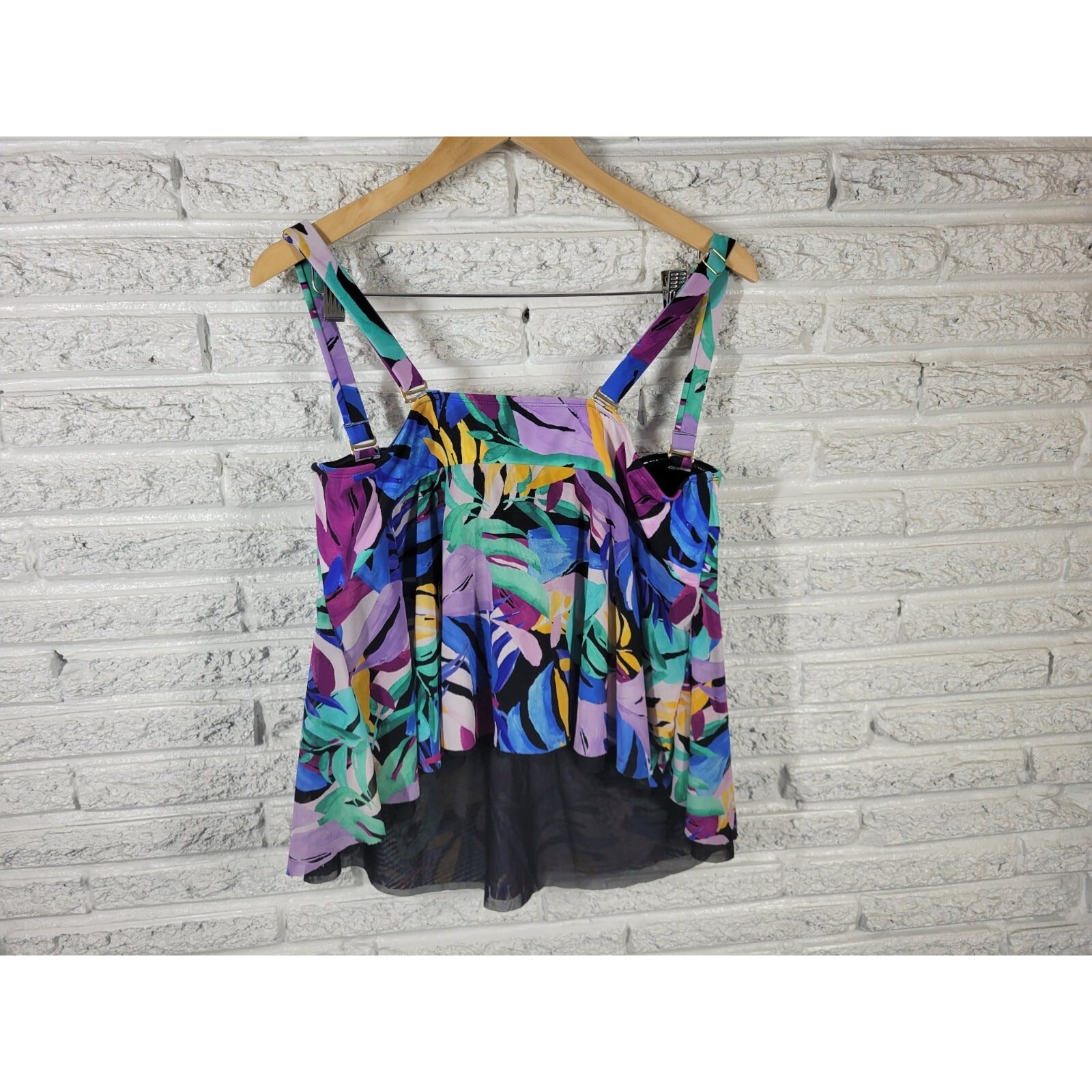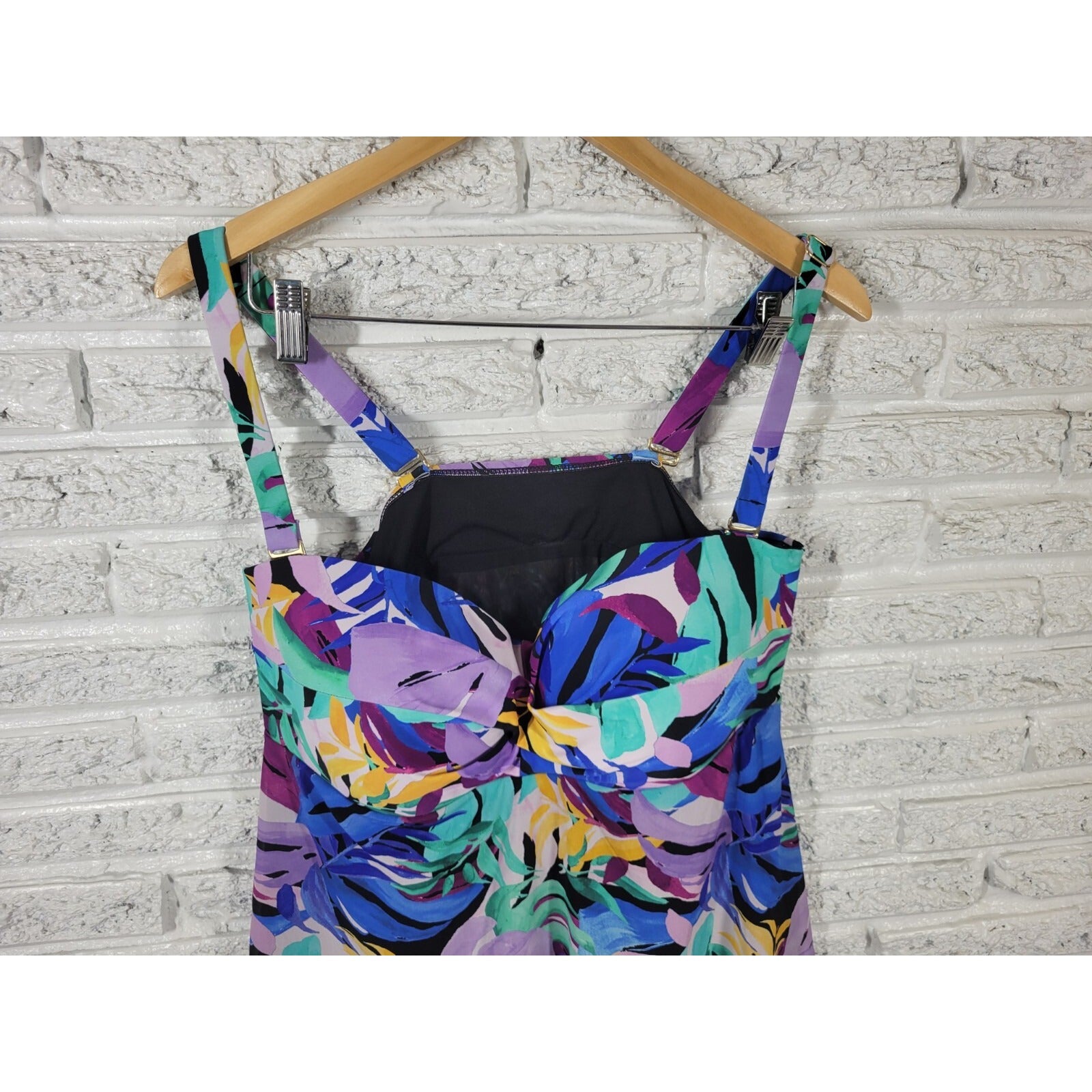 Time Tru Womens Swim Top 1X Adjustable Strap Built in Bra Lined Blue Watercolor