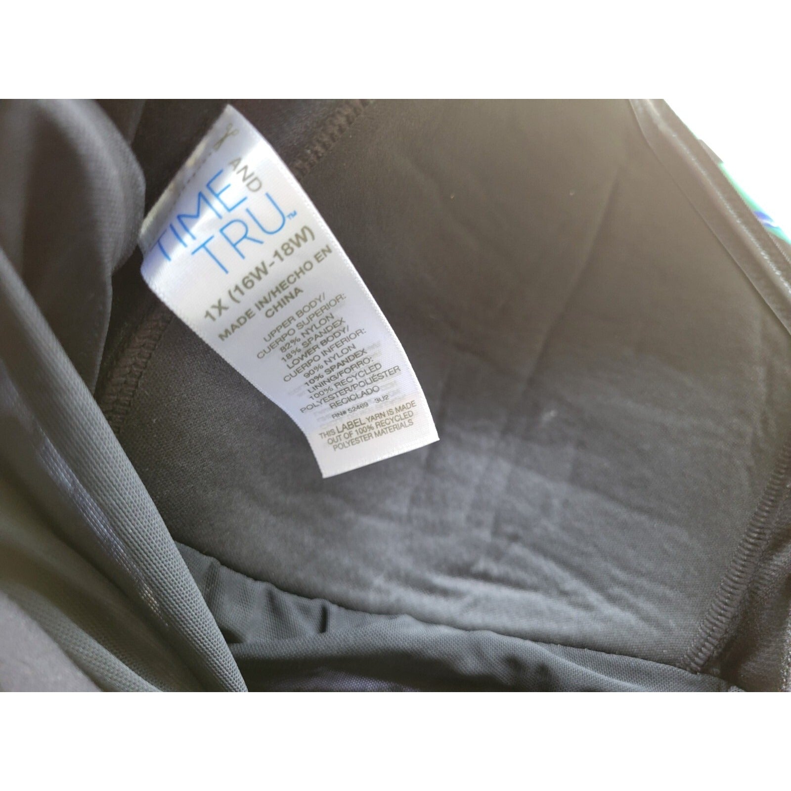 Elevate your swimwear collection with this stunning Time And Tru women's swim top in a beautiful blue watercolor design. This top comes in size 1X and features adjustable straps for a comfortable fit. Built-in bra and lined material provide added support for all-day comfort. Crafted from a blend of nylon and spandex, this top is machine washable for easy care. Perfect for a day at the beach or pool, this top is a must-have addition to any swimwear collection. Don't miss out on the chance to own this stylish and comfortable swim top.