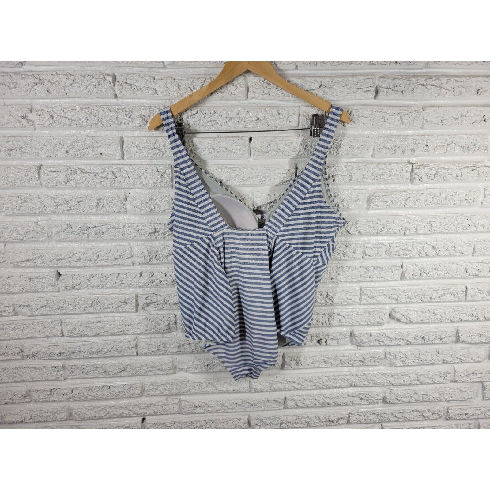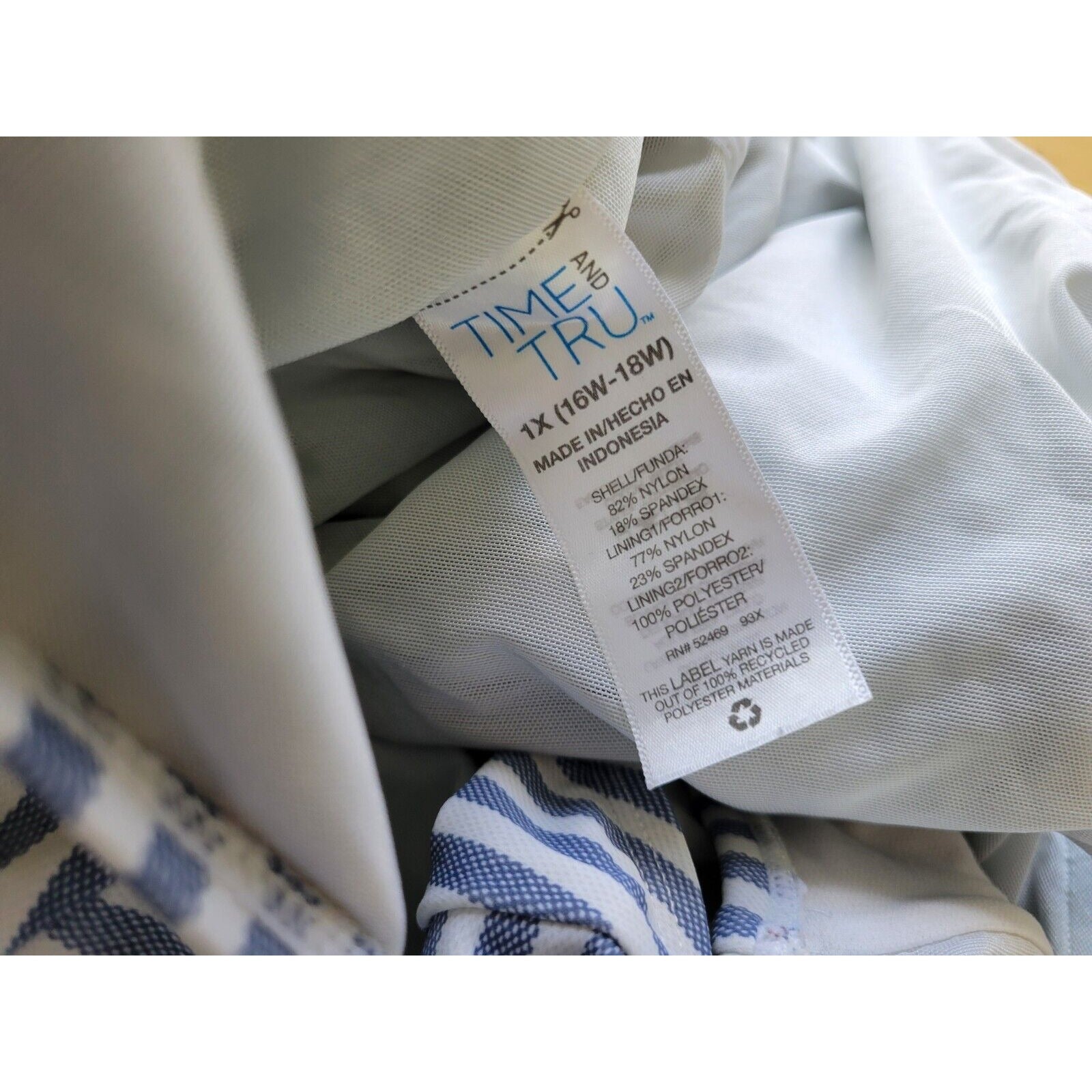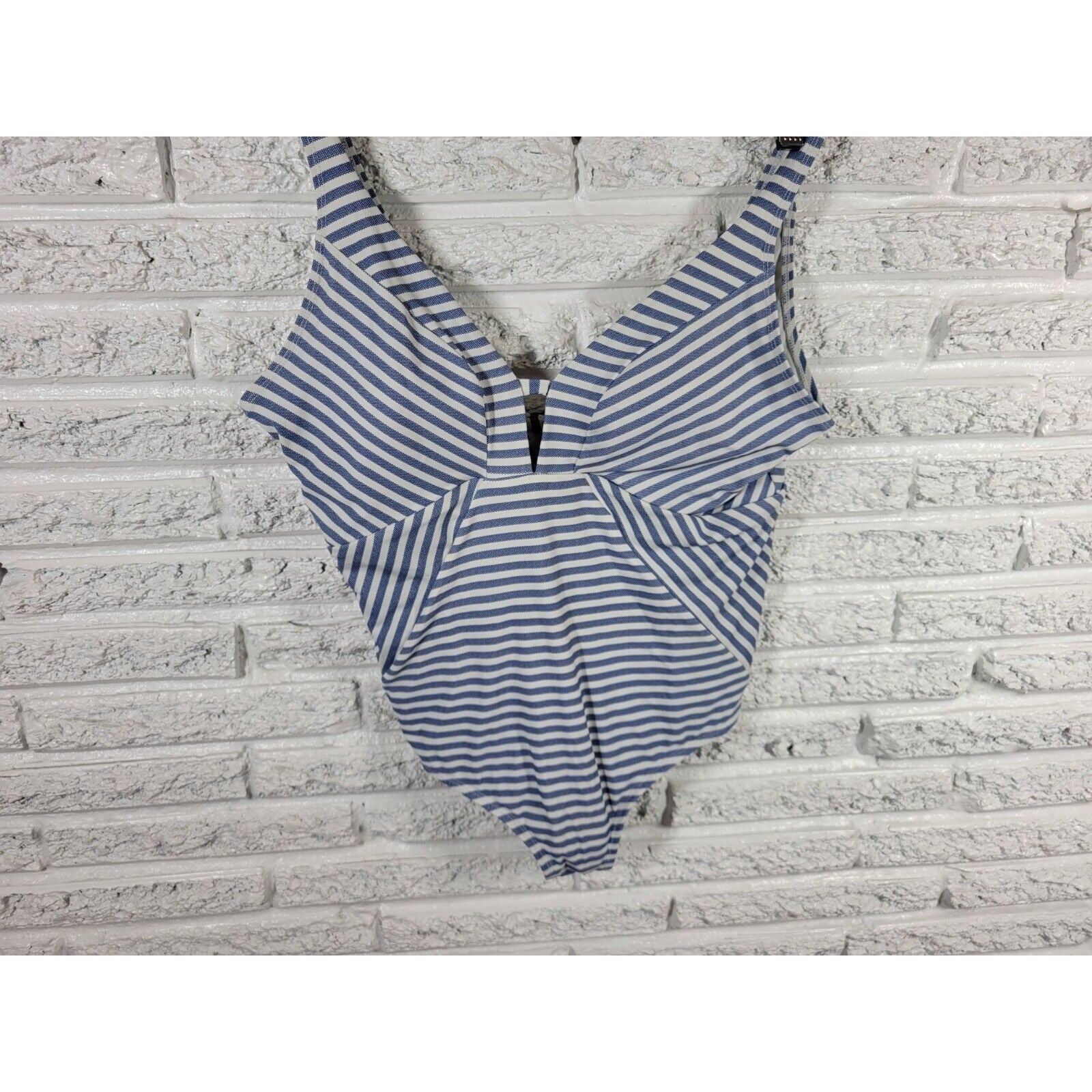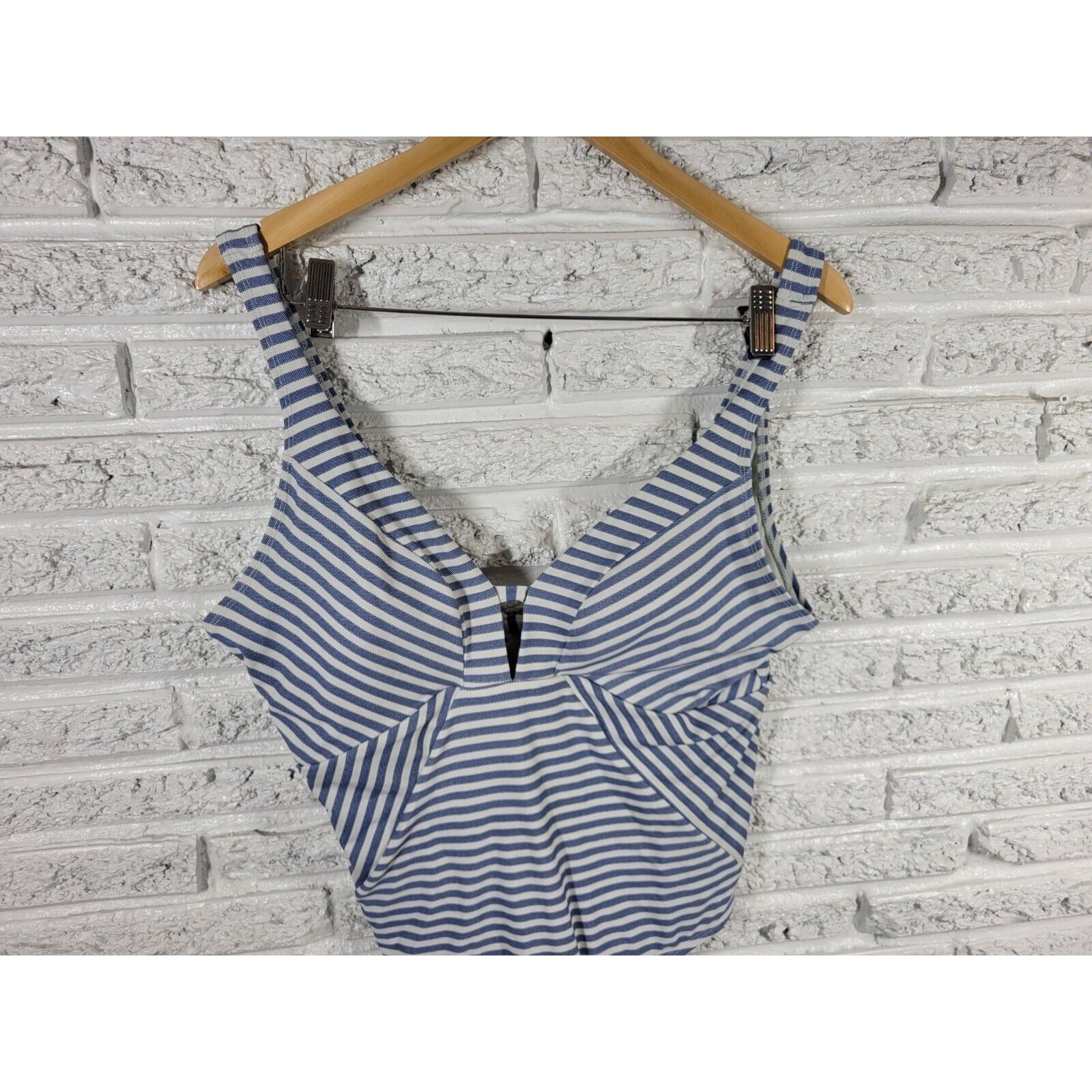 Time Tru Womens Swimsuit 1X One Piece Blue Stripe Plunge Bra Lined Wide Strap