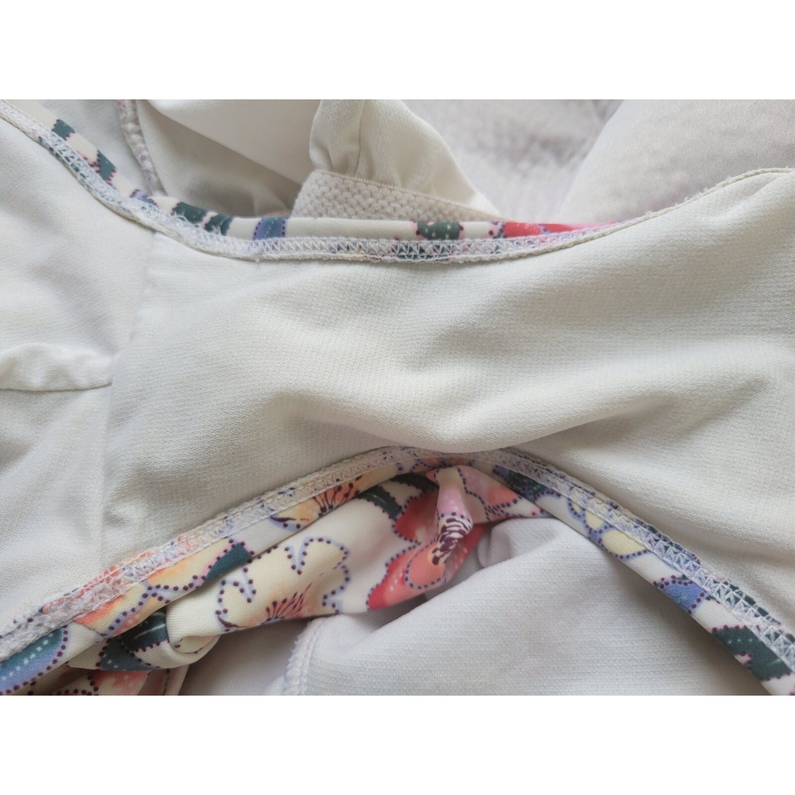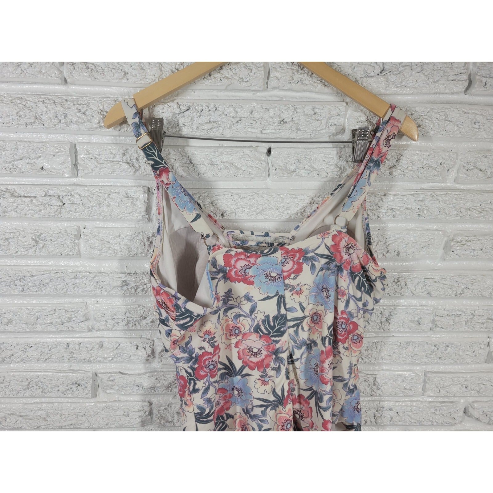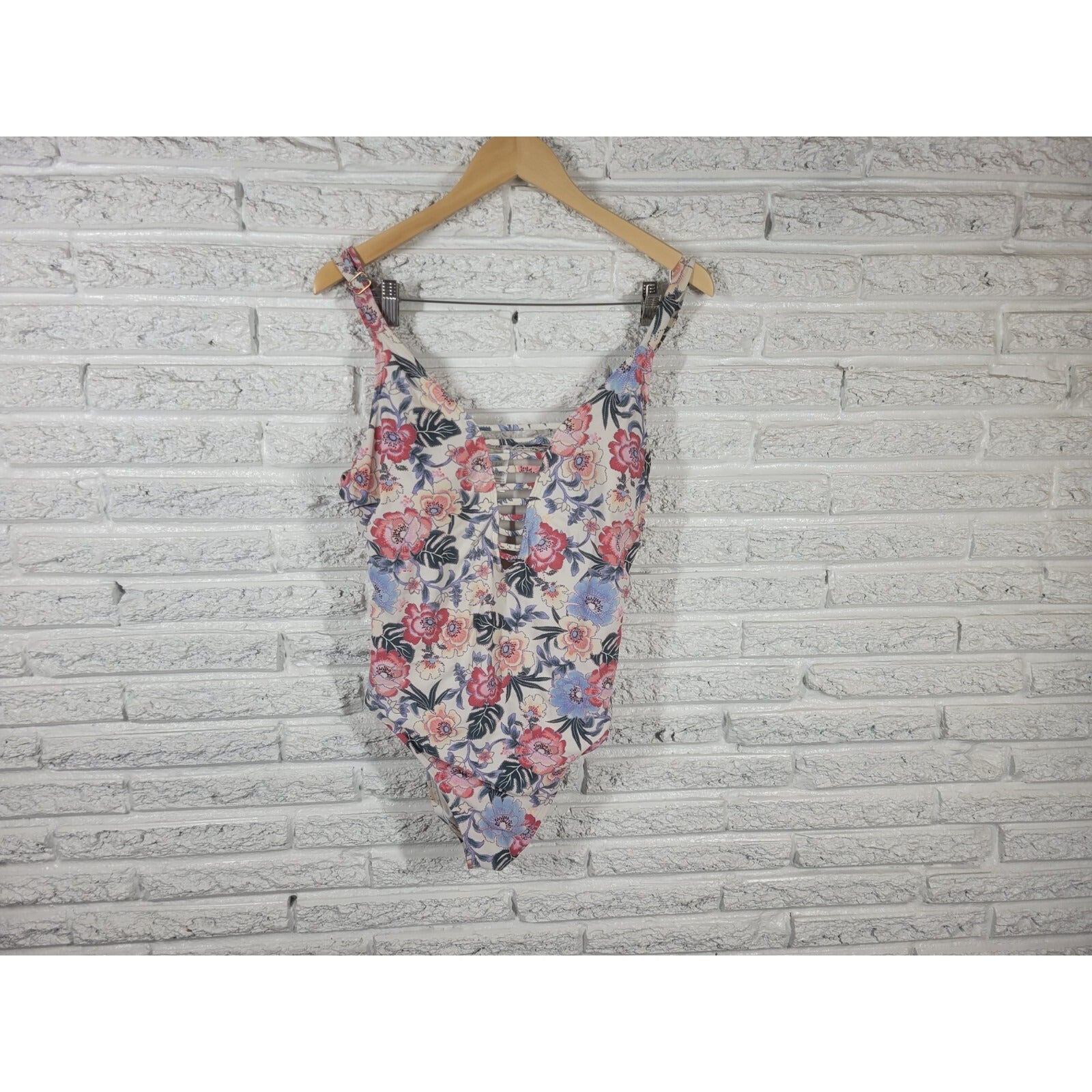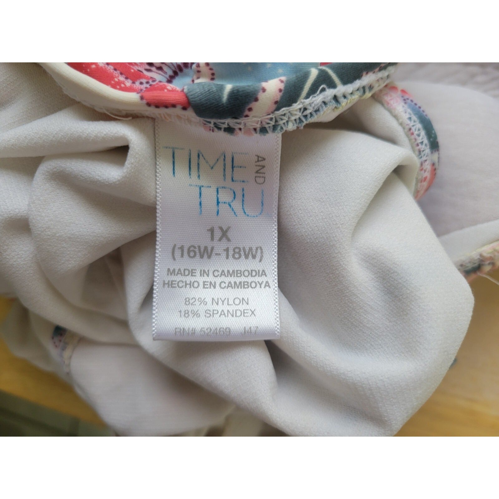 Time Tru Womens Swimsuit 1X Plus One Piece Blue Floral Bra Lined Lattice Plunge