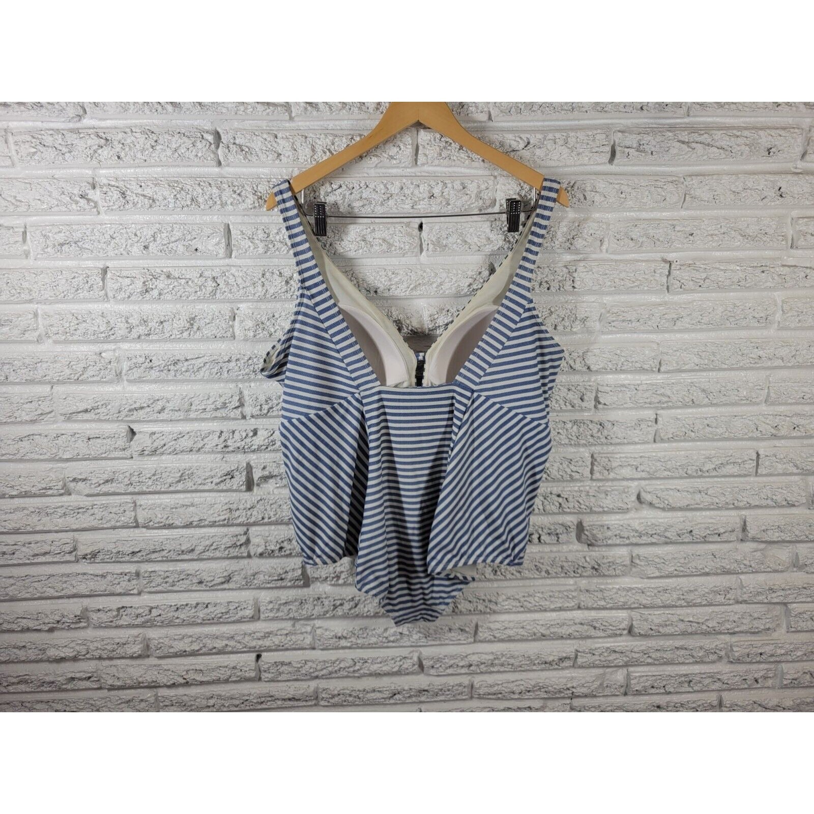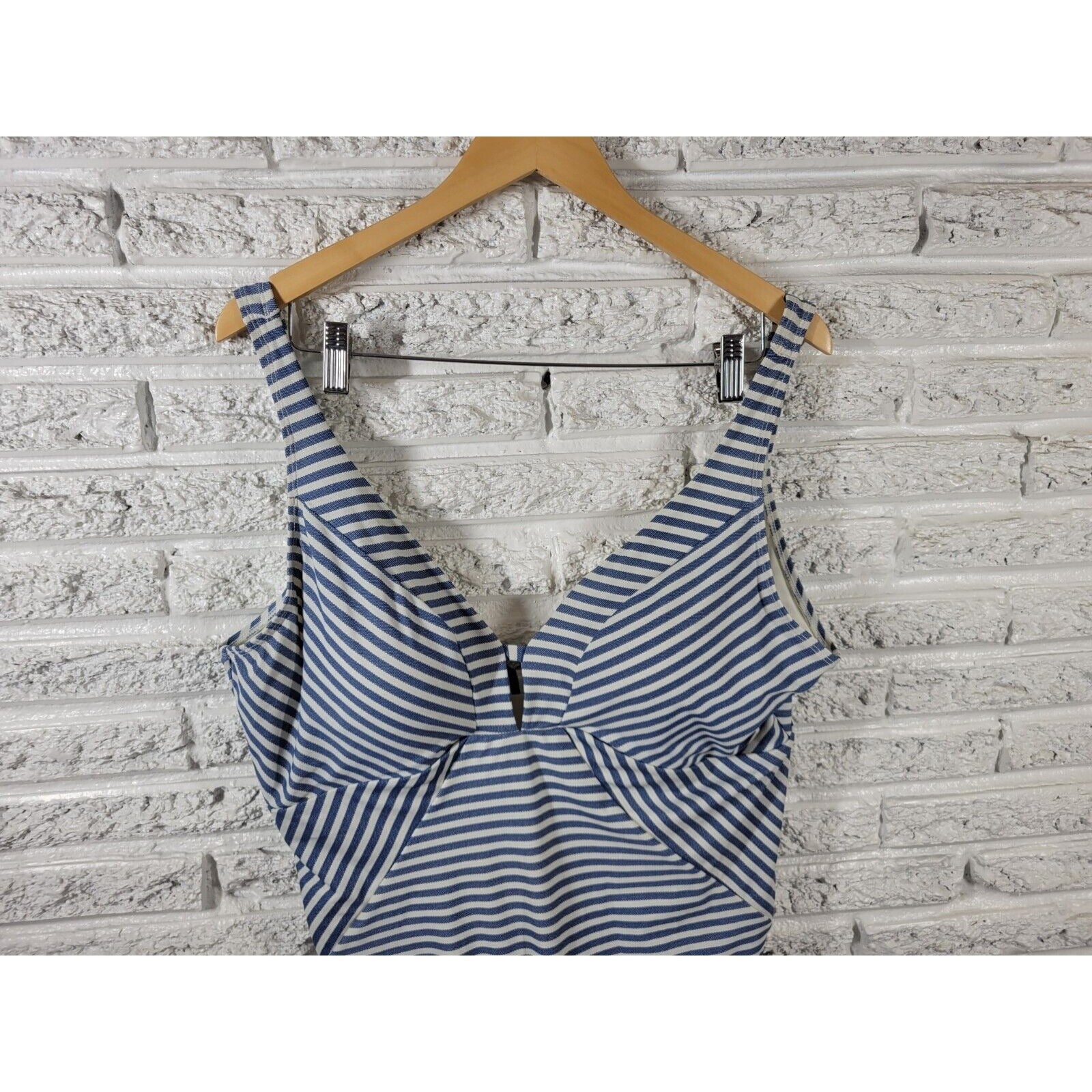 Time Tru Womens Swimsuit 2X 20W 22W Plus One Piece Blue Stripe Lined Keyhole Bra
