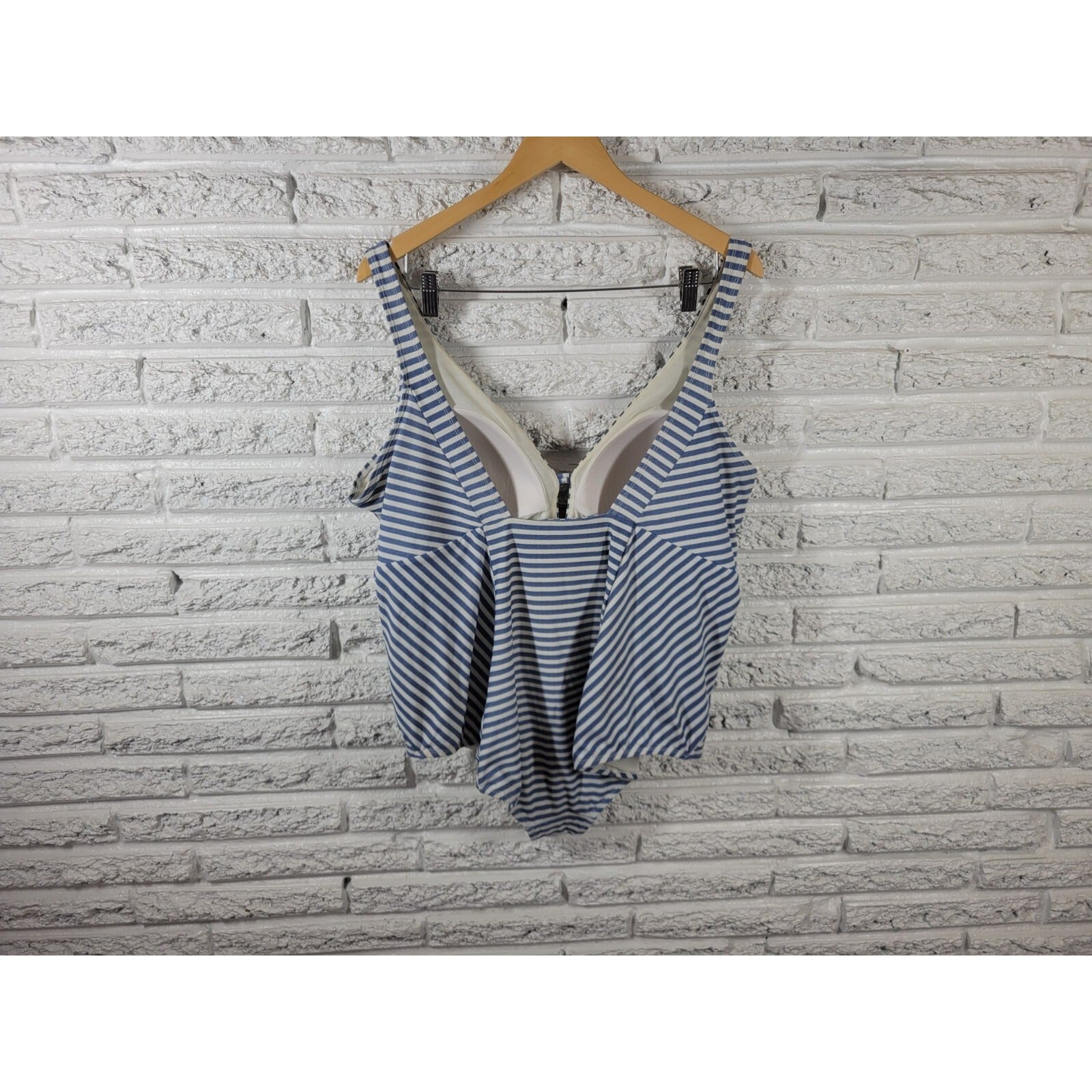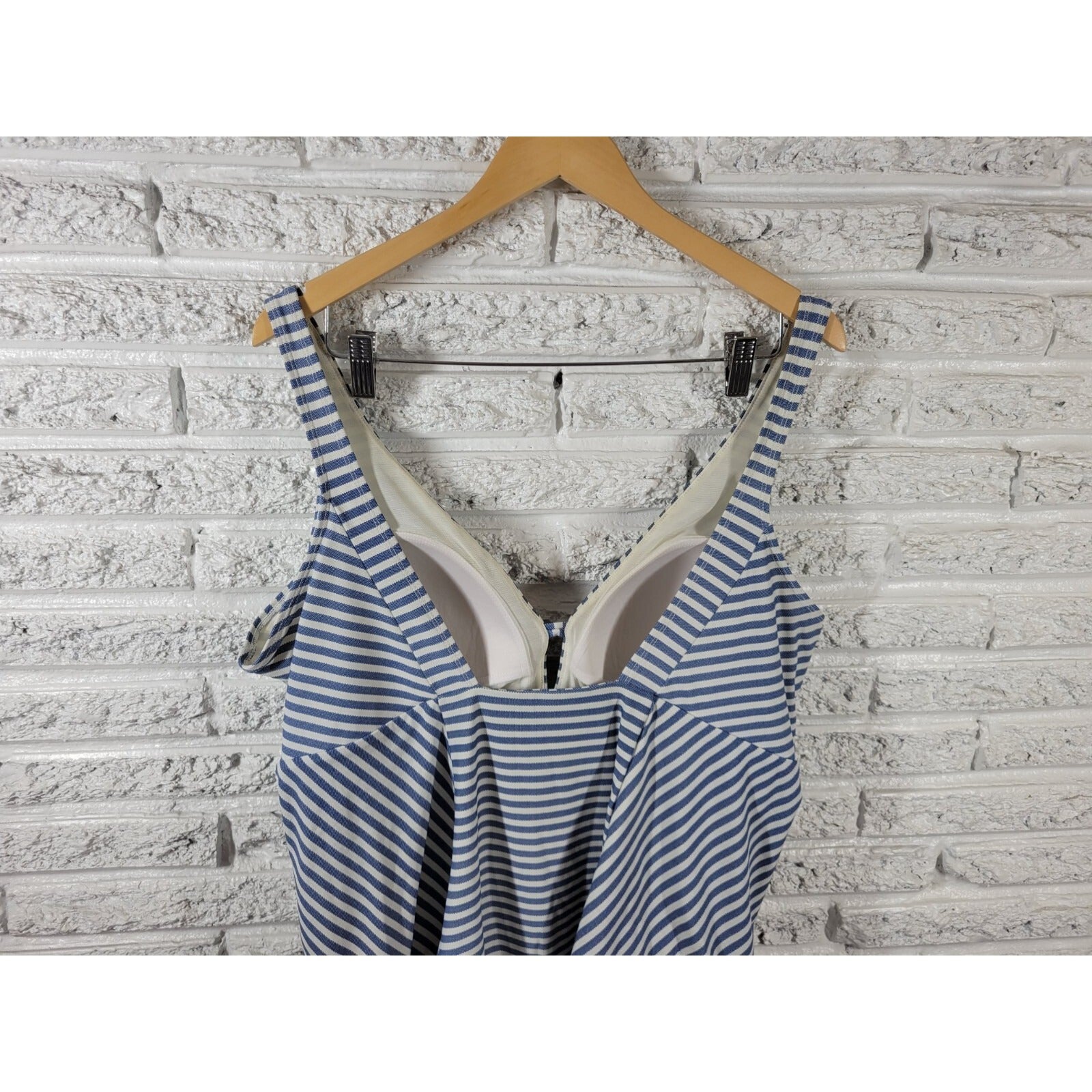 Time Tru Womens Swimsuit 2X 20W 22W Plus One Piece Bra Blue Stripe Lined Keyhole