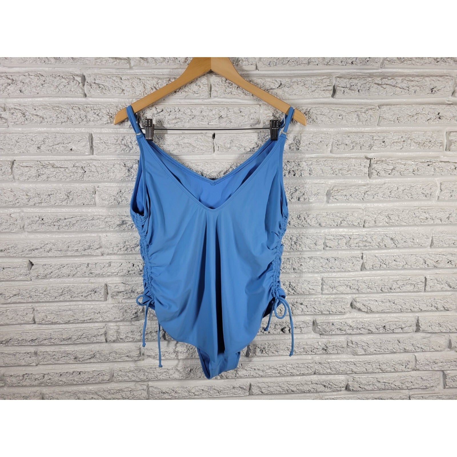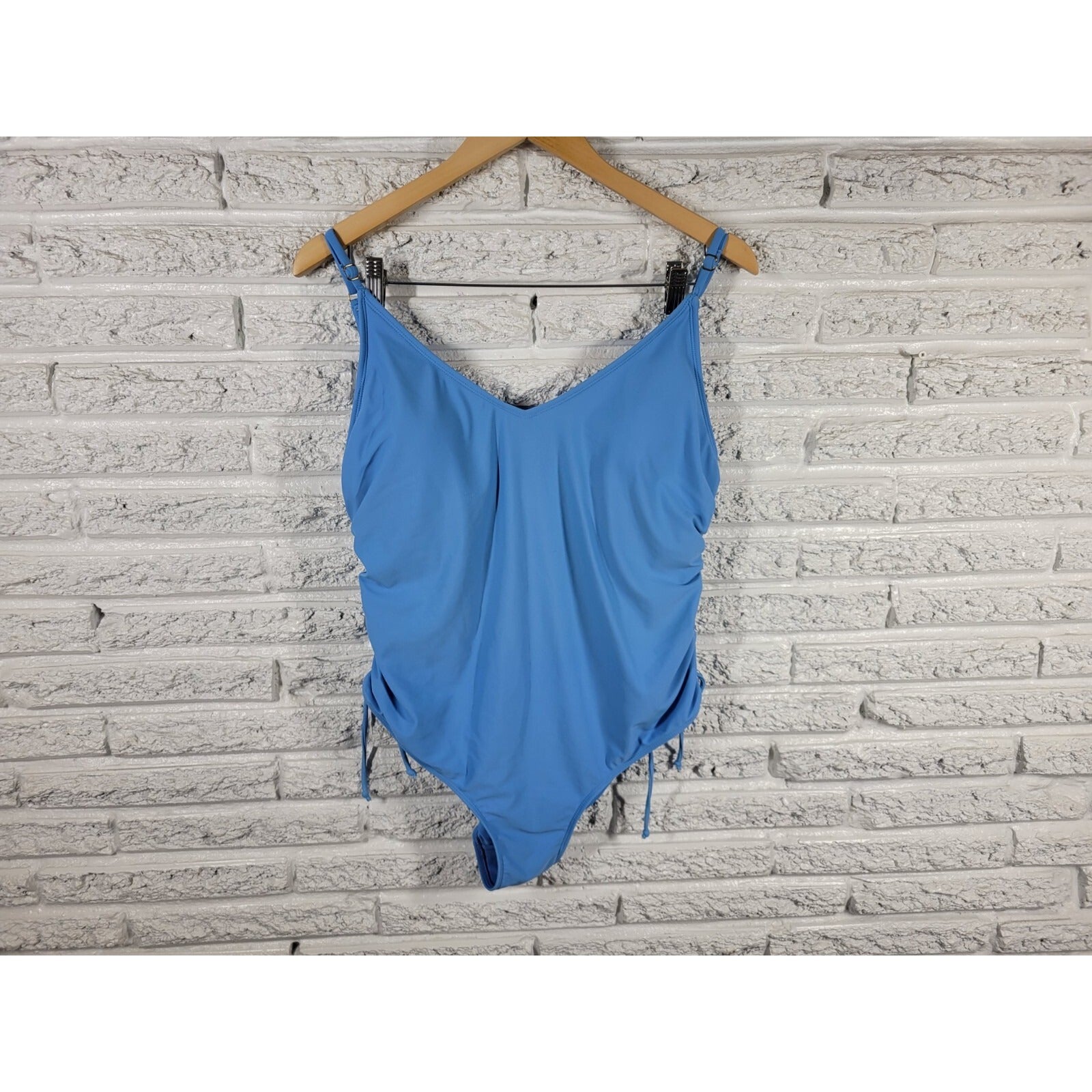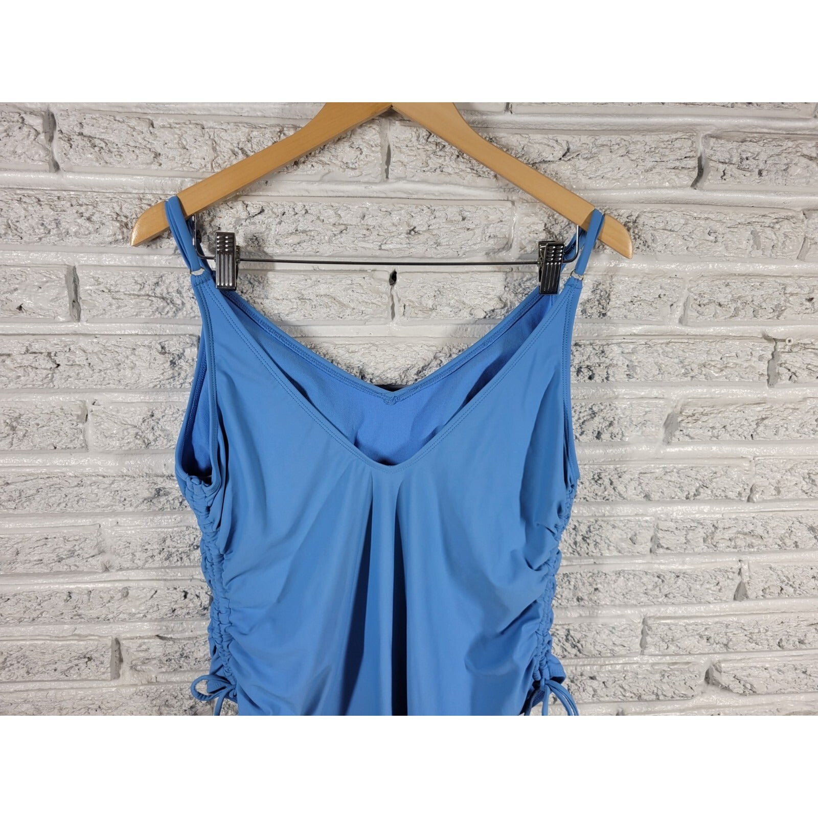 Time Tru Womens Swimsuit Extra Large XL One Piece Blue Double Spaghetti Bra