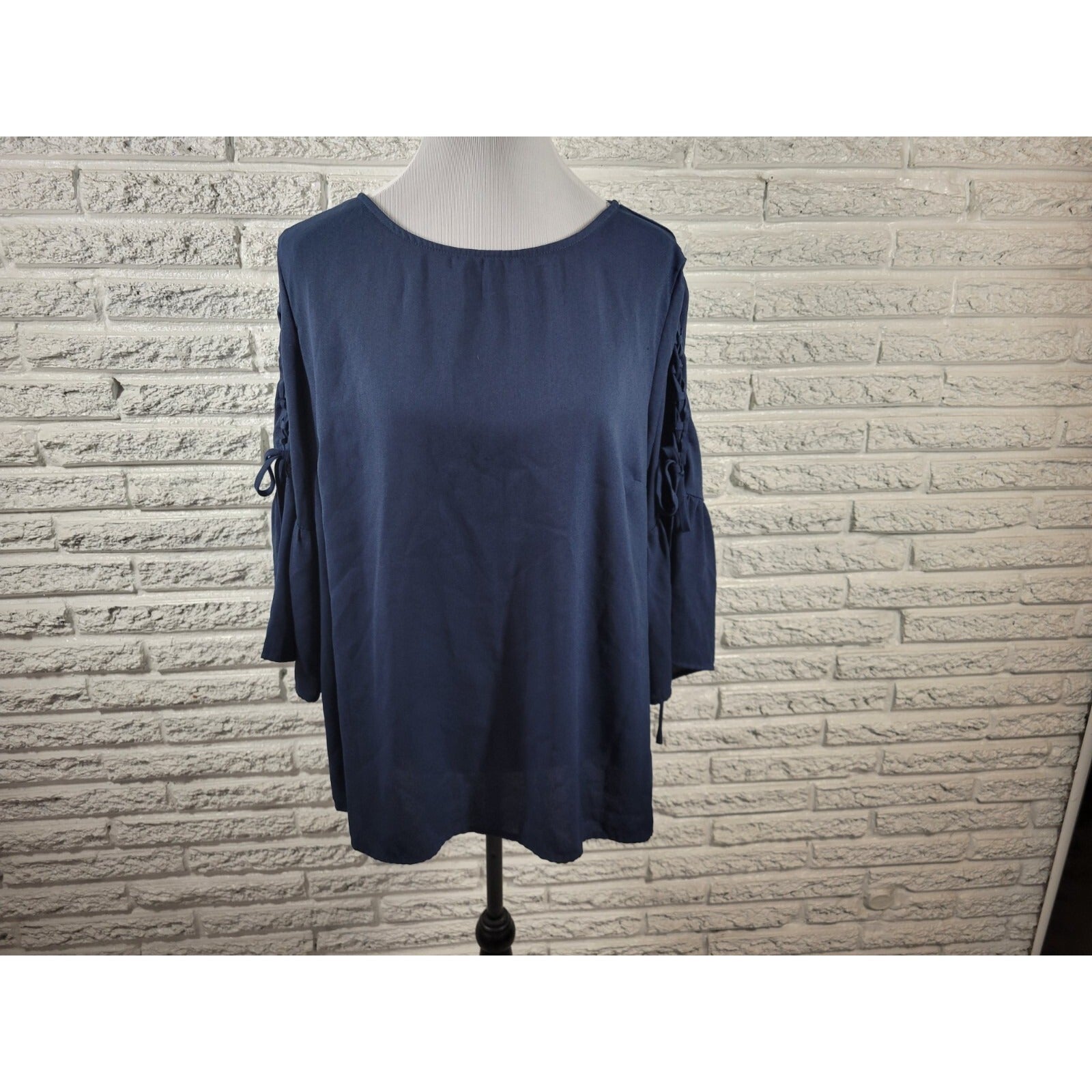 Time Tru Womens Top Extra Large 16 18 XL Bell Lace Up Sleeve Blue Polyester