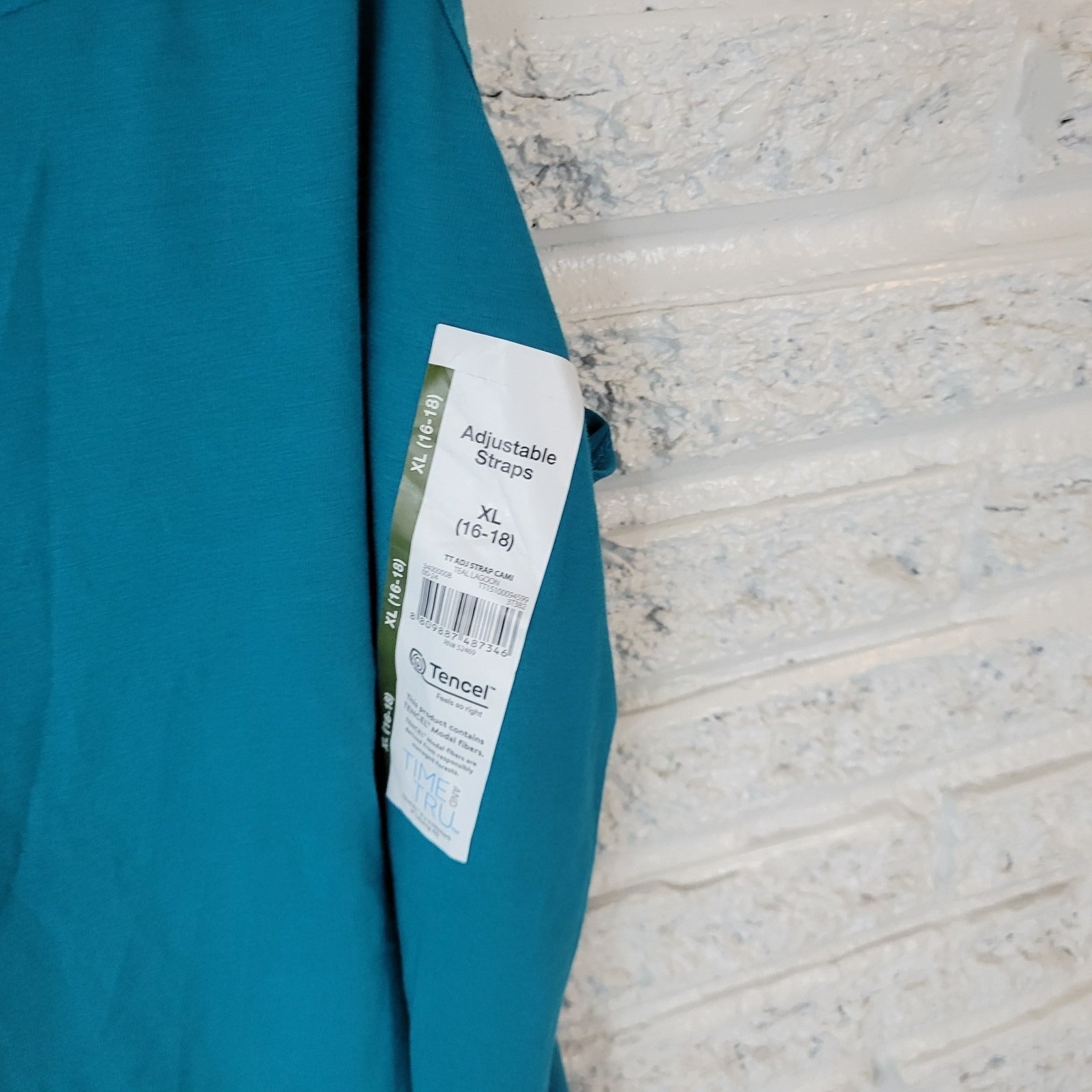 Time Tru Womens Top XL Camisole Aqua Blue Adjustable Spaghetti Strap Lightweight
