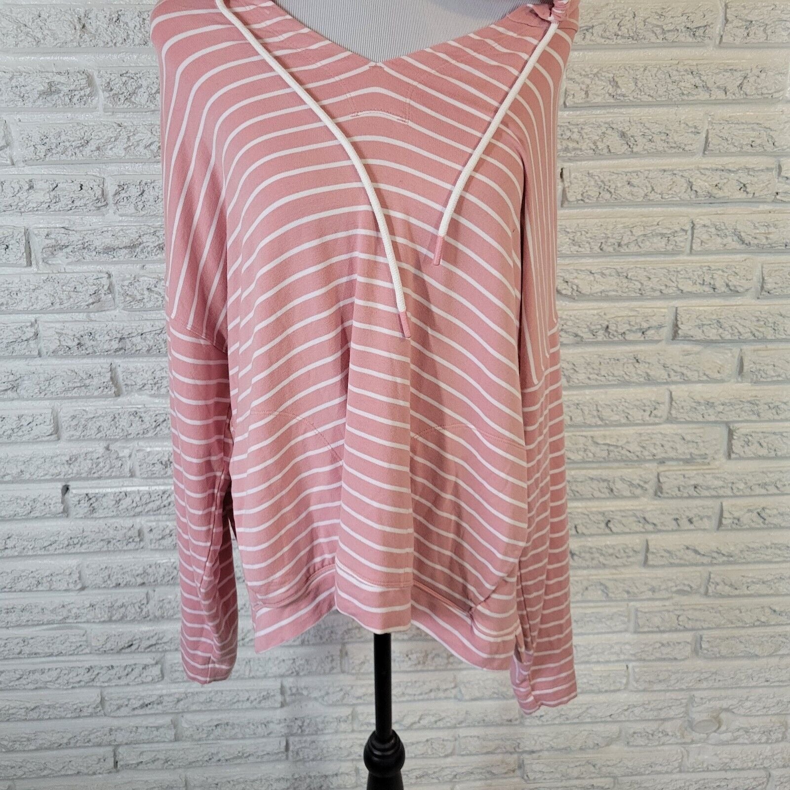 Time Tru Womens Top XXL 20 Hoodie Lightweight Pink Stripe Pockets Lightweight